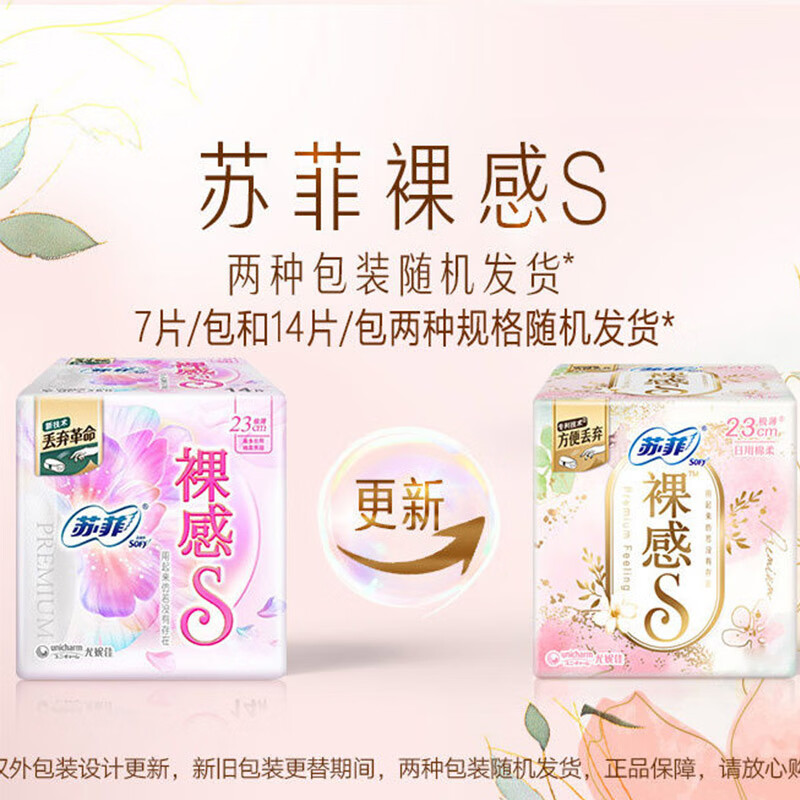 苏菲卫生巾日用夜用组合柔棉舒适棉柔亲肤瞬吸透气姨妈巾 裸感S贵族棉250mm48片