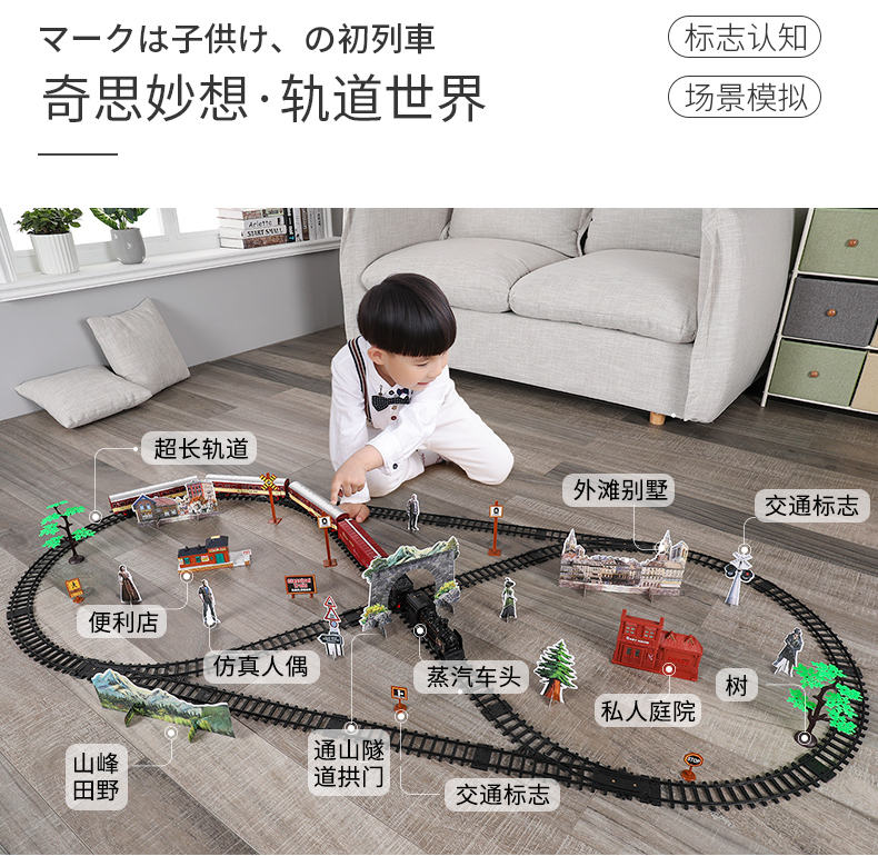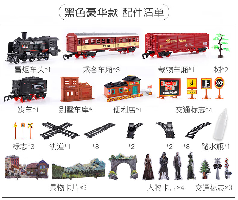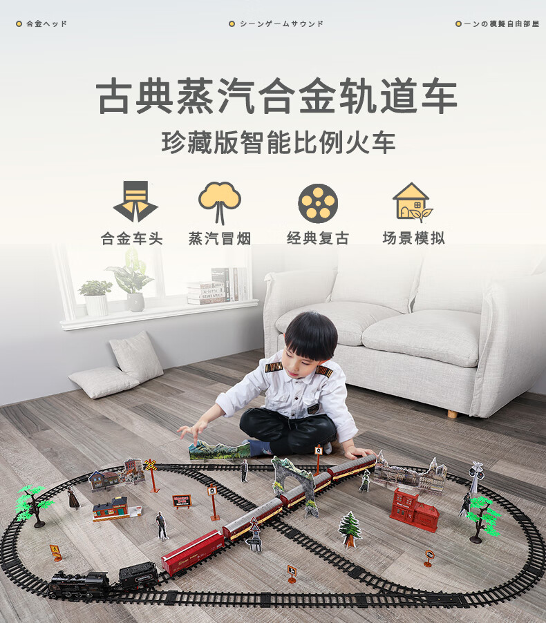斯纳恩(Snaen)儿童火车玩具男女孩复古蒸汽火车轨道套装3-6-12岁生日新年礼物