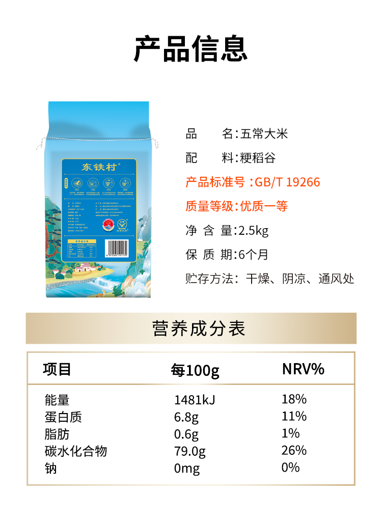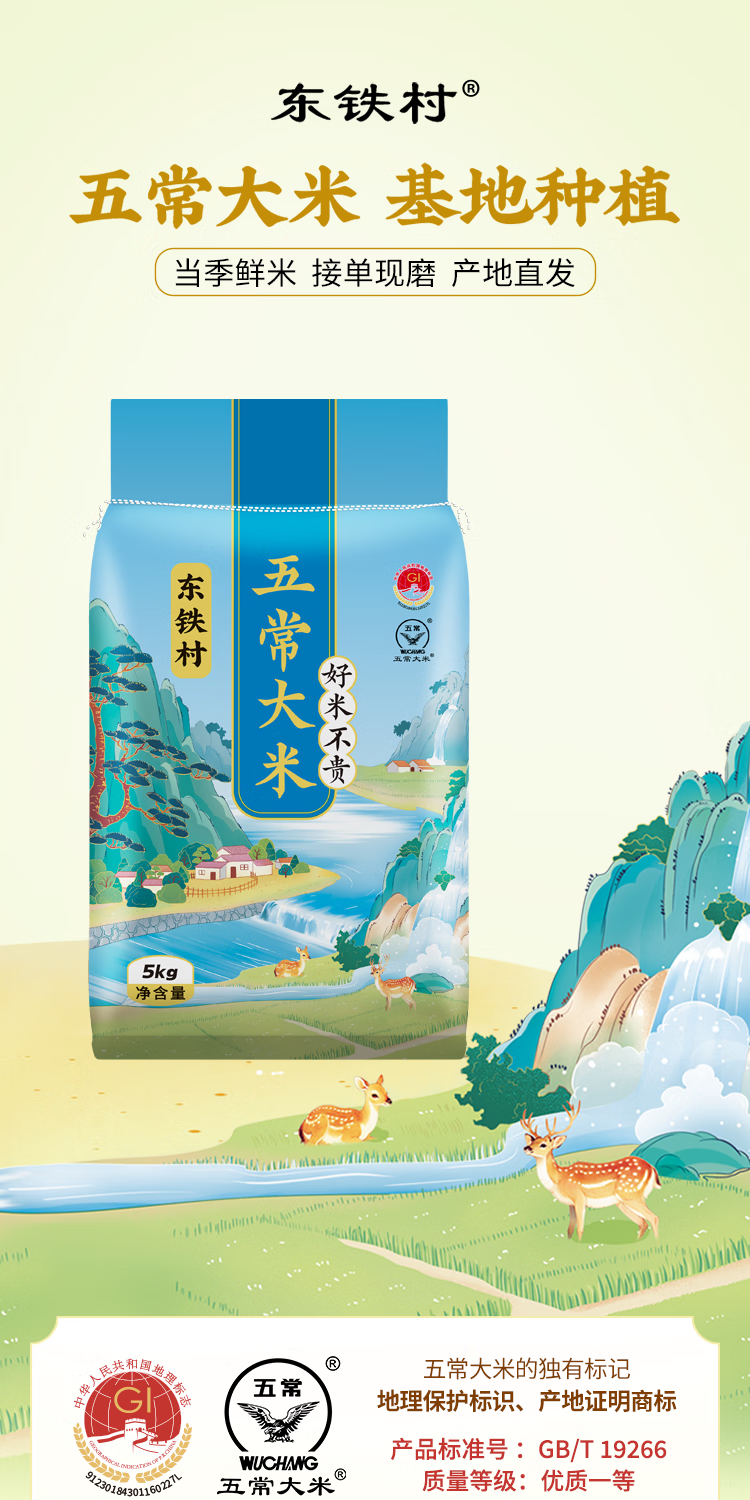 东铁村五常大米东北大米产地现磨现发新鲜米执行标准GB/T19266 蓝色山水2.5kg*1