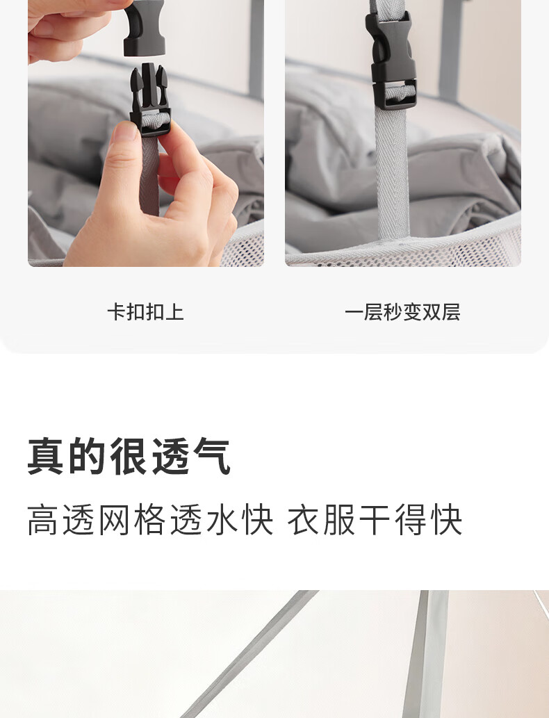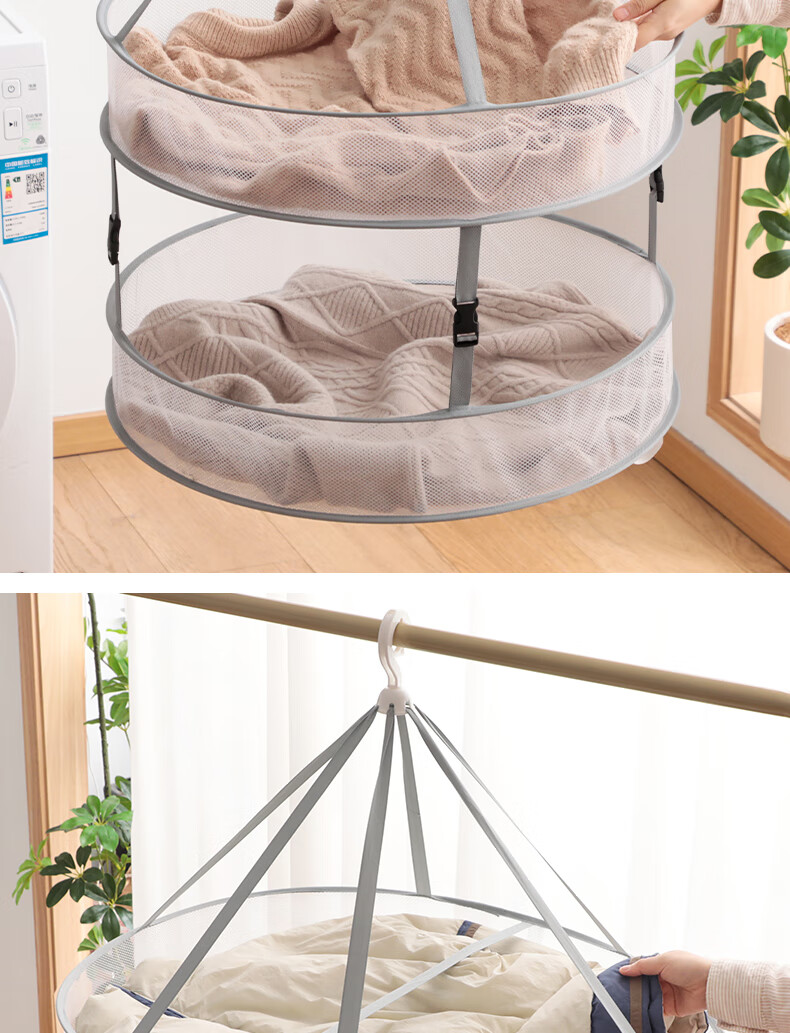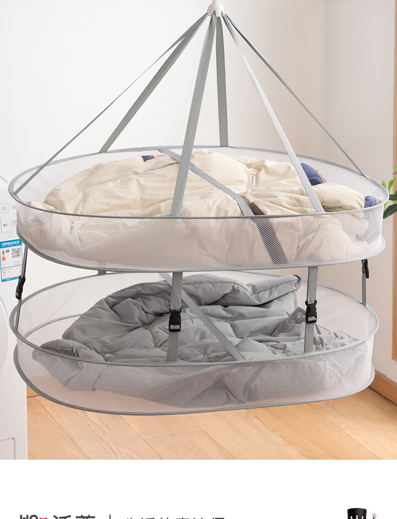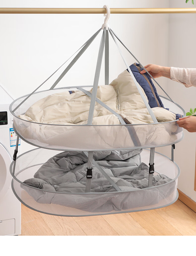 沃尊晒衣篮晾衣网羊毛衫专用平铺晾衣架晾衣服网兜毛衣晾晒神器晾晒网 长方形-双层有围栏【升级可拆卸】