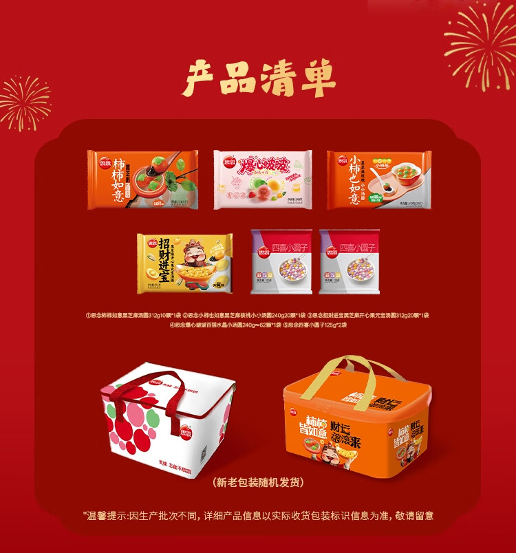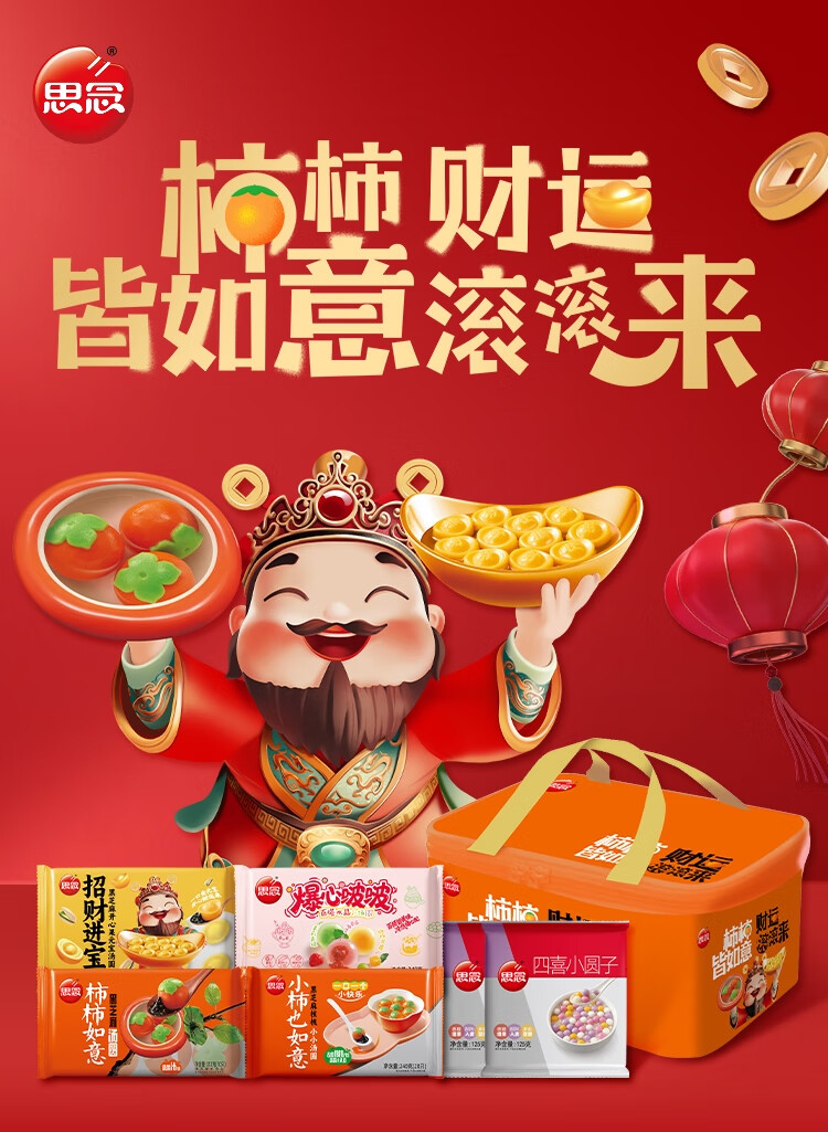 思念汤圆柿柿如意汤圆礼盒1354g/6袋 速冻元宵早餐甜品年货送礼团购