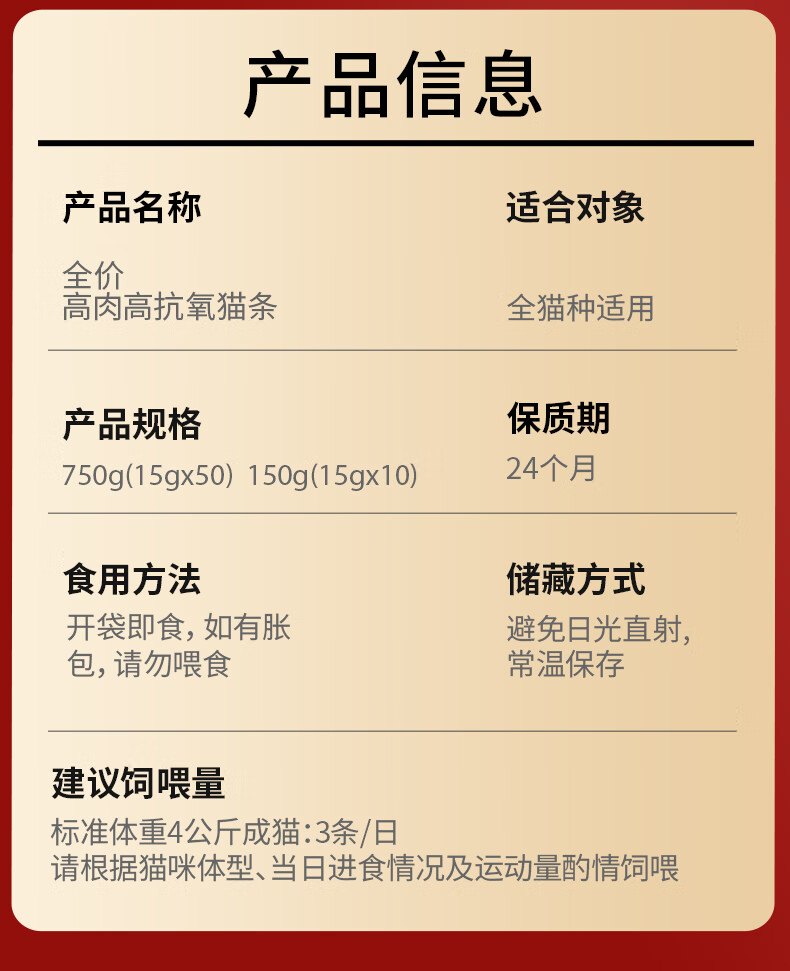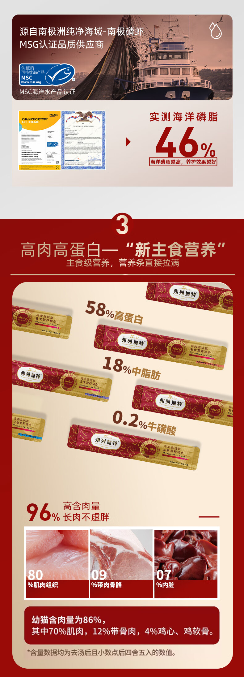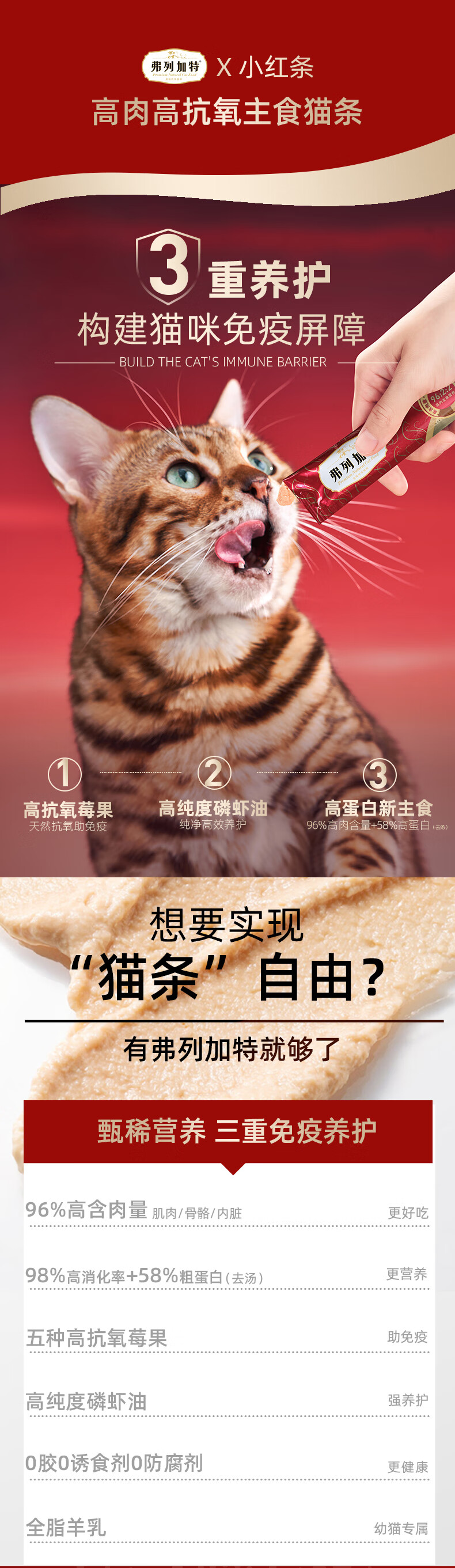弗列加特主食猫条 96%高含肉量营养猫条 猫湿粮宠物猫零食 【全猫】牛肉金枪鱼味750g(50支)