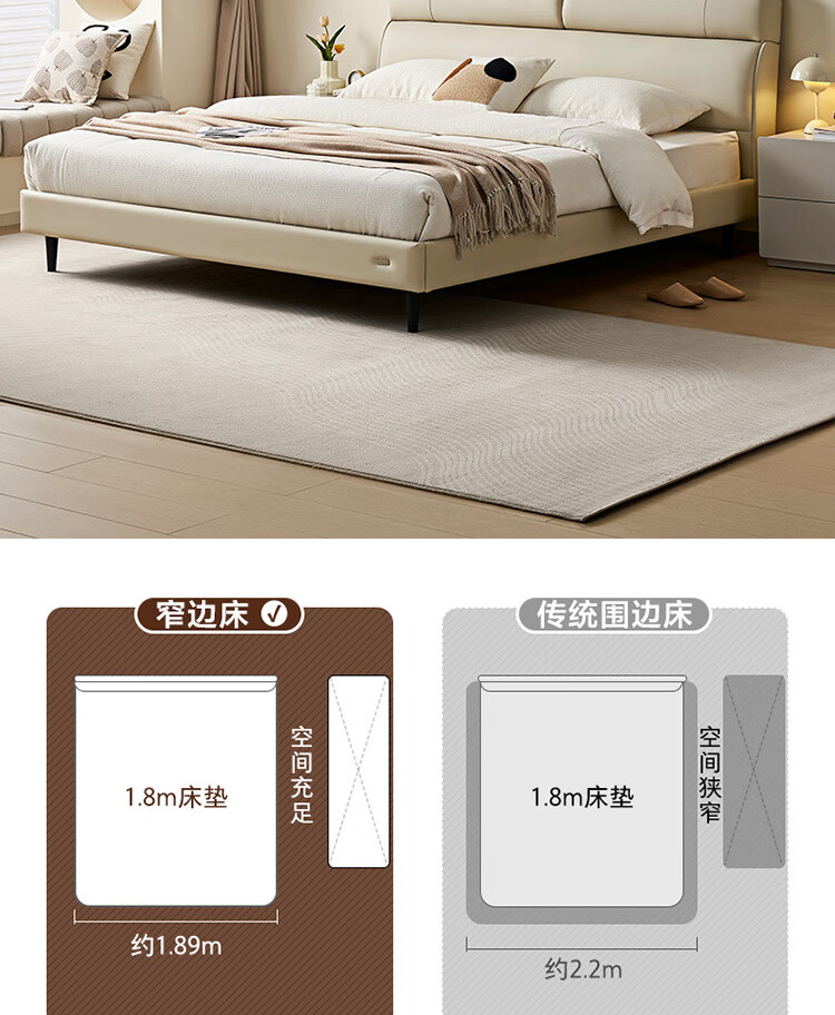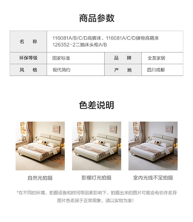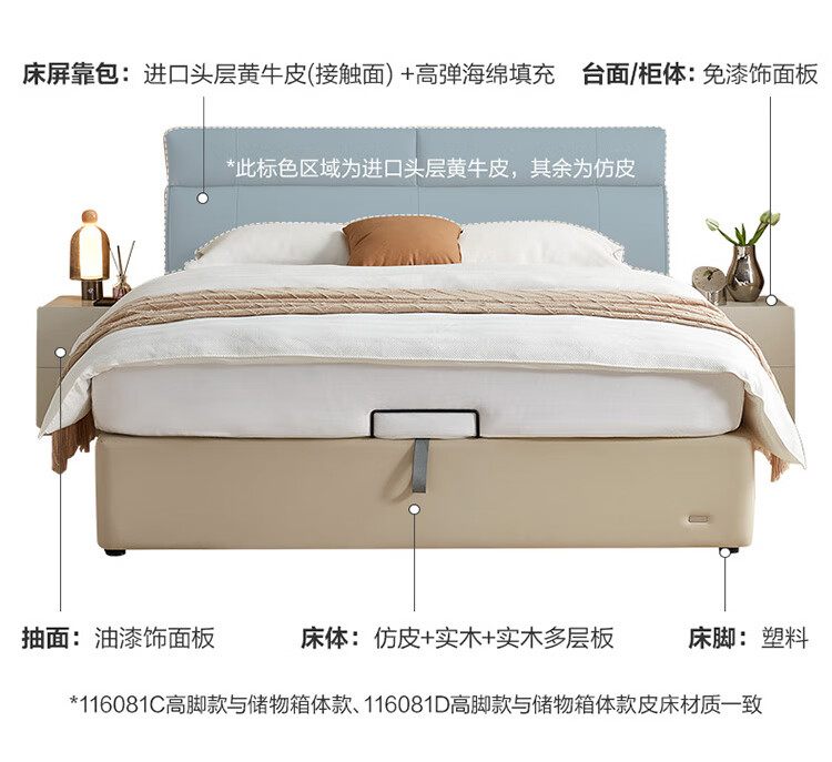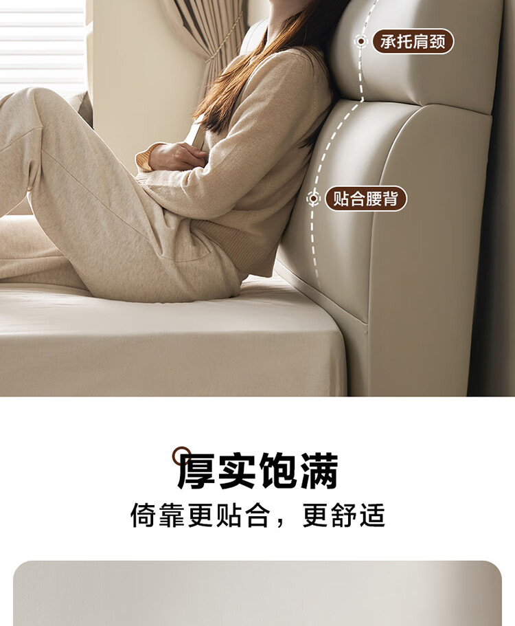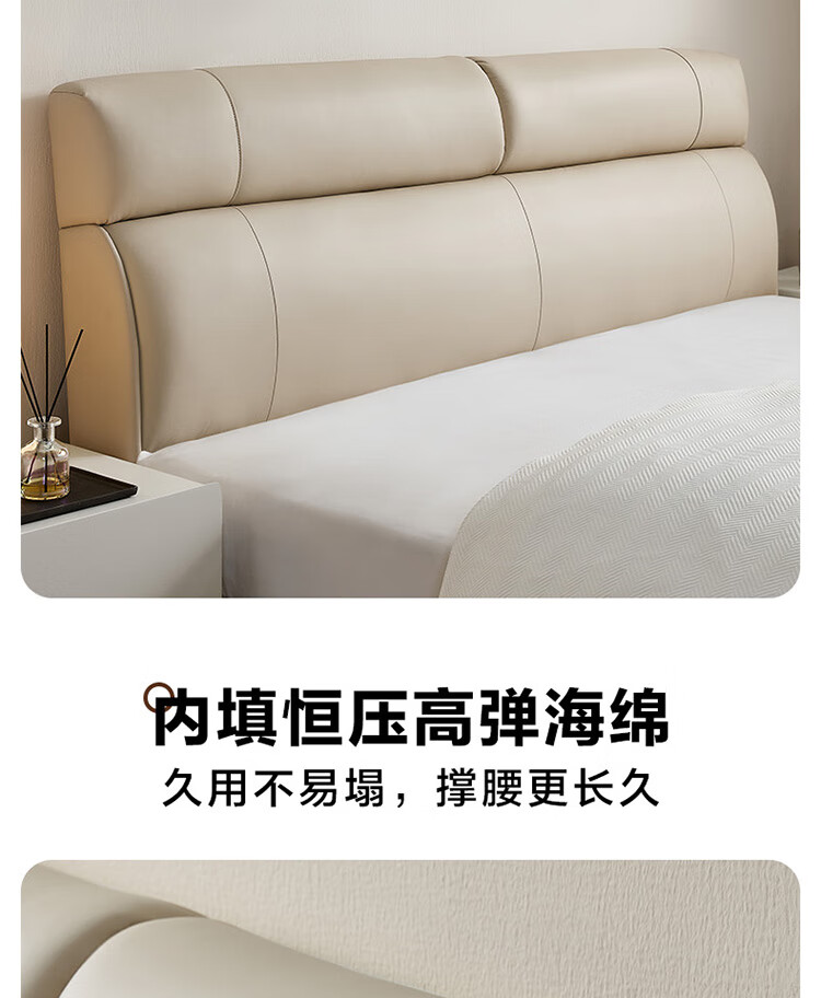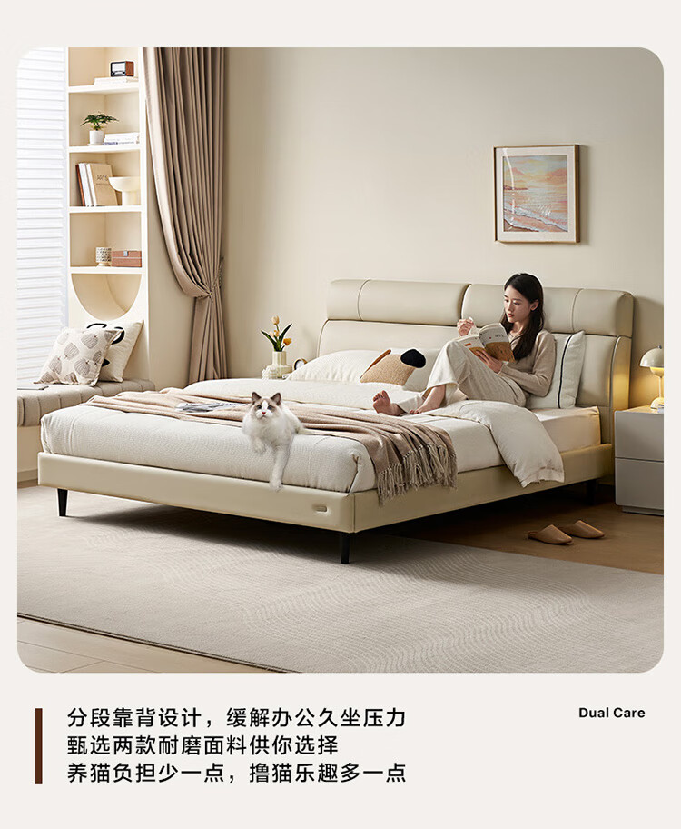 全友家居 现代简约皮艺床主卧室床头软包靠背双人大床1.8x2米婚床家用