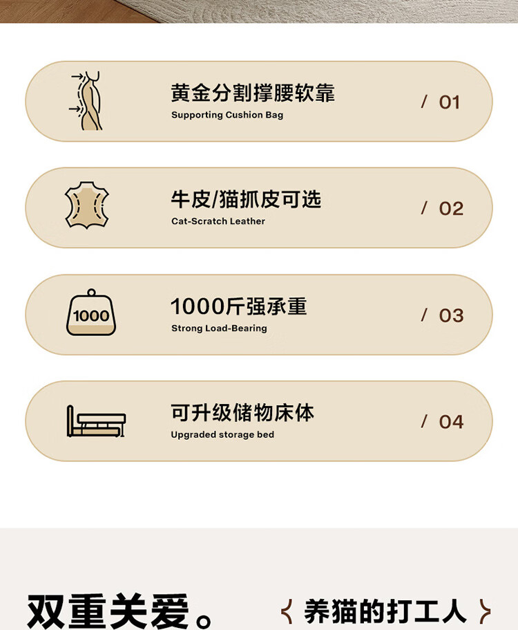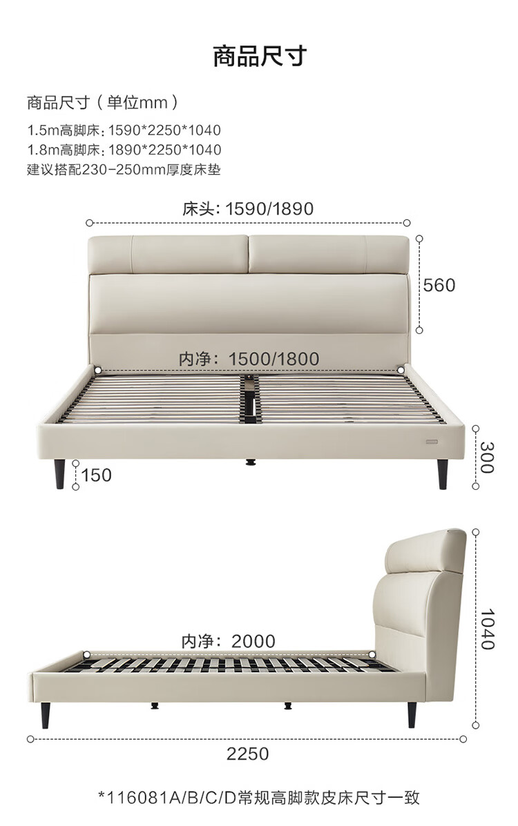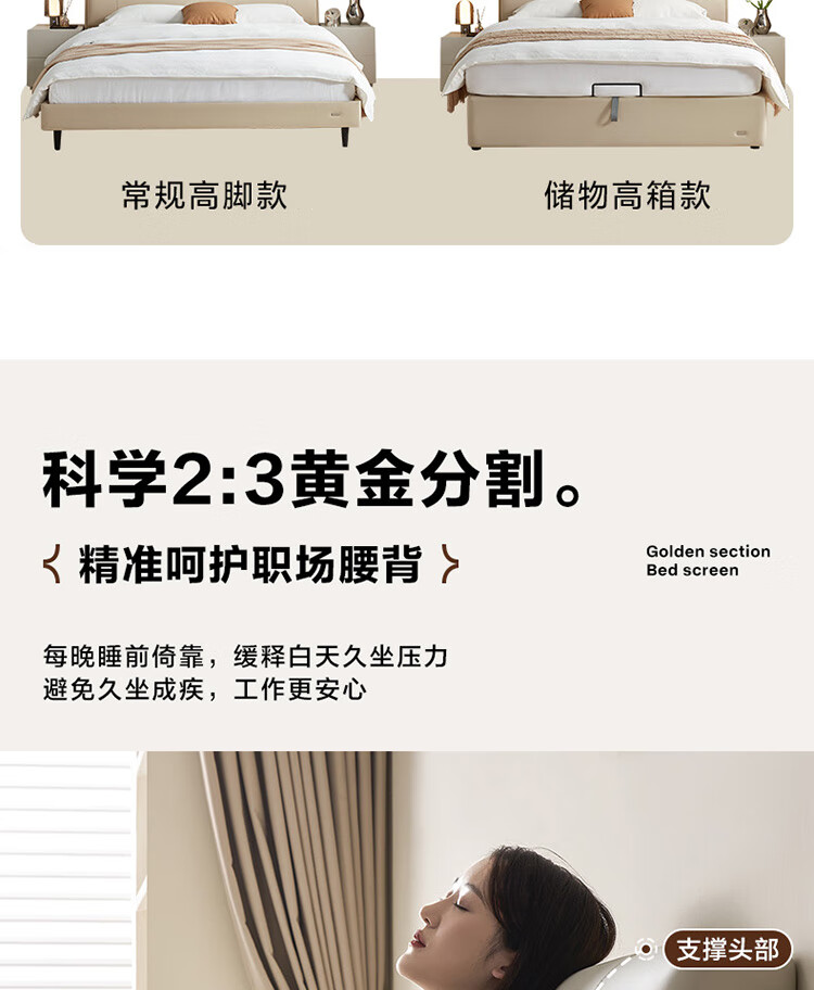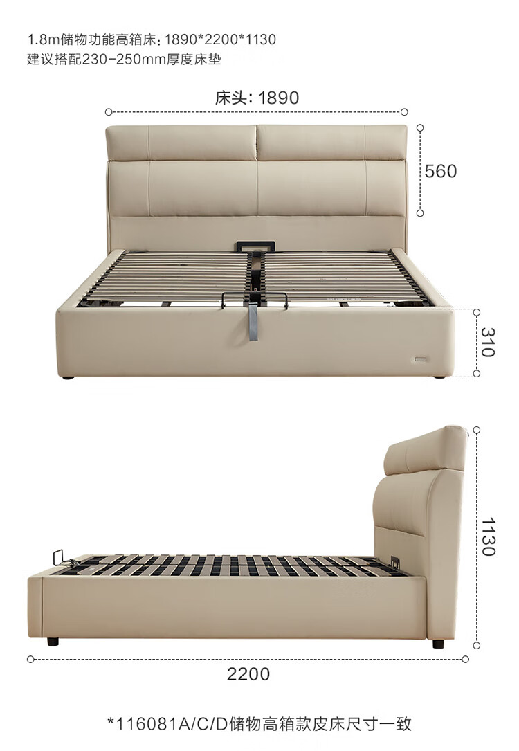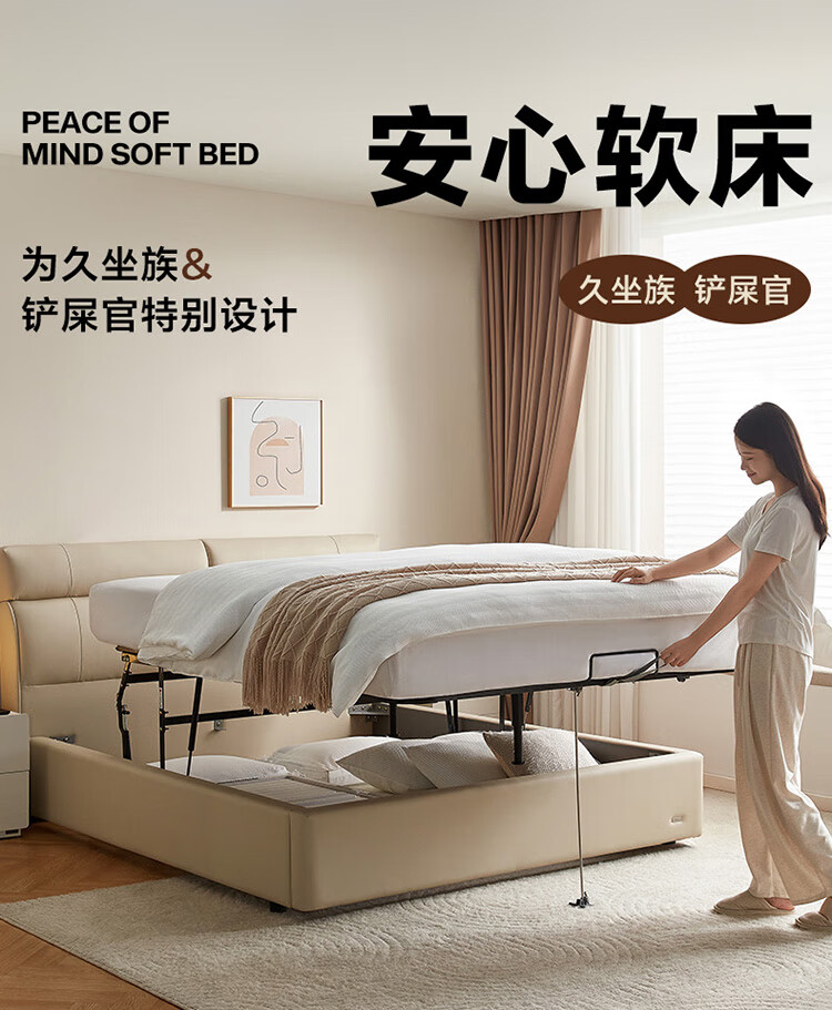 全友家居 现代简约皮艺床主卧室床头软包靠背双人大床1.8x2米婚床家用