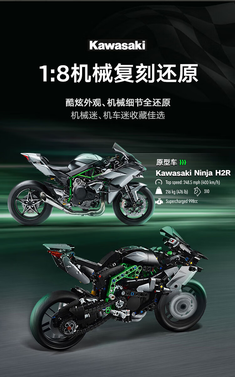 乐高(LEGO)积木机械组42170 川崎H2摩托车不可遥控男孩玩具生日礼物新年装饰