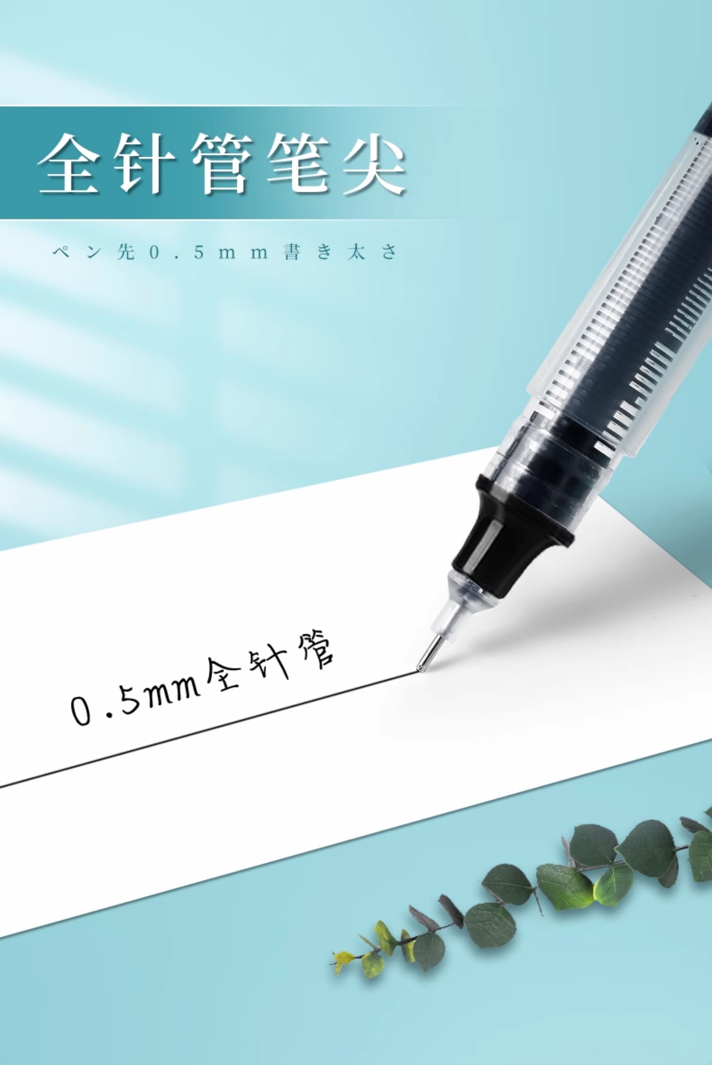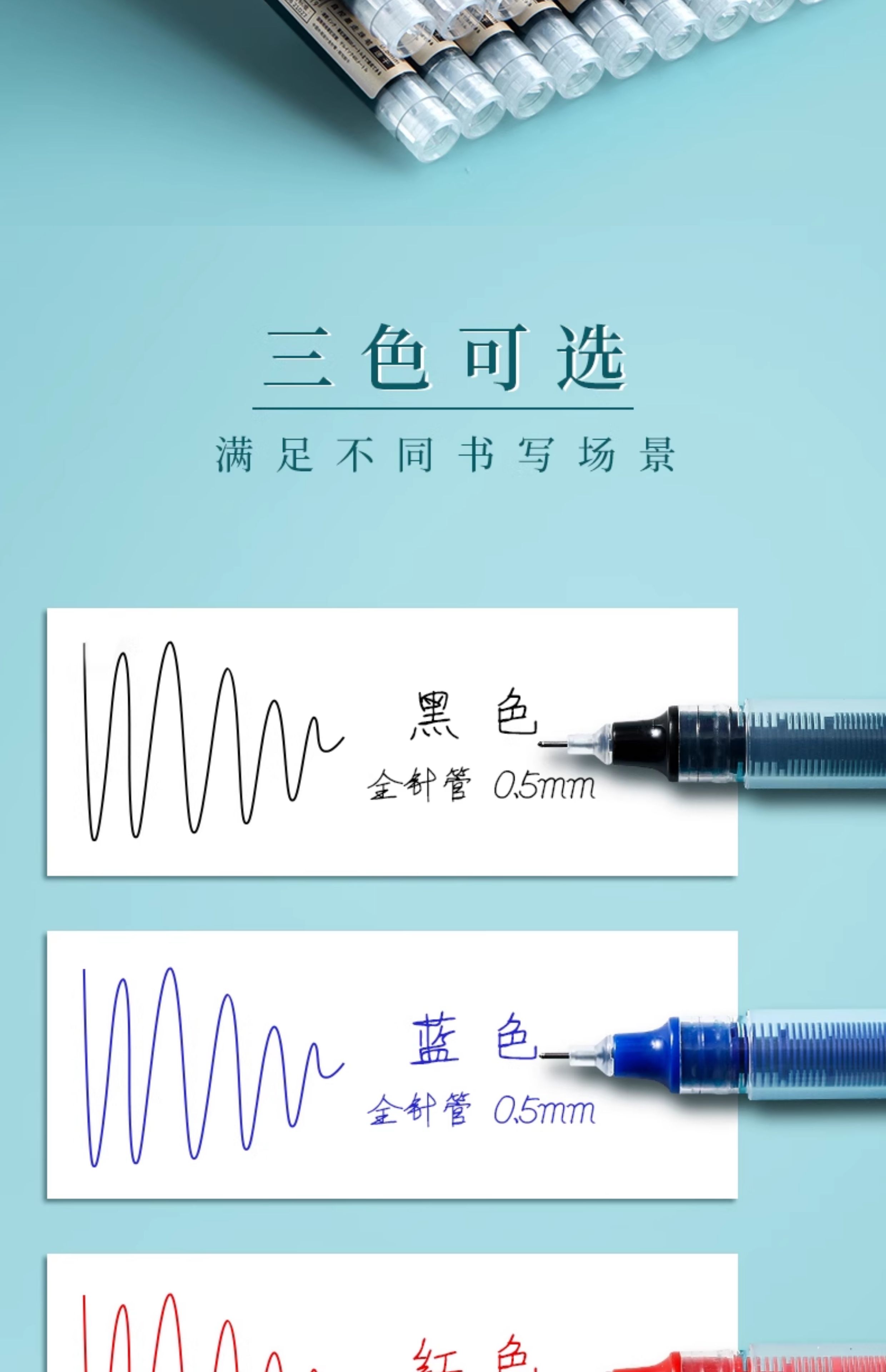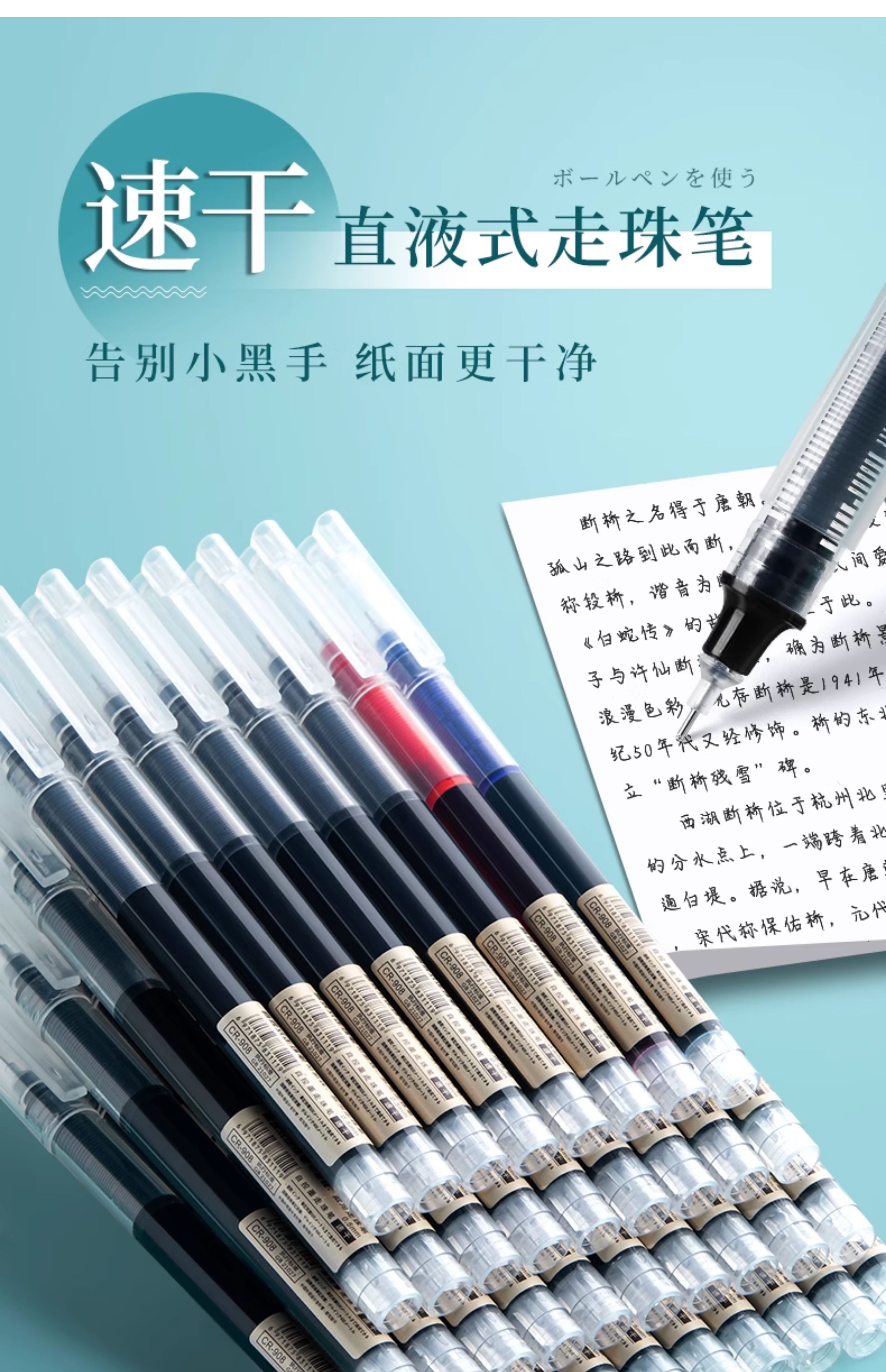直液式中性笔黑色0.5mm全针管速干大容量巨能写商务办公走珠签字笔学生文具考试刷题笔 黑色10支
