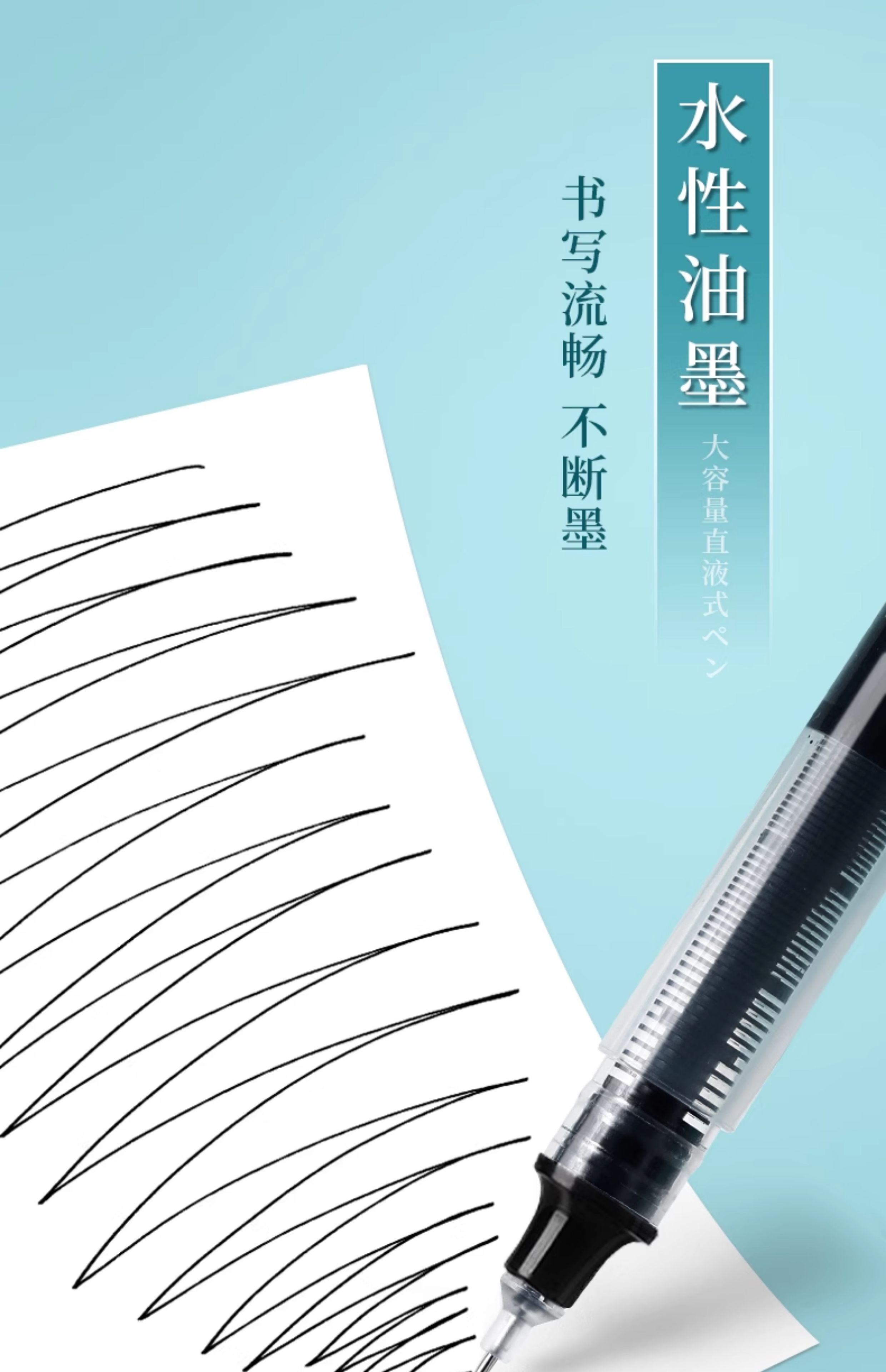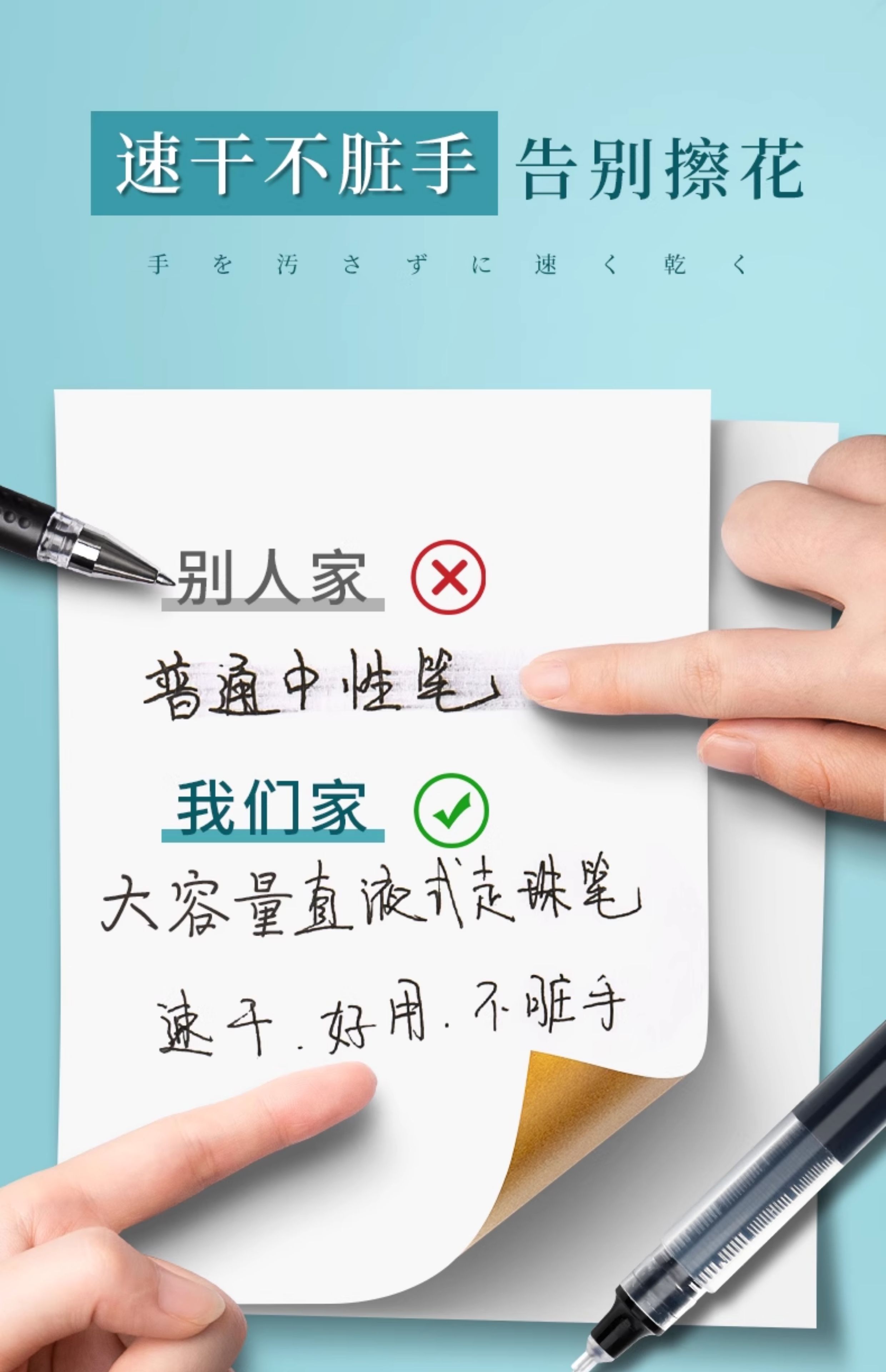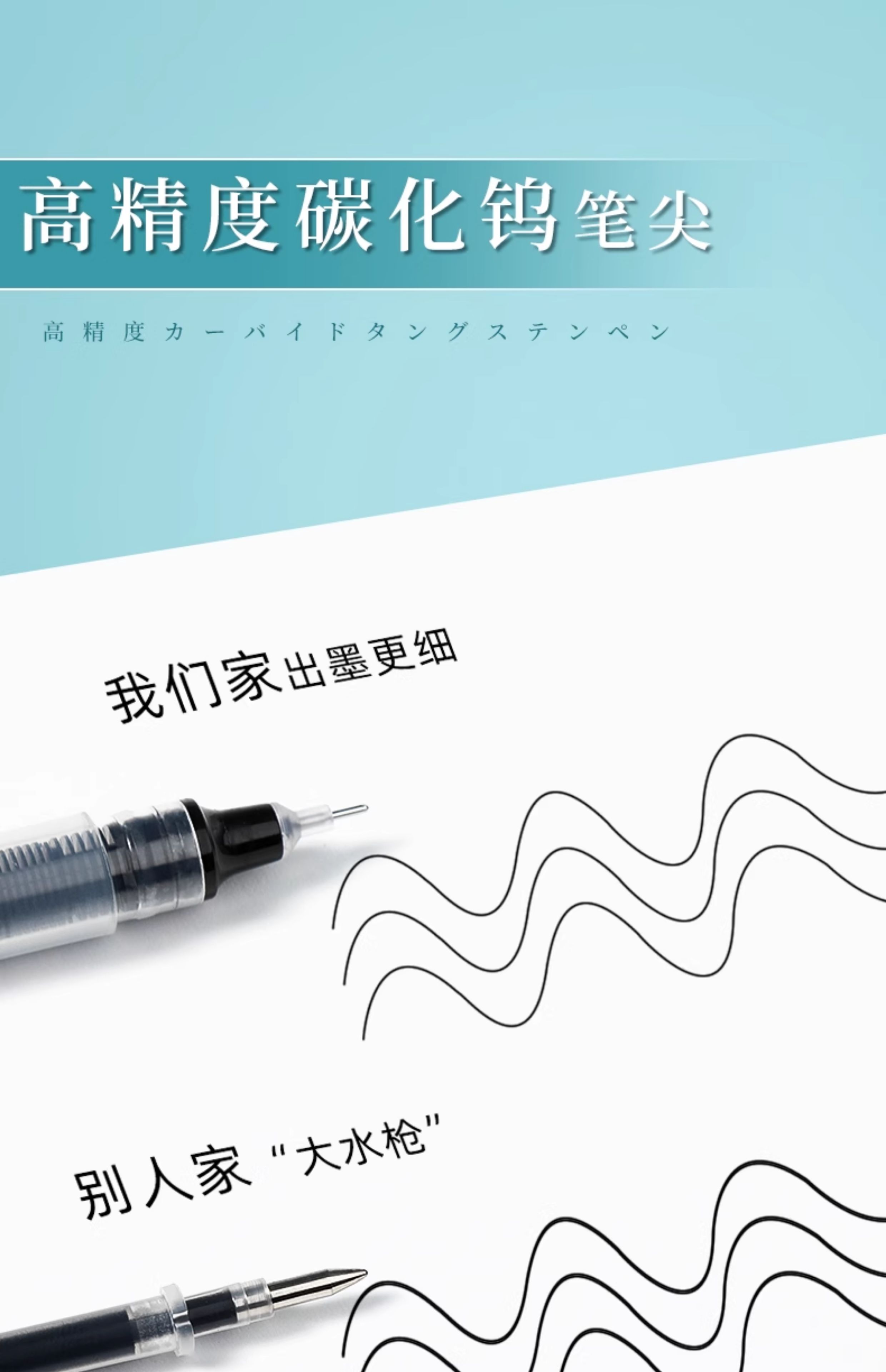 直液式中性笔黑色0.5mm全针管速干大容量巨能写商务办公走珠签字笔学生文具考试刷题笔 黑色10支