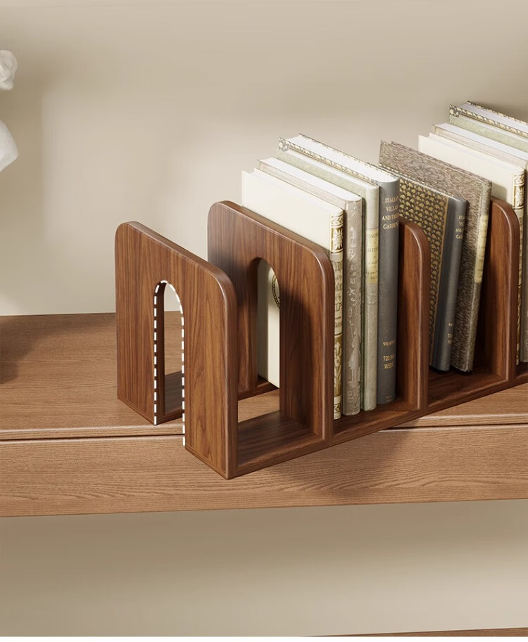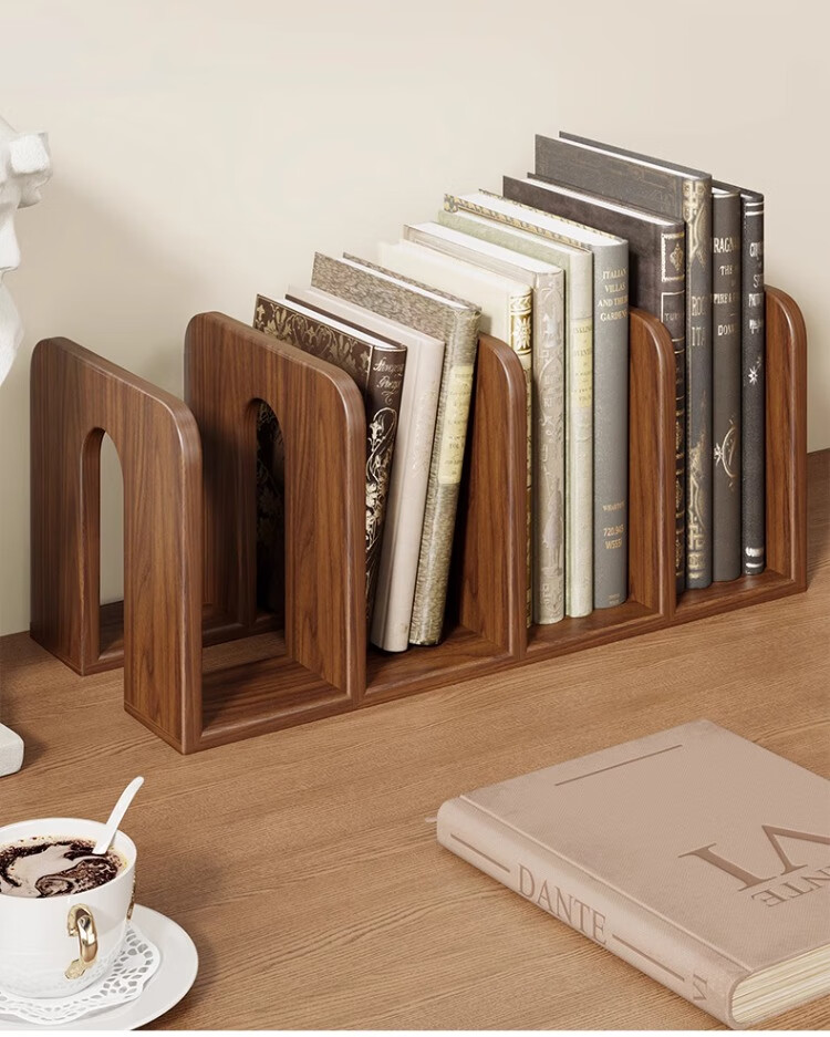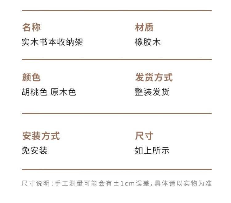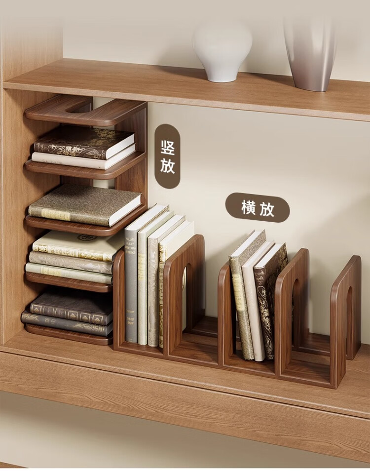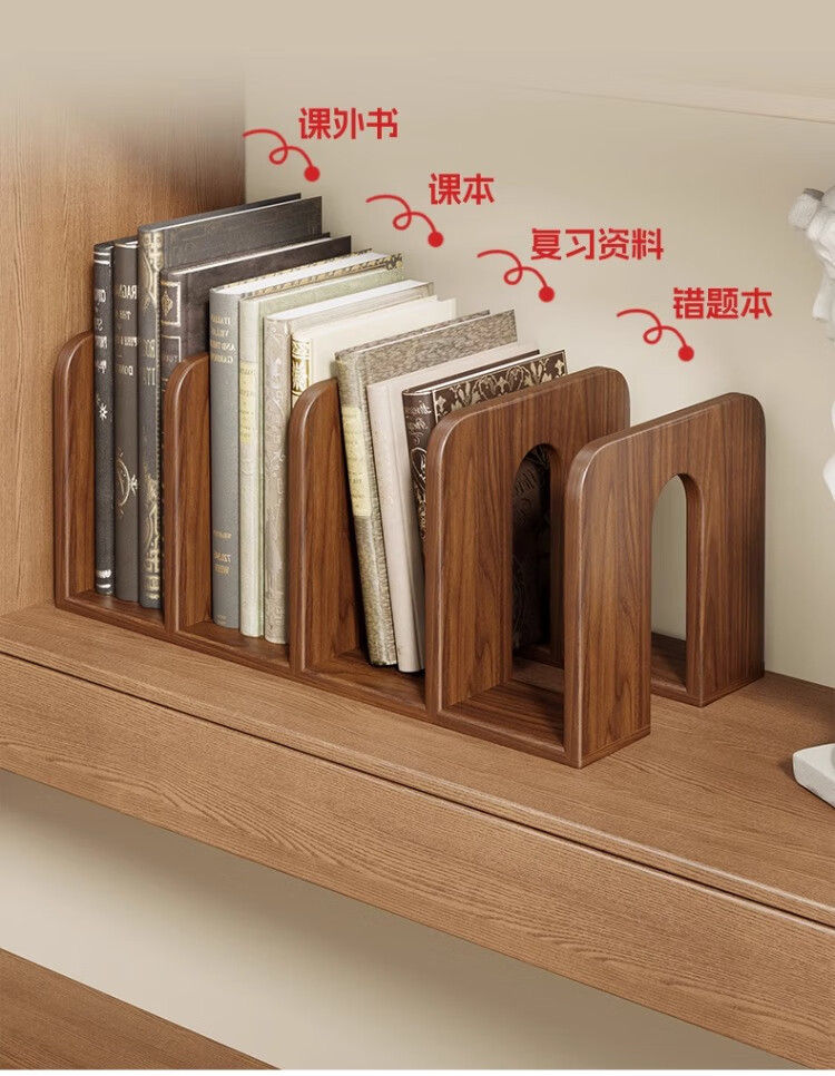 尔思家实木桌面书架书柜置物架飘窗书立架学生书本收纳简易桌上书立架子 胡桃色【进口实木】
