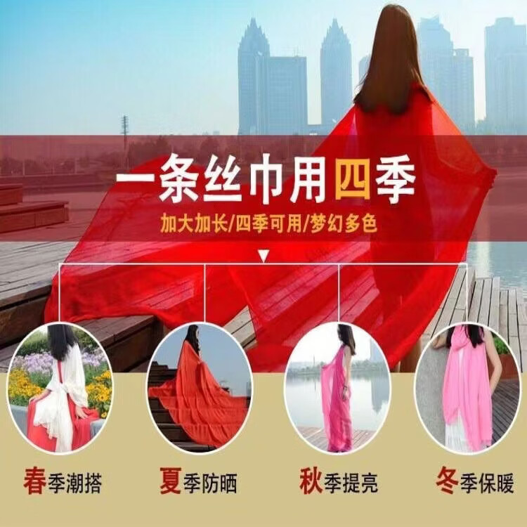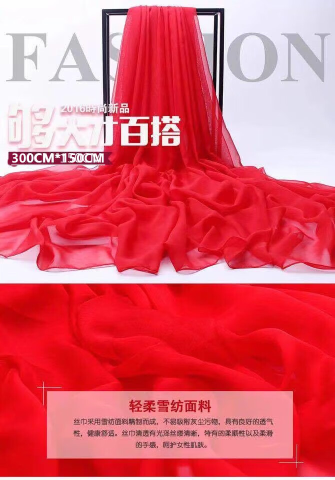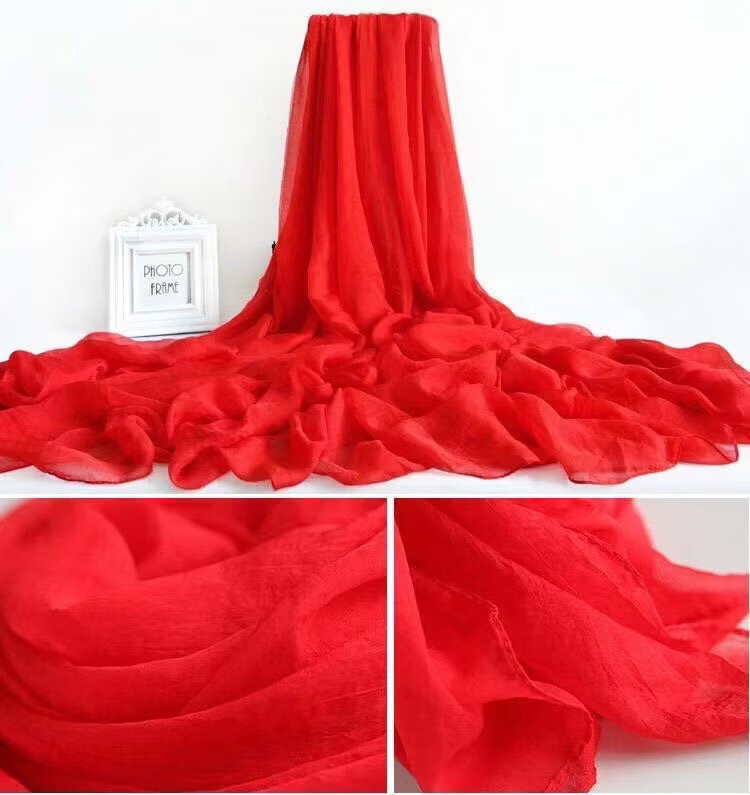【严选】大红色超大雪纺纯色丝巾春夏季沙滩防晒巾百搭大披肩舞蹈 红色 宽70cm长170cm
