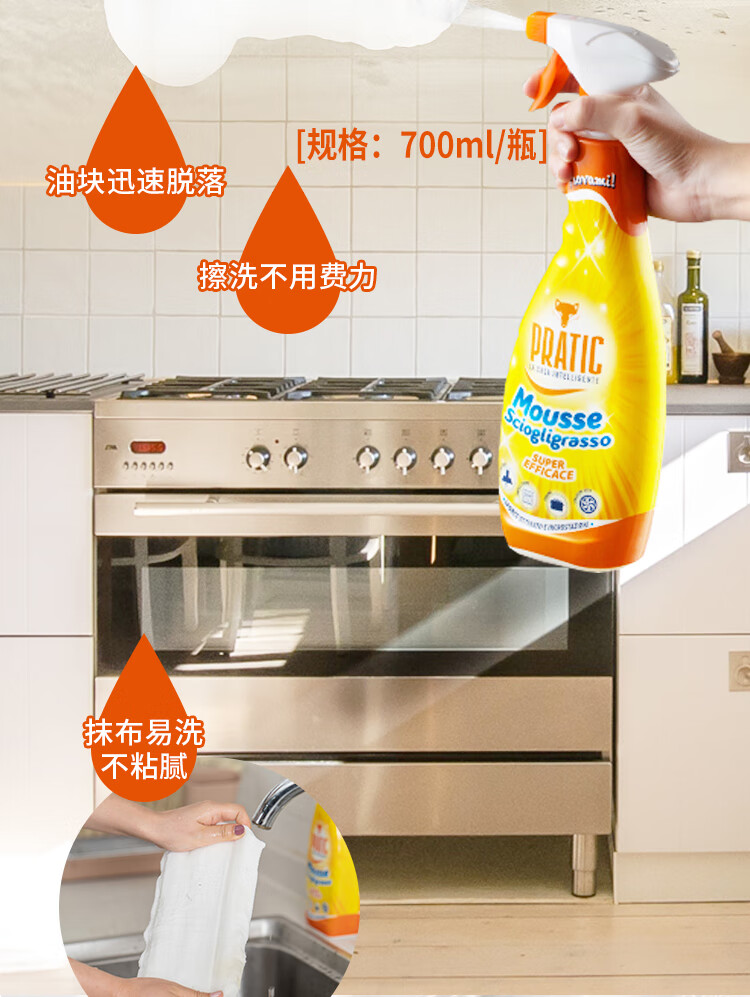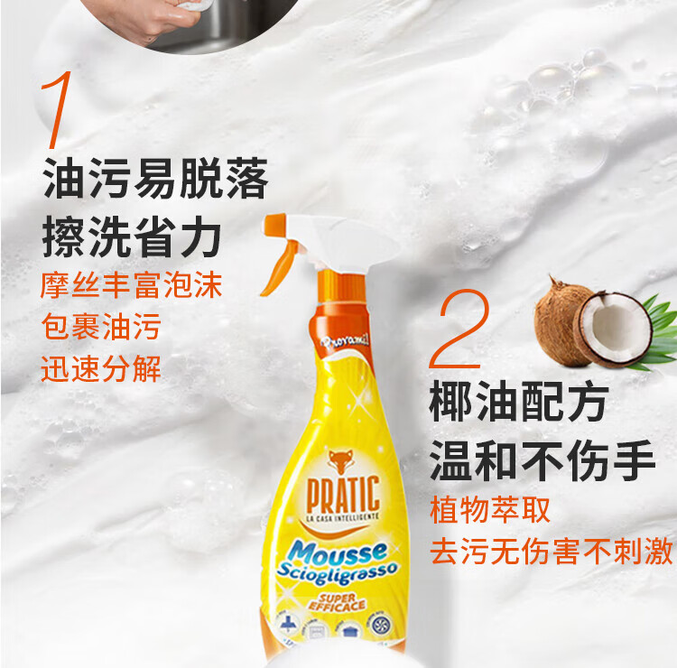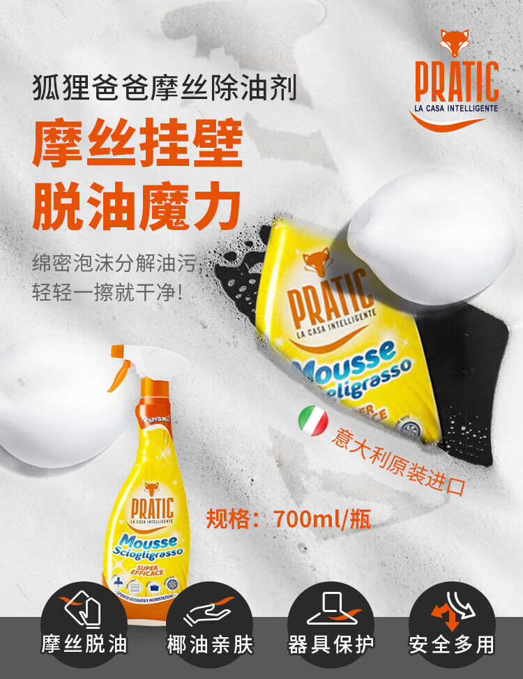 狐狸爸爸油污净清洁剂 意大利原装进口 厨房去油污强力除垢油烟清洗神器 摩丝除油剂700ml*3