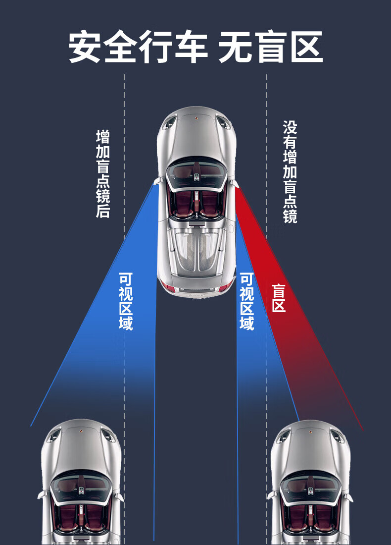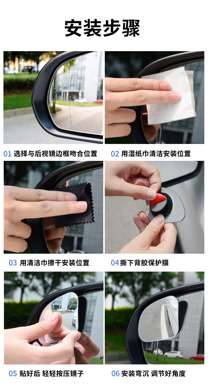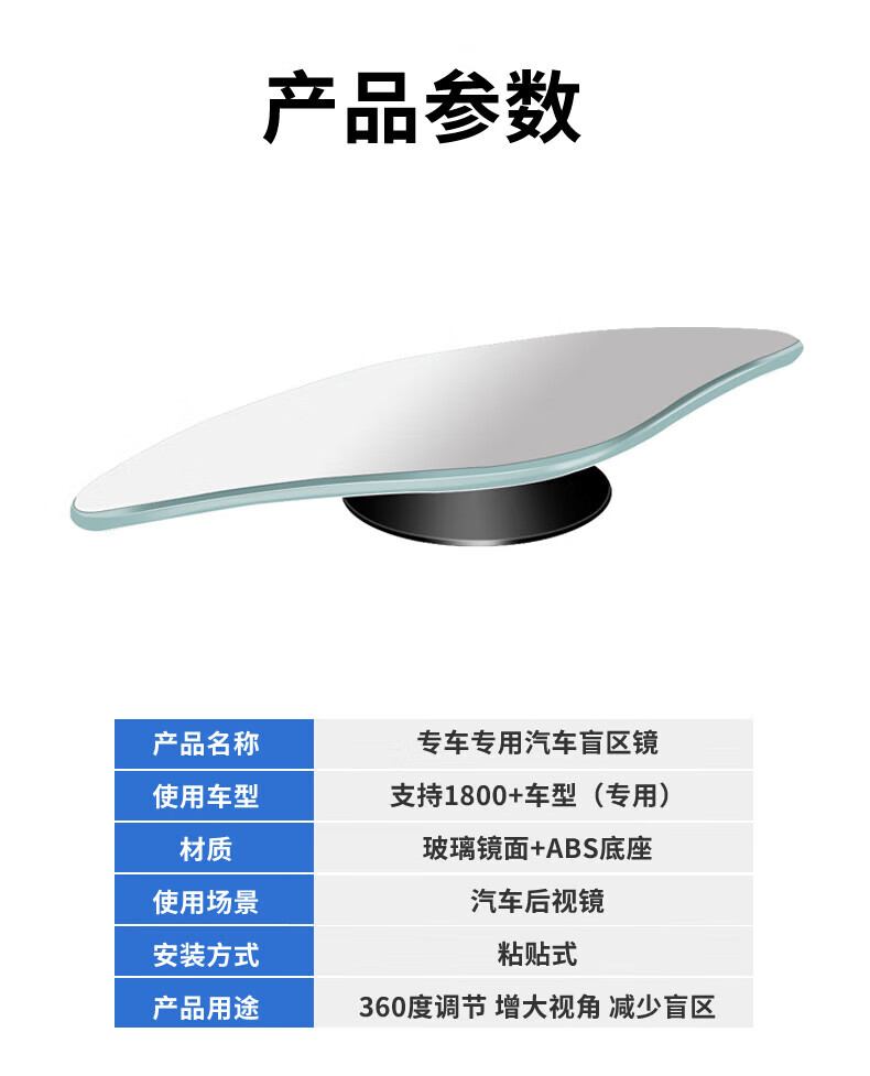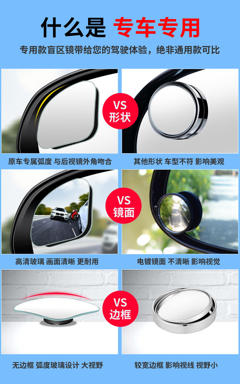 专车专用倒车镜小圆镜无边框后视镜辅助镜盲点镜粘贴式扇形小镜子 大众帕萨特朗行朗境朗逸凌度途昂