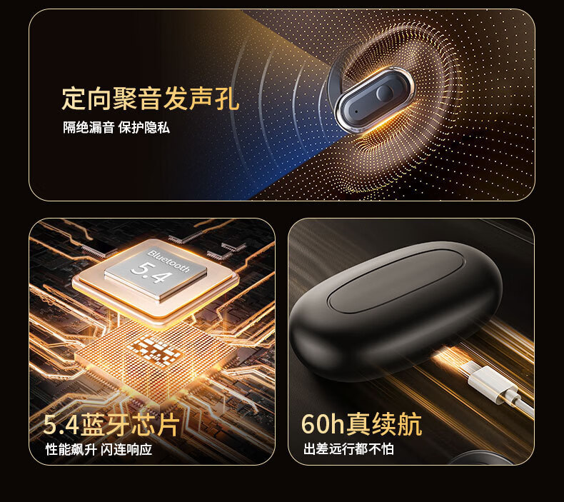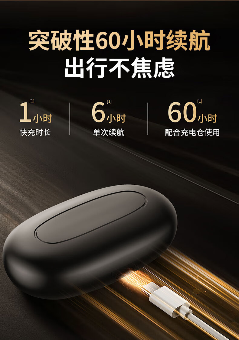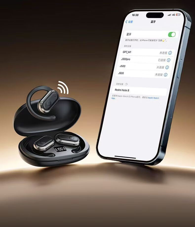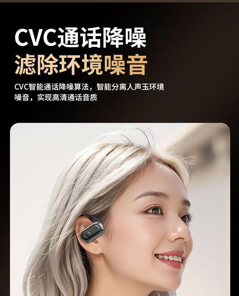 歌丽斯【优选】OWS无线蓝牙耳机不入耳开放式挂耳式耳机空气骨传导运动降 黑色 1个装 裸机(无配件)