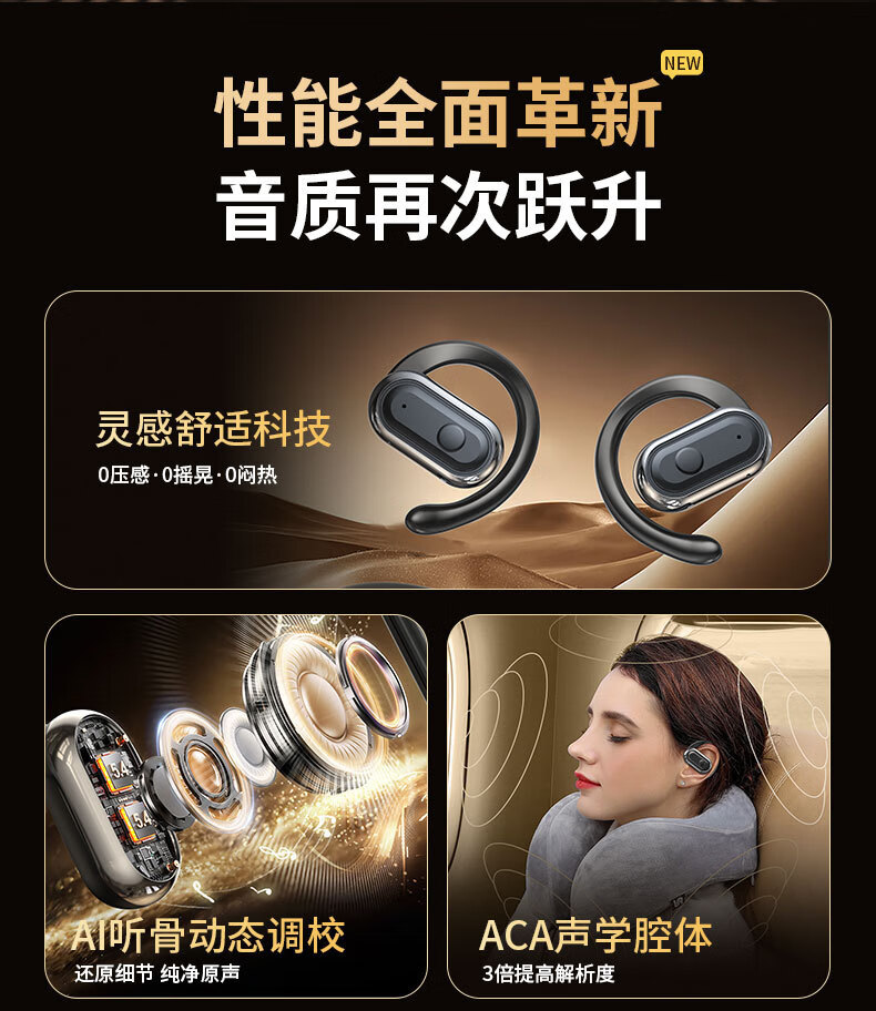 WENINEWIN【柏林之声 I可旋转】挂耳式蓝牙耳机2025最新款超长续航开放不入耳降噪跑步运动适用华为苹果小米 Q39卡其白【同声传译Ai翻译版】