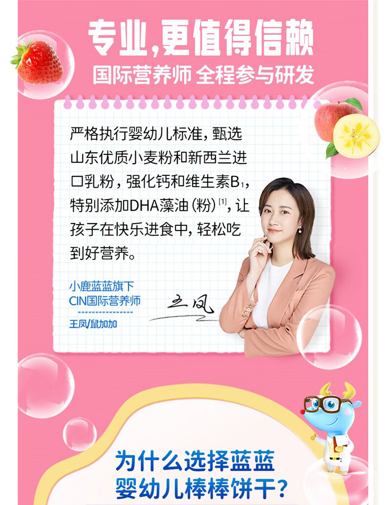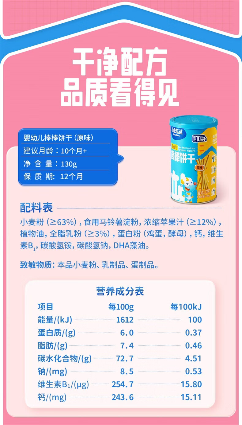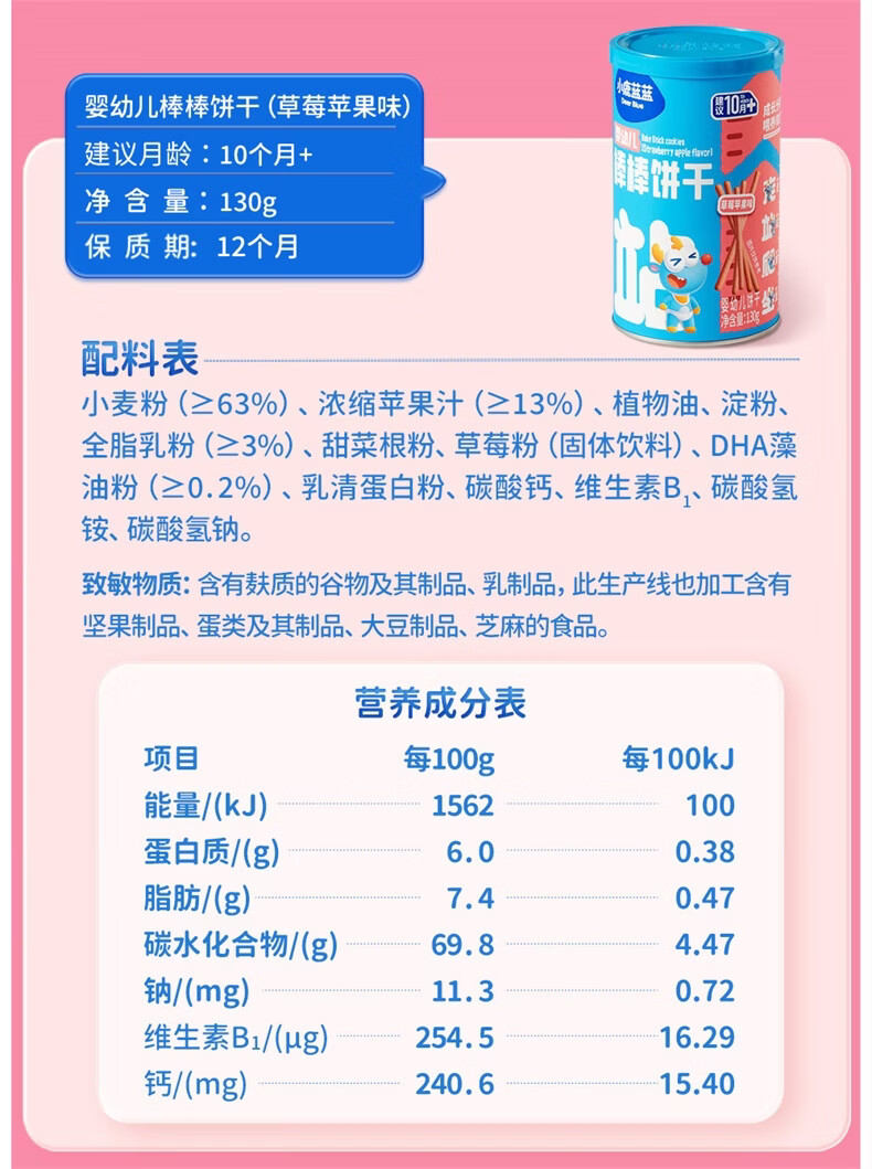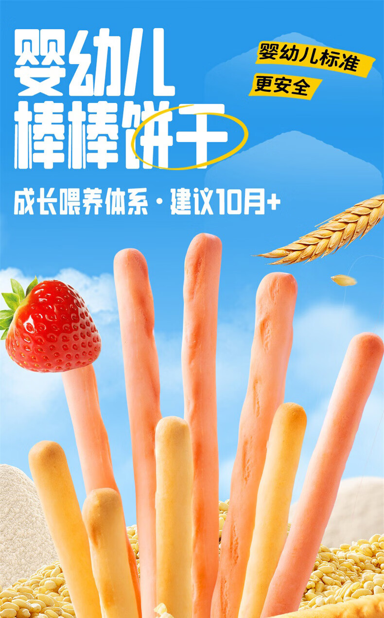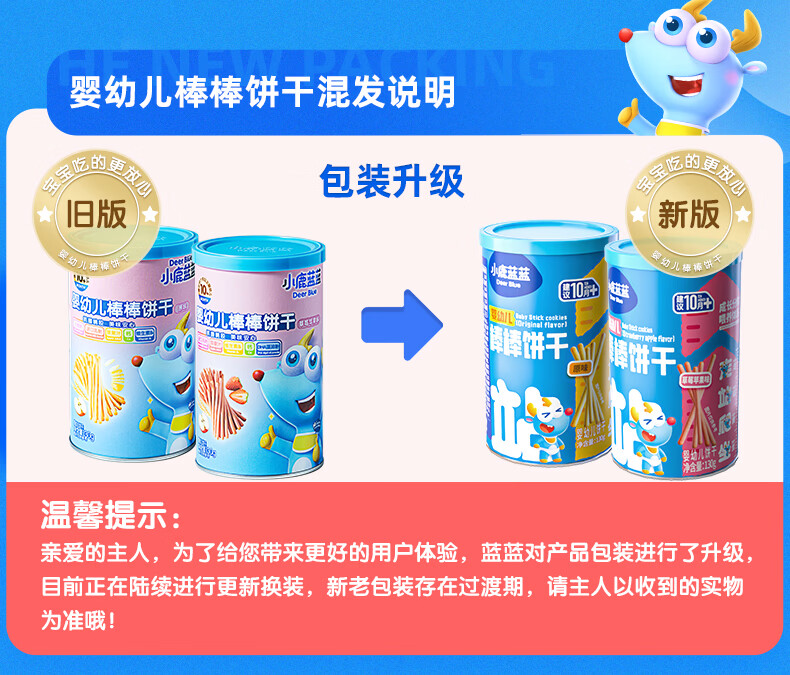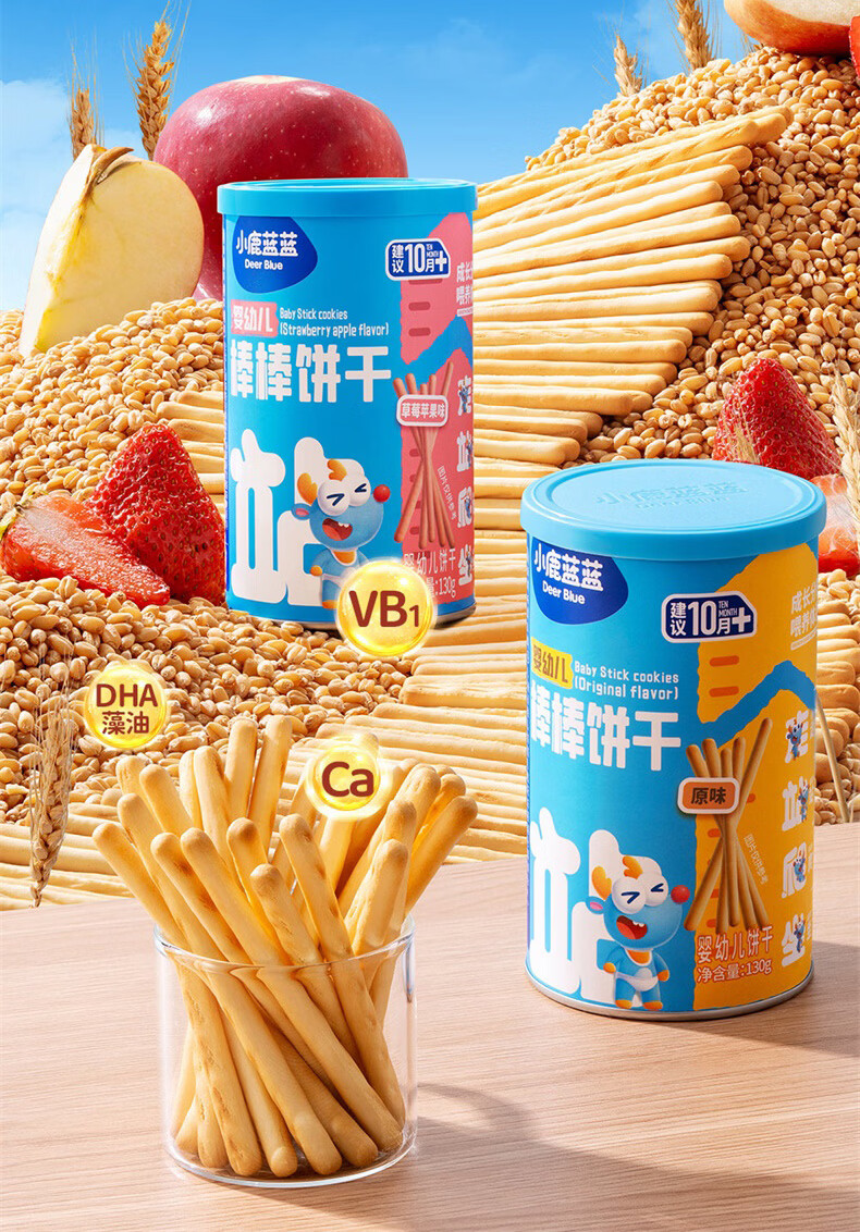 小鹿蓝蓝 婴幼儿炭烧棒磨牙棒饼干宝宝儿童零食手指饼干130g
