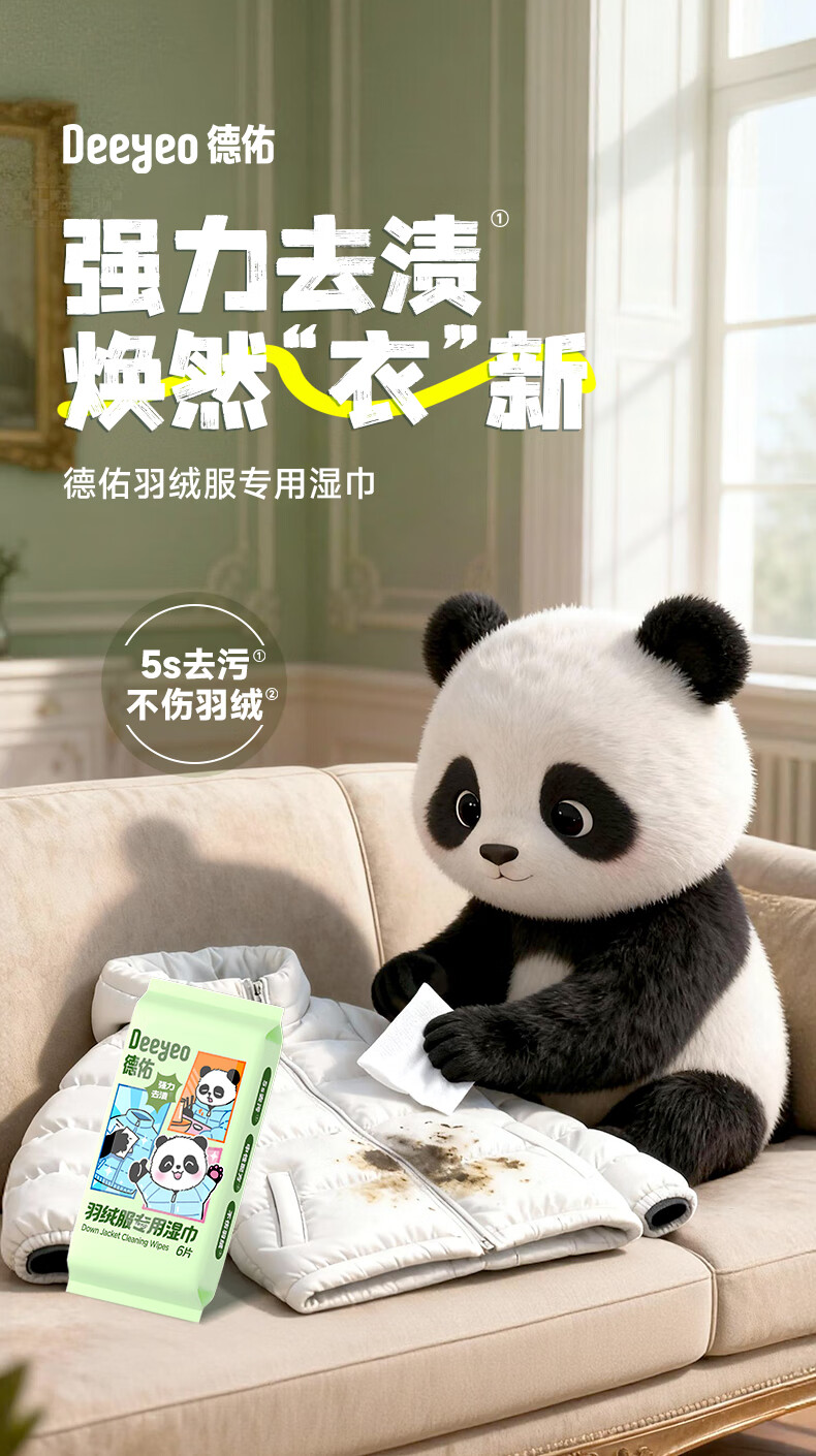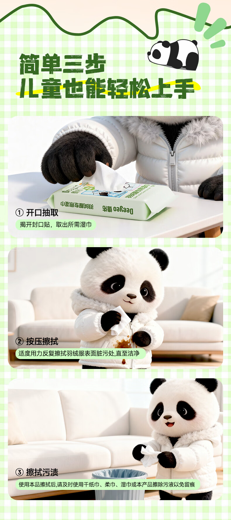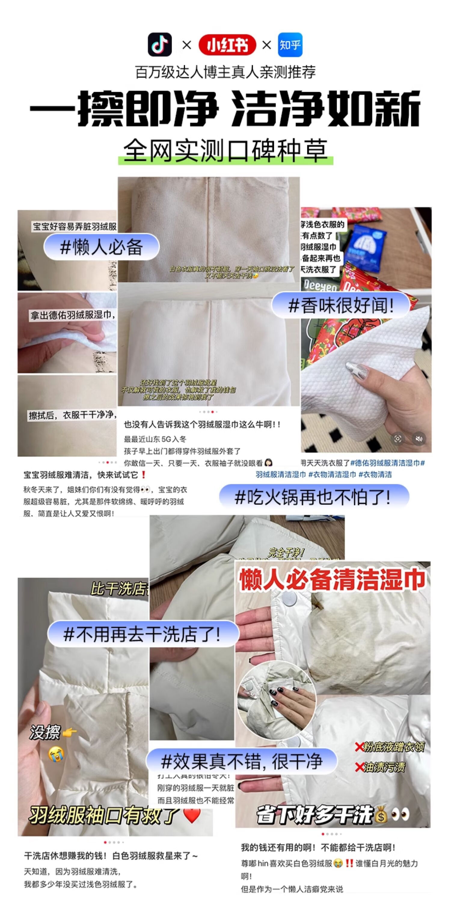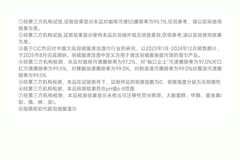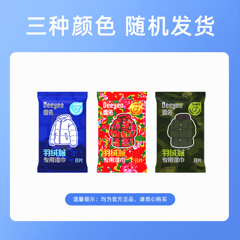 德佑清洁湿巾羽绒服湿巾擦鞋小白鞋湿纸巾免洗去污渍强效去污功能湿巾 【新款升级】羽绒服湿巾8片*3包