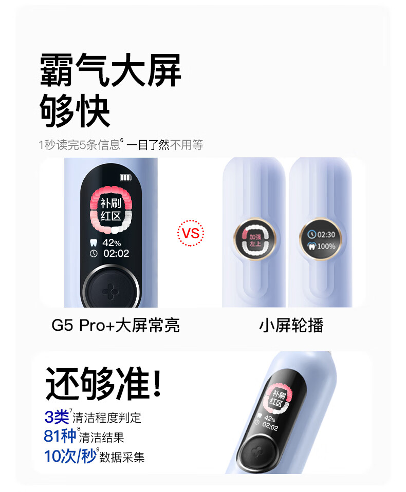 舒客大屏扫振电动牙刷 G5 Pro+(冰川蓝)深度清洁成人送男友女友 情人节生日礼物 新年货礼物 牙刷