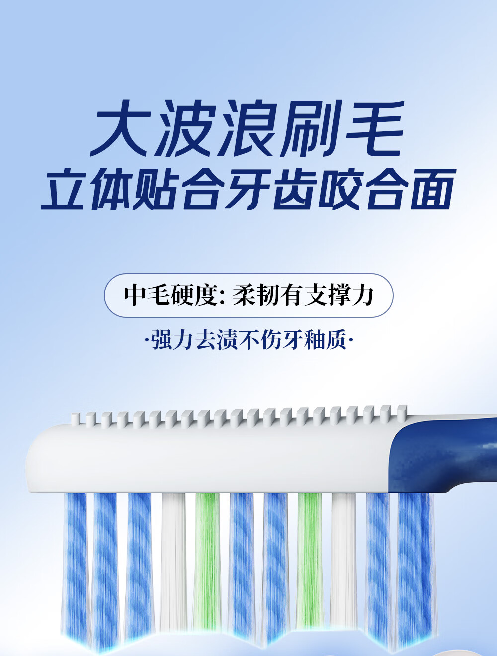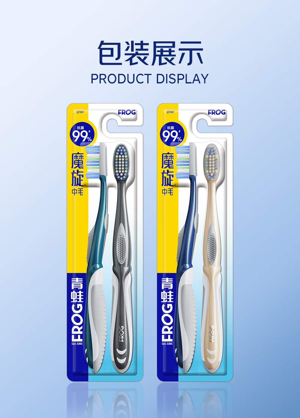 青蛙三重植毛牙刷抗菌去异味中硬毛牙刷深层洁净牙龈清洁牙渍 【顽固黑黄牙推荐】强去渍牙刷 4支 颜色随机发