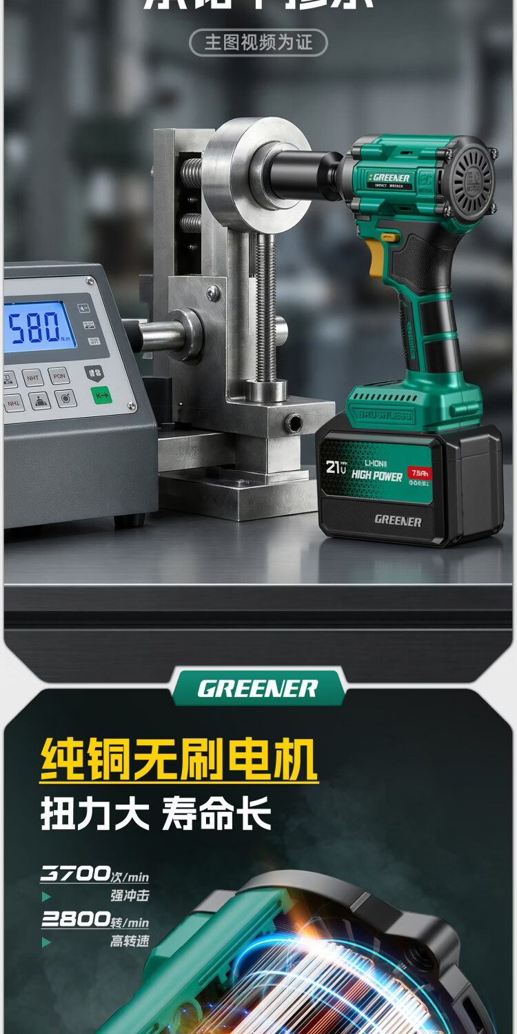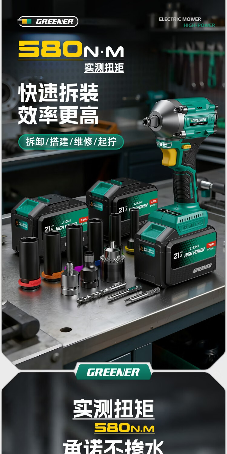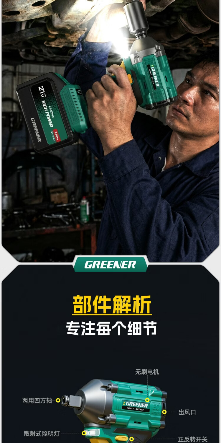 绿林无刷电动扳手正品大扭力轮胎汽修工具冲击风炮锂电小型电板子 【实测380N】无刷全能款+10节4.0AH二电+豪华礼包