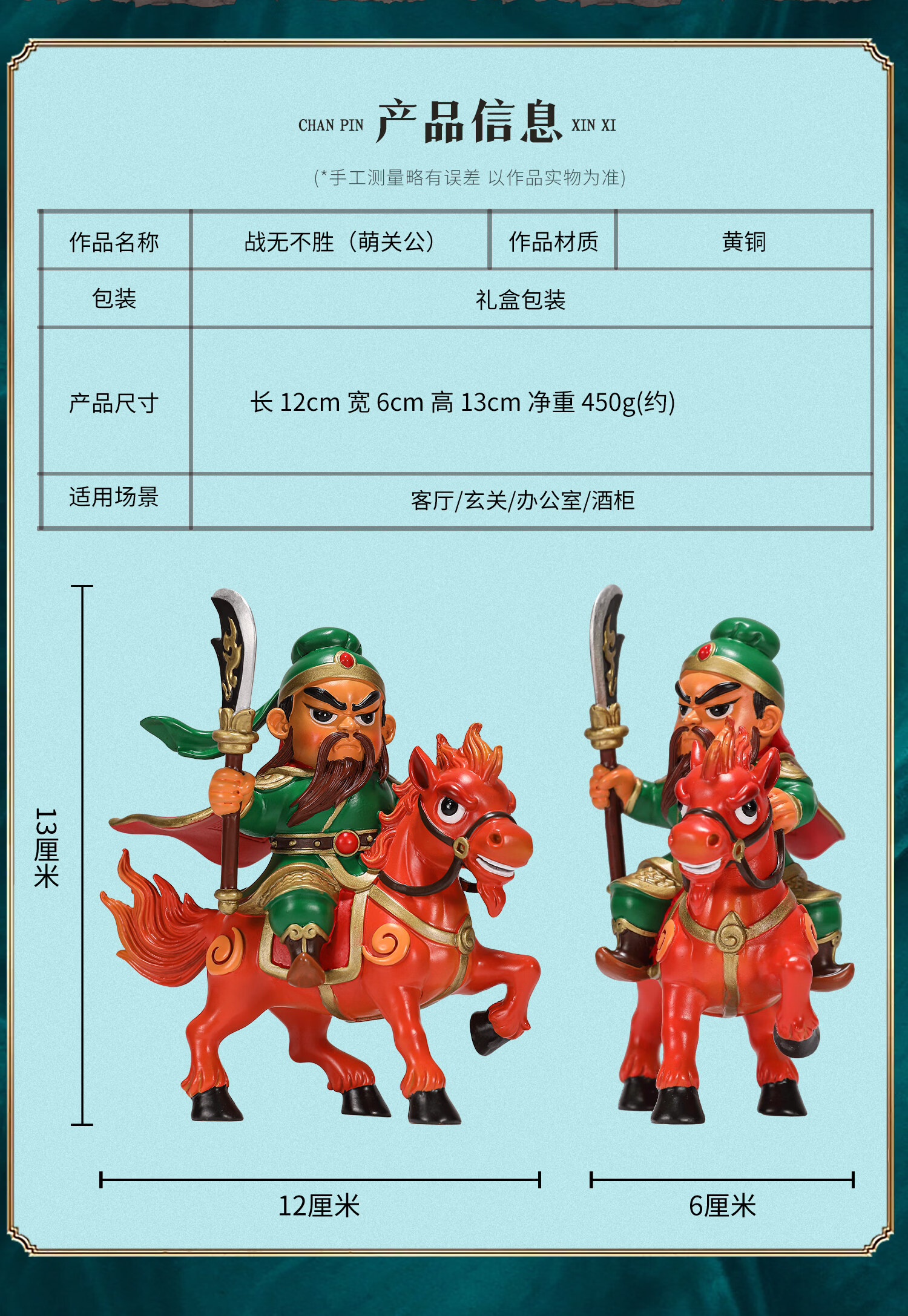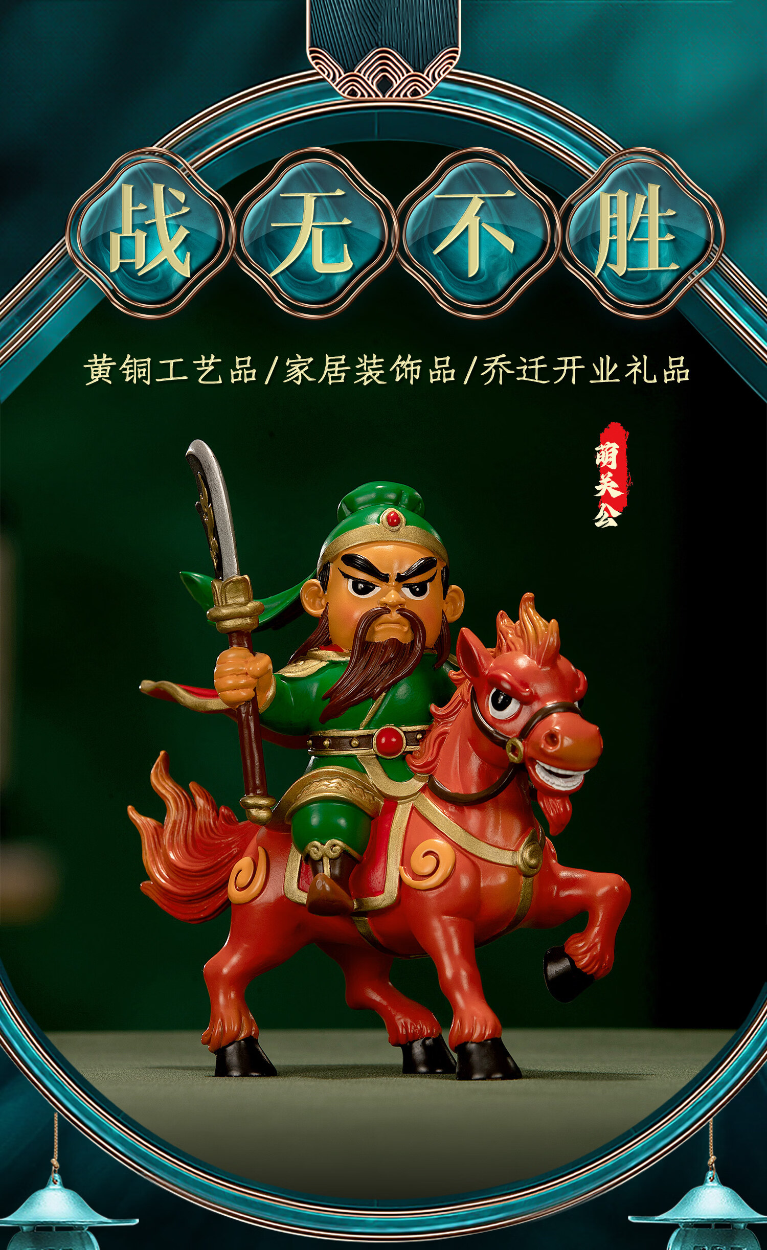 大铜世家黄铜战无不胜萌关公摆件国潮家居客厅装饰办公室桌面关羽创意礼品 (顺丰包邮)TZF战无不胜(萌关公) 无规格