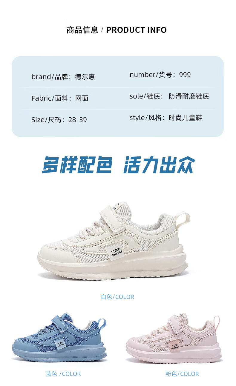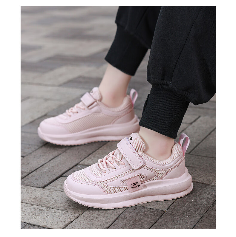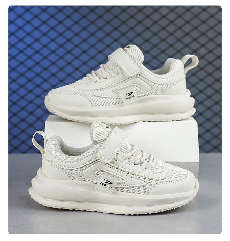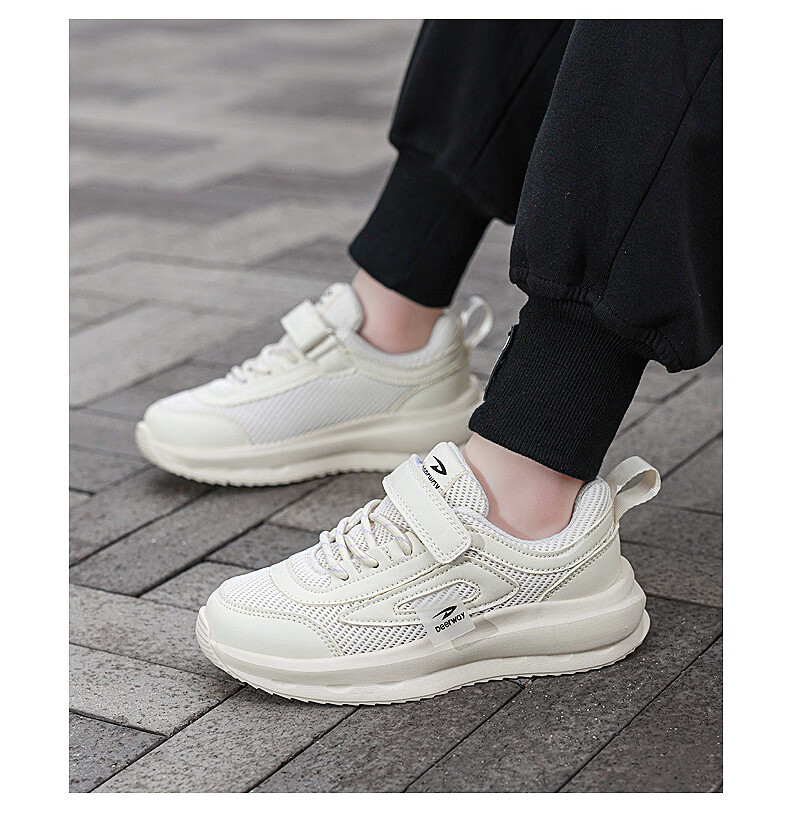 德尔惠男童跑步鞋春秋款儿童运动鞋子魔术贴网面透气校园户外女童休闲鞋 D999白色【双网】 28 内长17.8/脚16.8