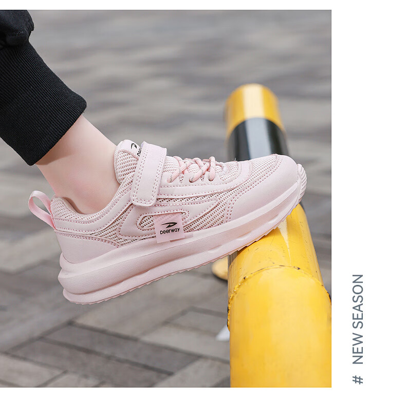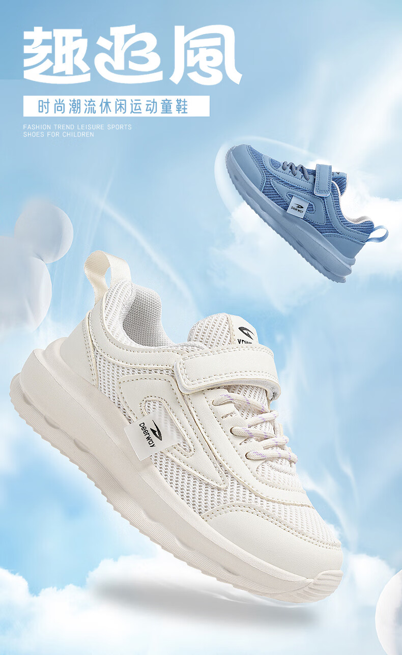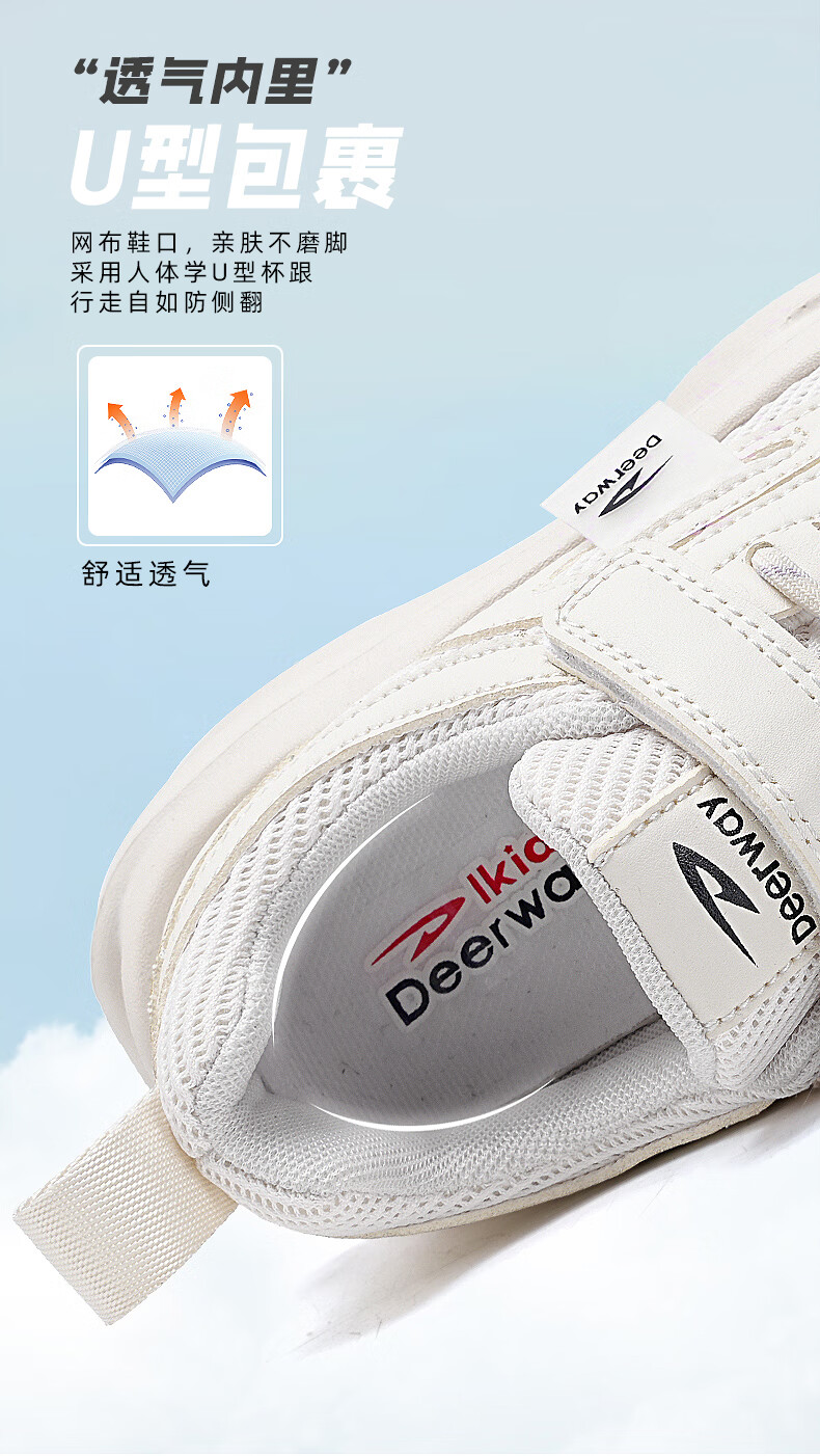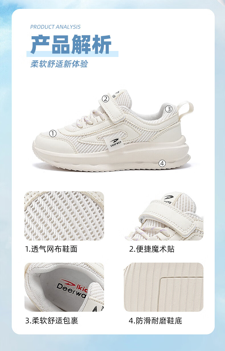 德尔惠男童跑步鞋春秋款儿童运动鞋子魔术贴网面透气校园户外女童休闲鞋 D999白色【双网】 28 内长17.8/脚16.8