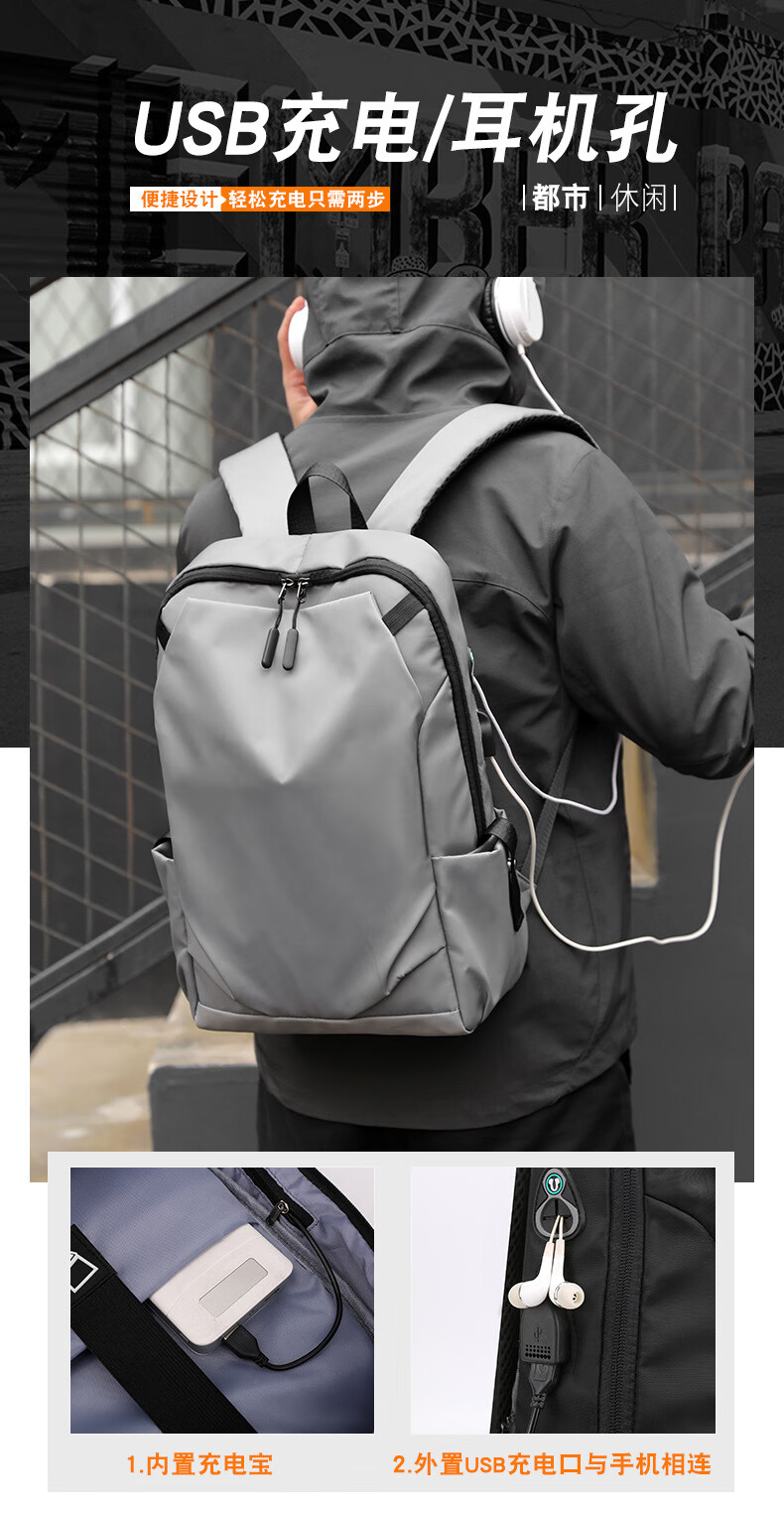 欧遥男士双肩包商务通勤大容量出差旅行大学生电脑包初高中生书包背包 灰色
