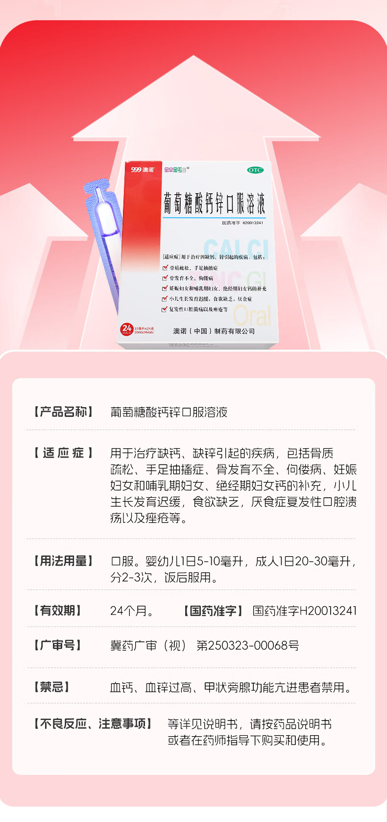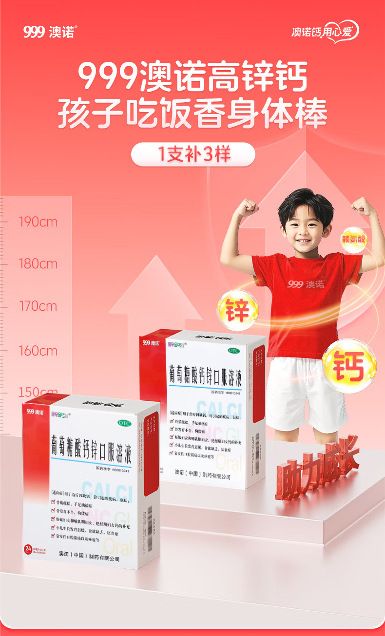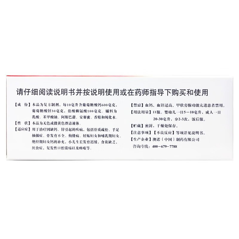 [金辛金丐特]葡萄糖酸钙锌口服溶液 10ml*30支 2盒装 999澳诺葡萄糖酸钙酸锌口服液