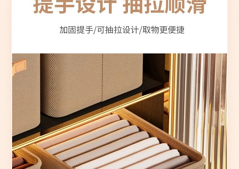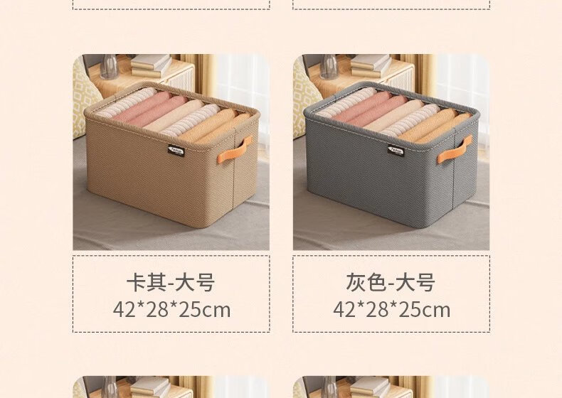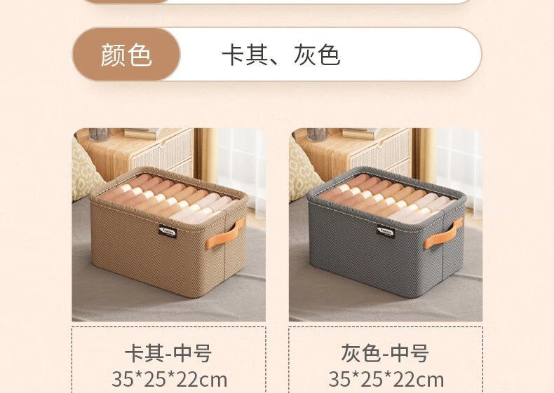 【现发】家用衣柜分层整理盒放衣物布艺折叠储物筐衣服收纳箱 灰色中号1个