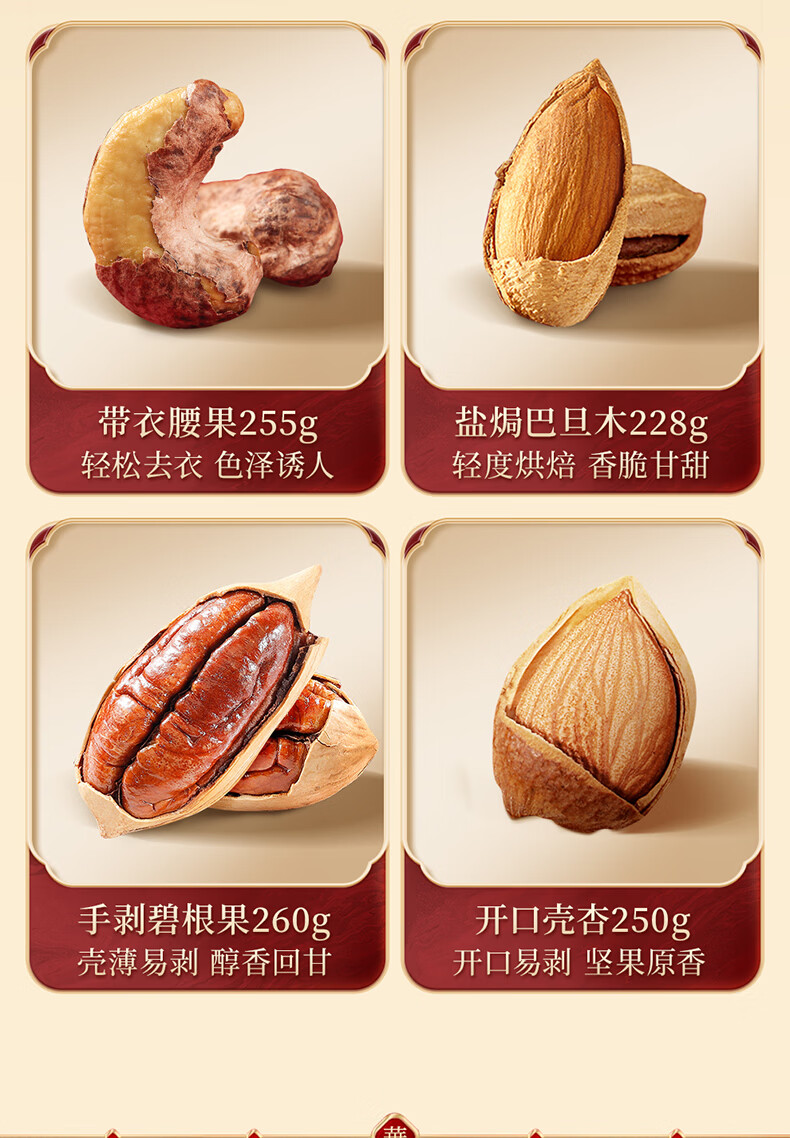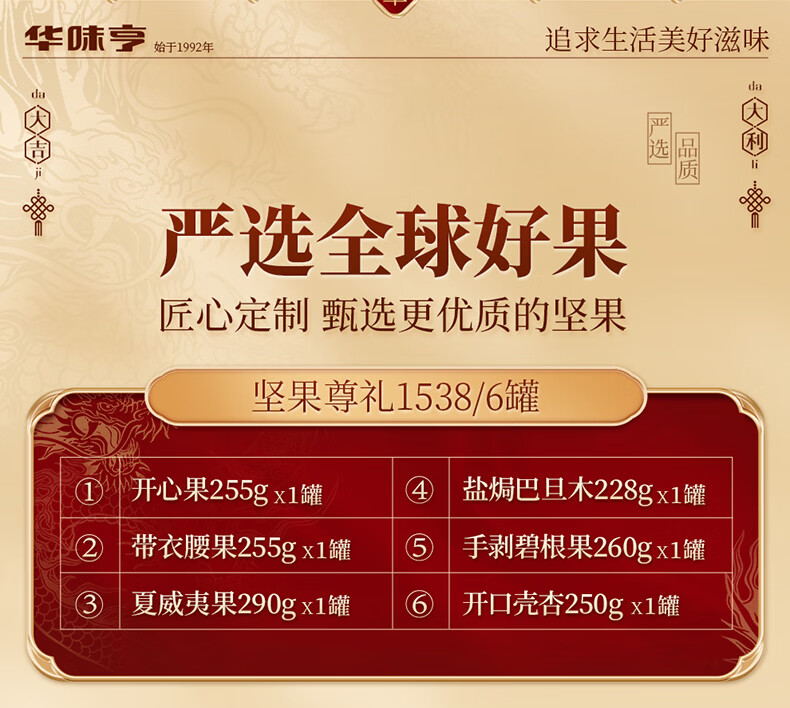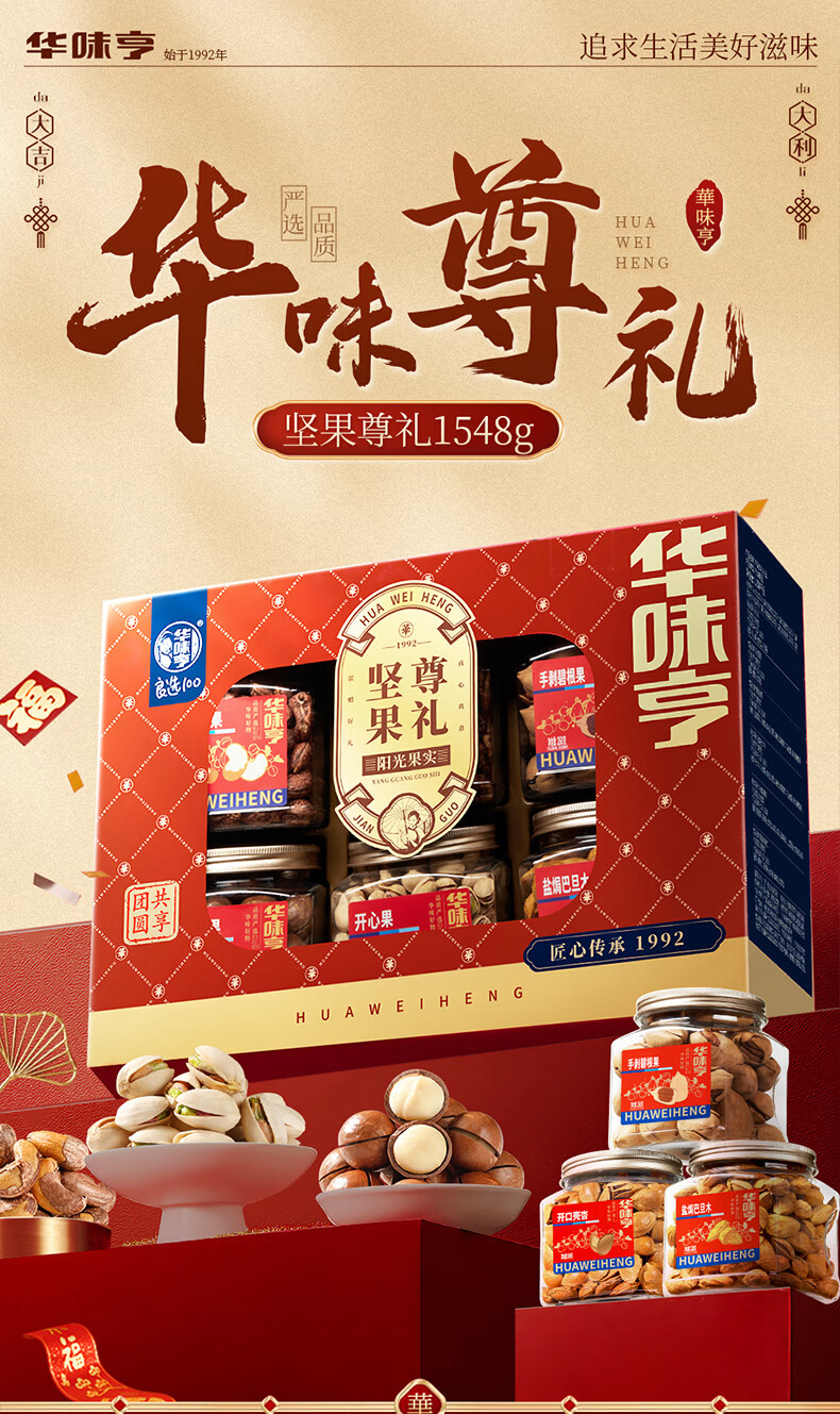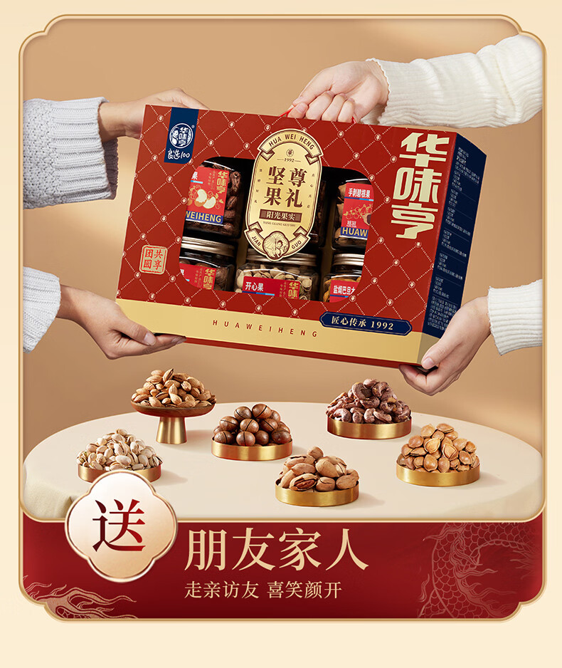 华味亨坚果礼遇坚果礼盒1110g/8罐 纯坚果团购送礼开心果核桃休闲零食 精美罐装坚果礼盒1110g