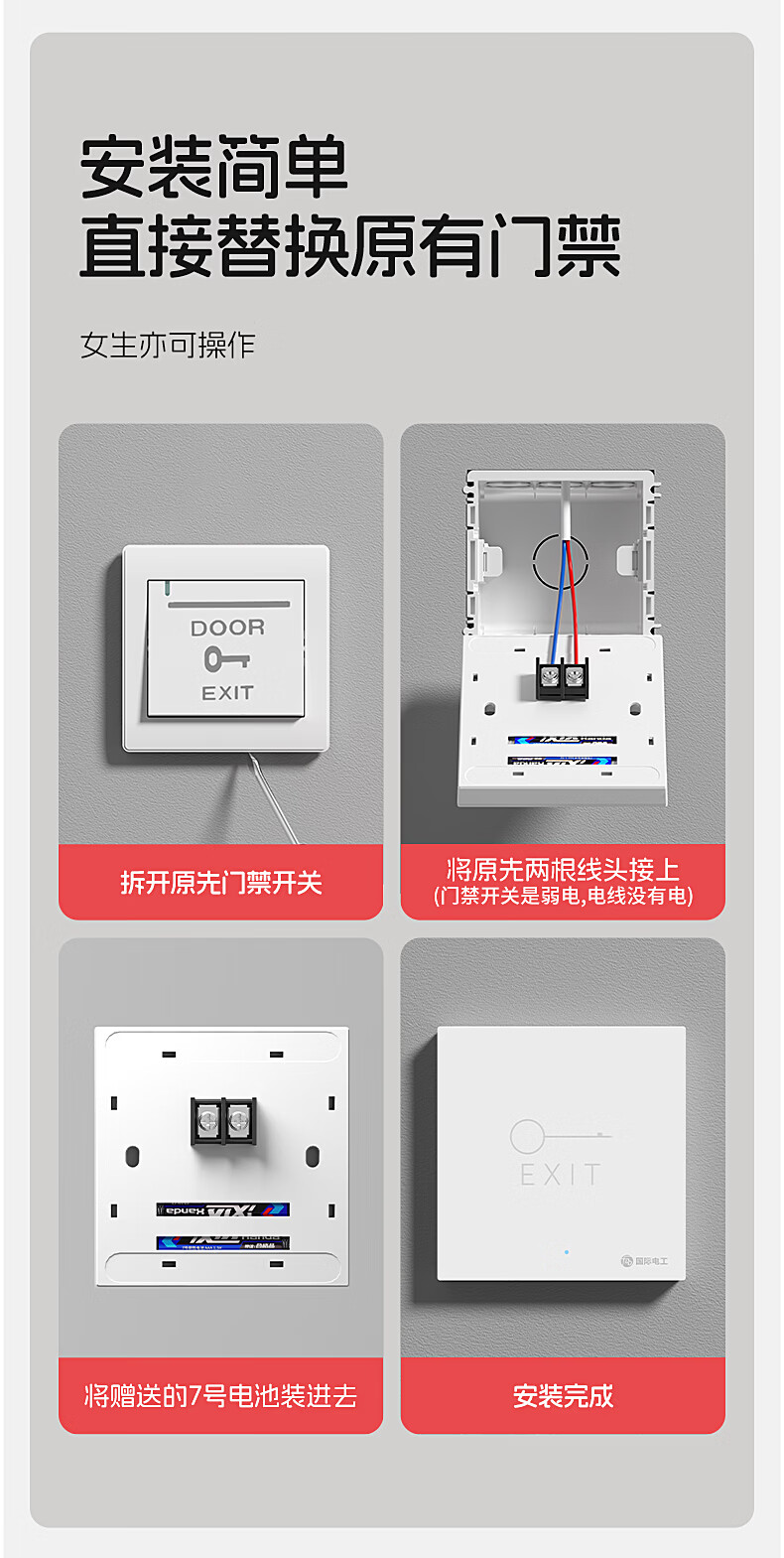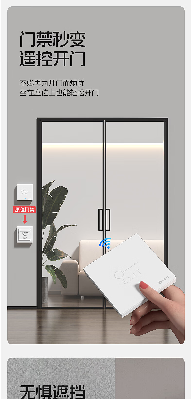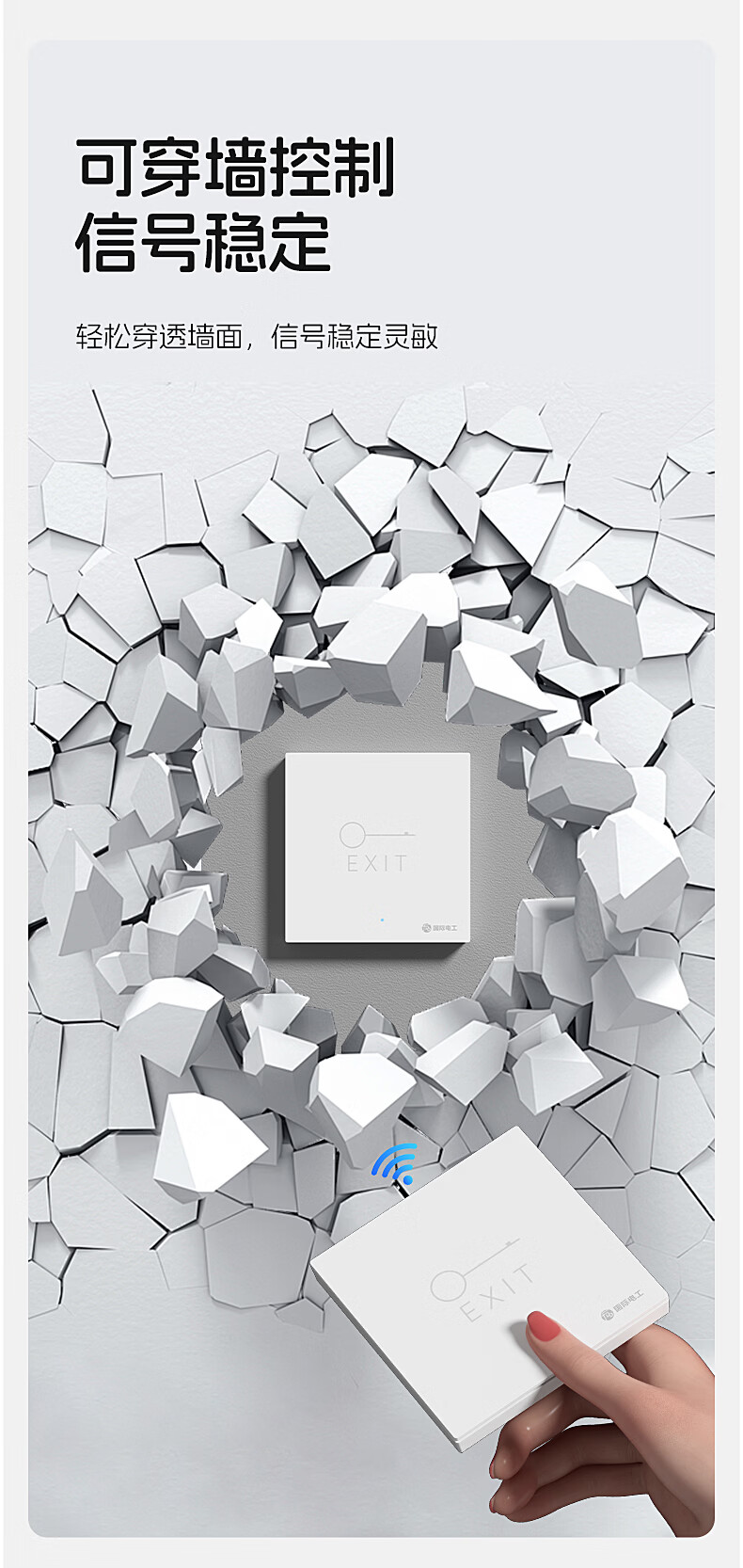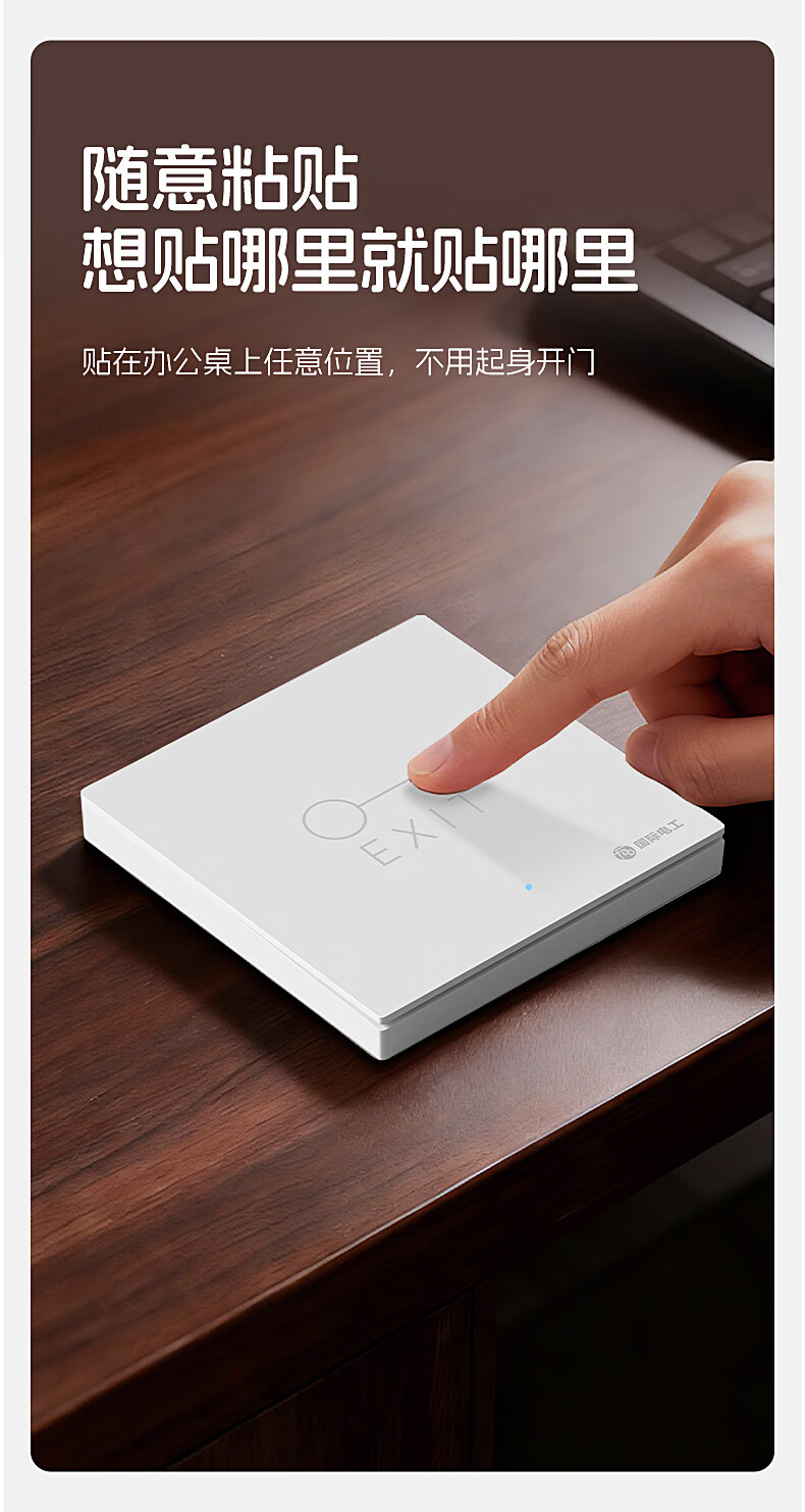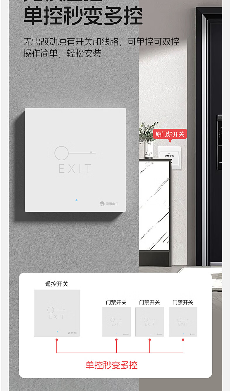 国际电工办公室门禁遥控无线遥控手动厂房单元门小区门禁遥控开门开关按钮 白色(1个门禁开关+1个随意贴遥控)暗装