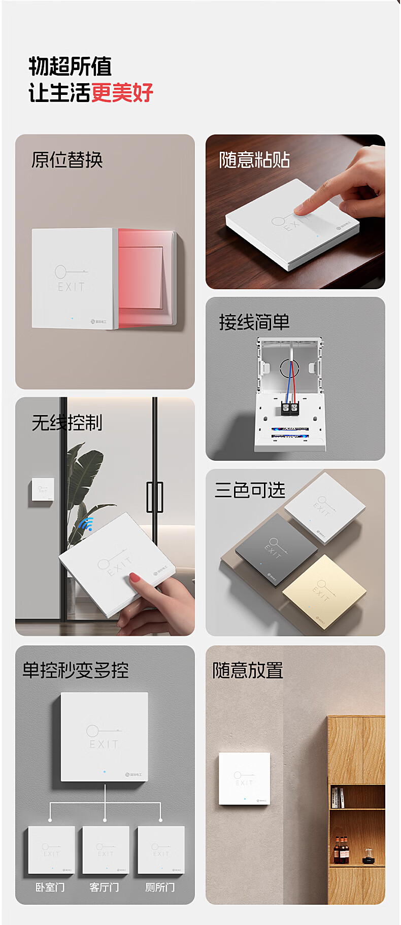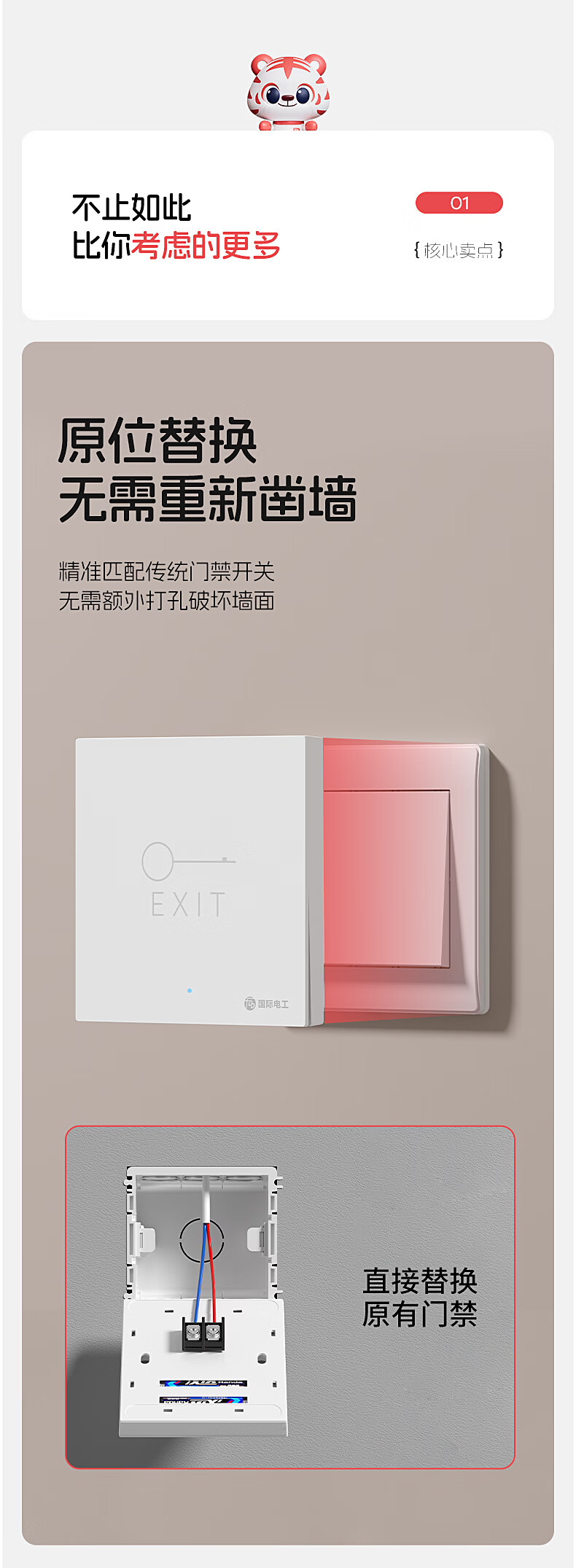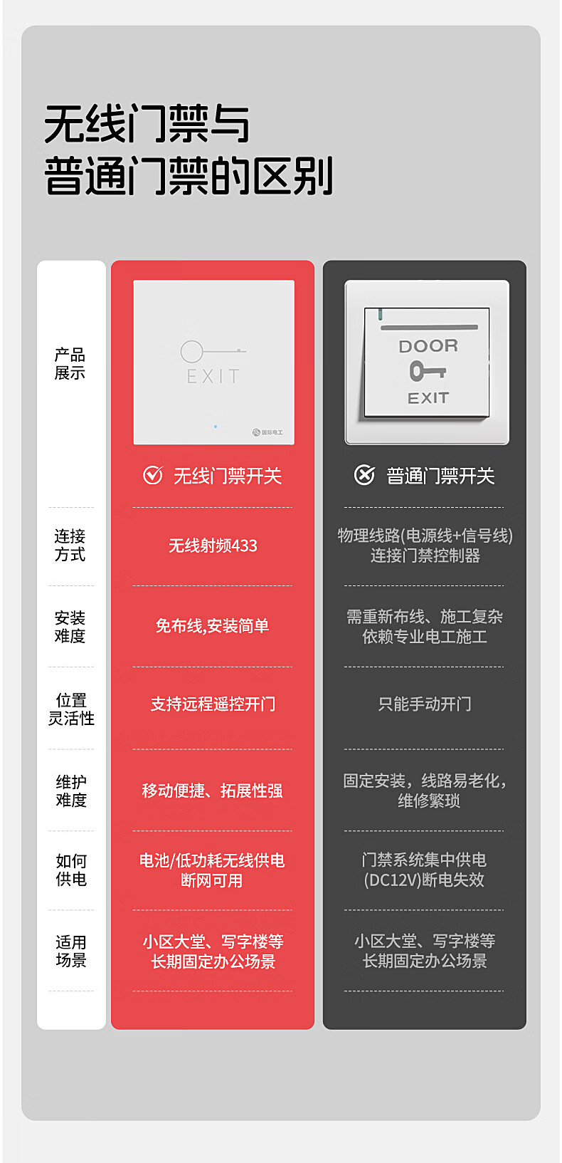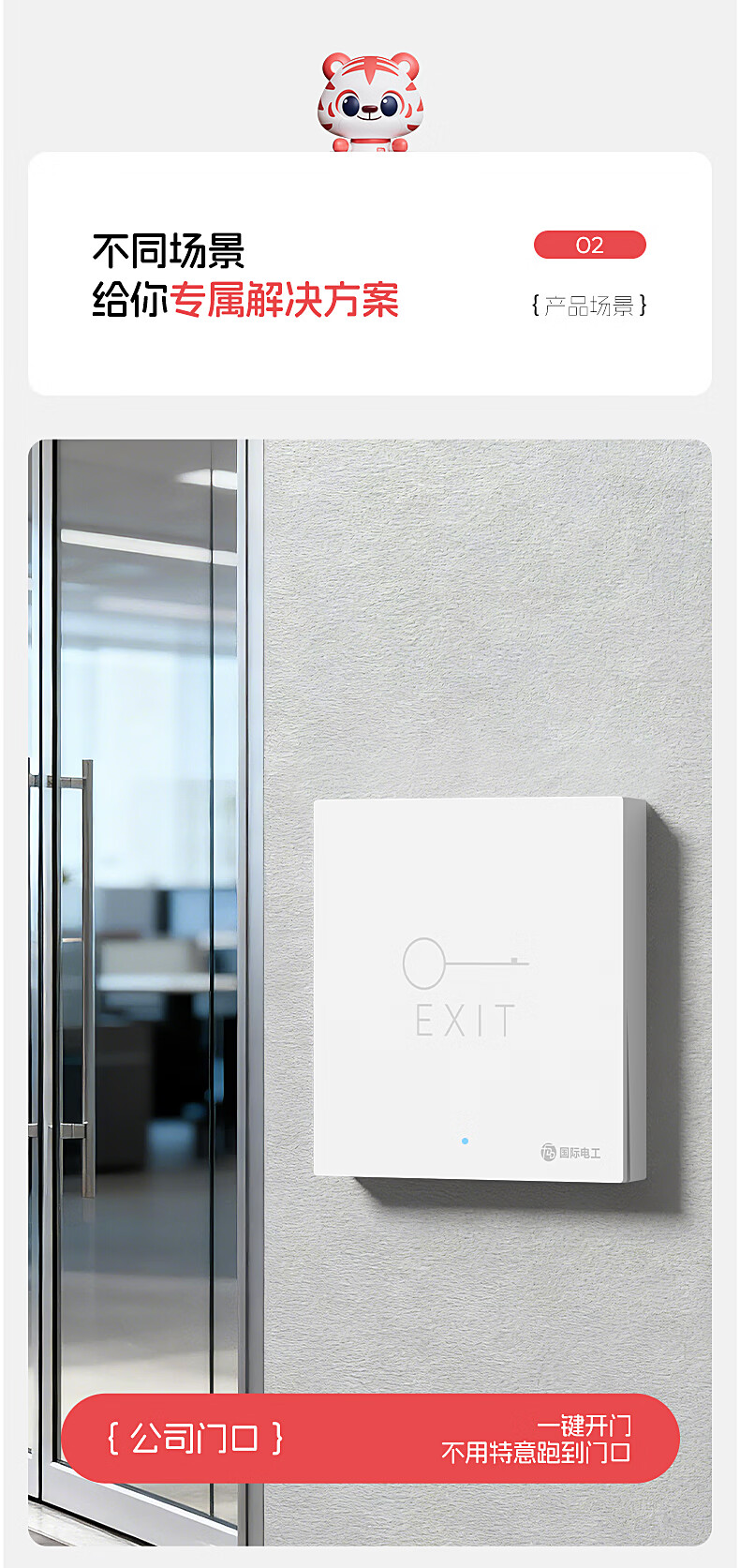 国际电工办公室门禁遥控无线遥控手动厂房单元门小区门禁遥控开门开关按钮 白色(1个门禁开关+1个随意贴遥控)暗装