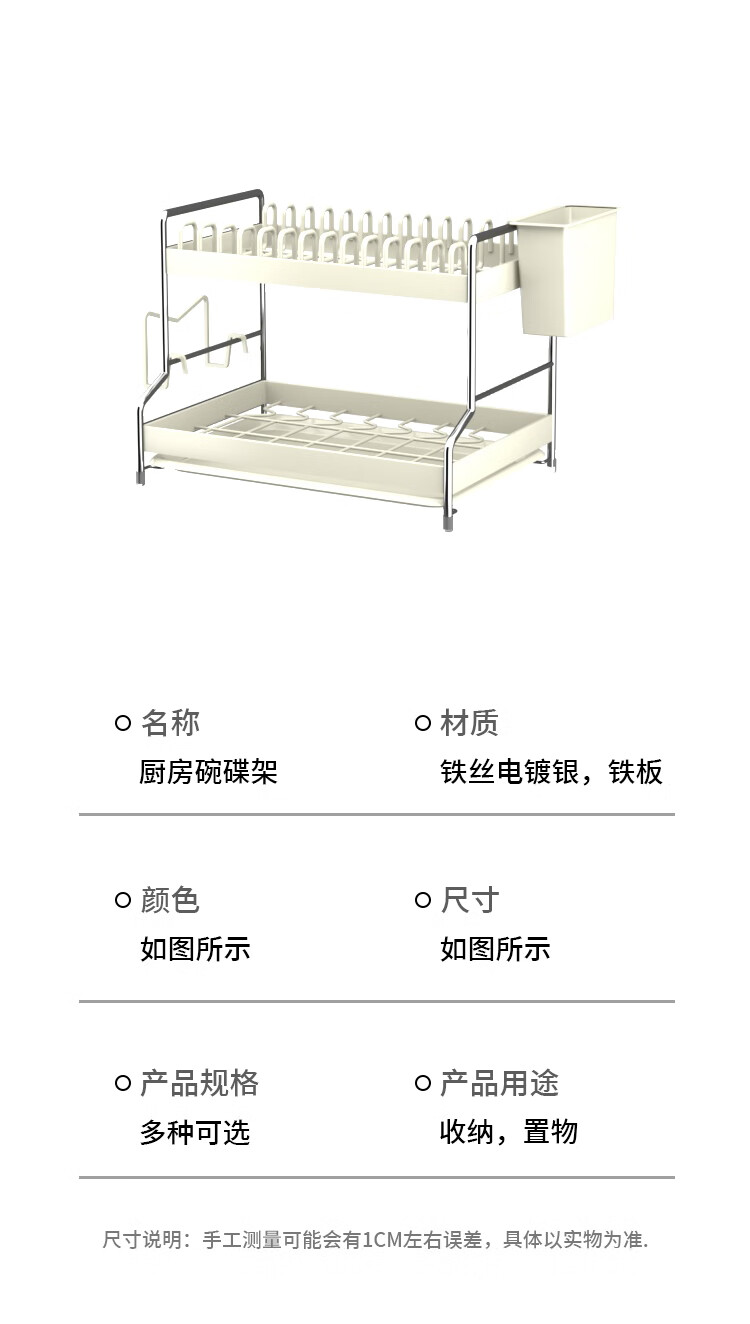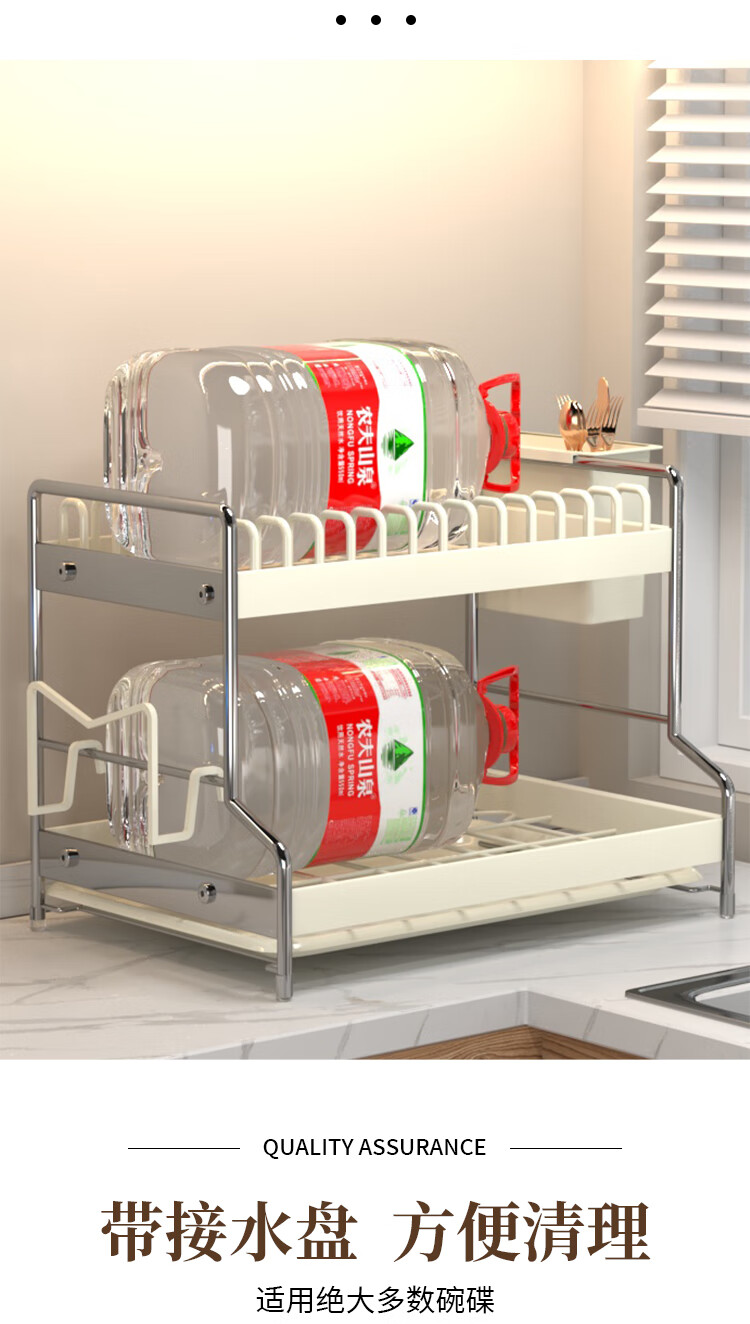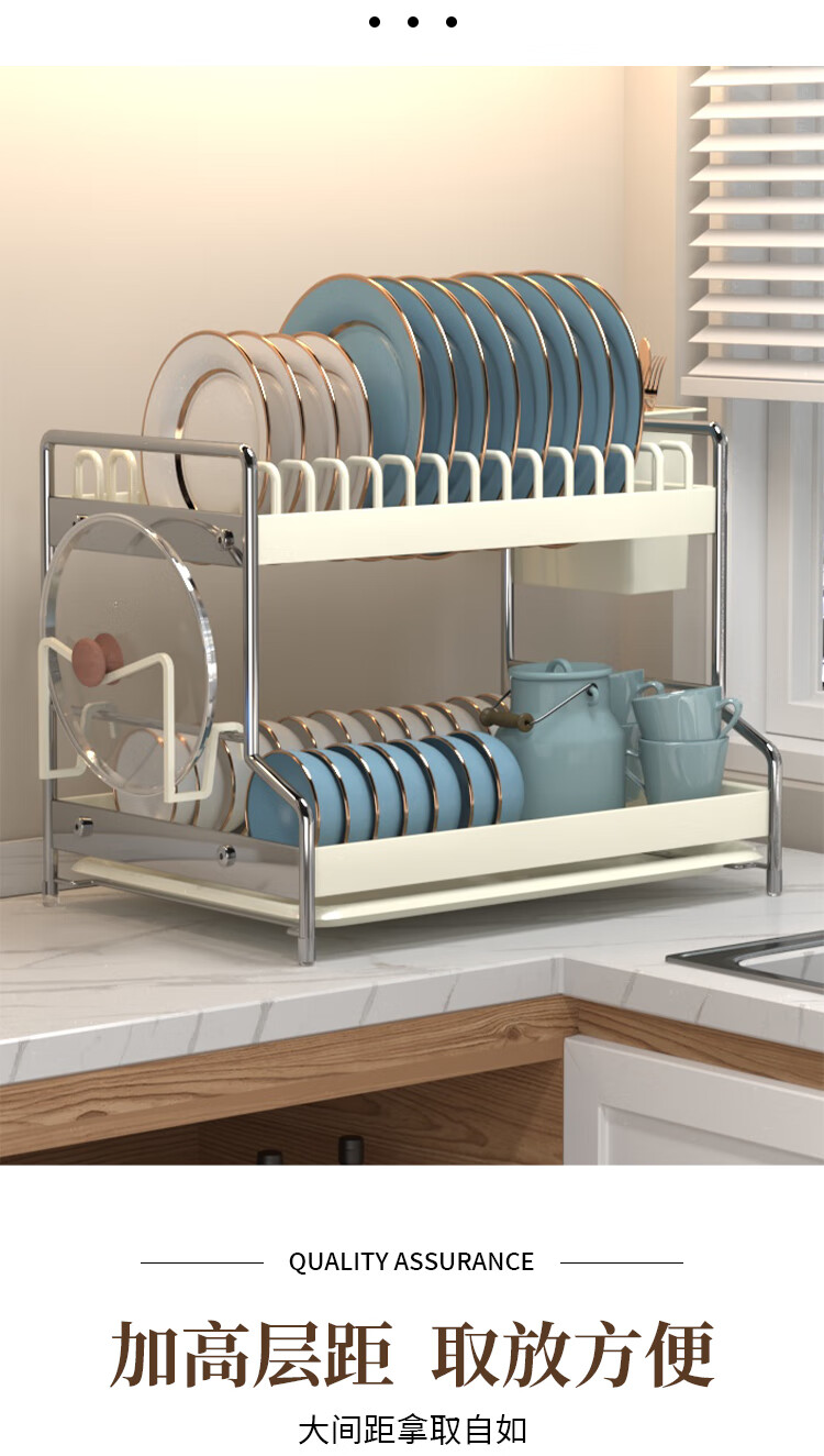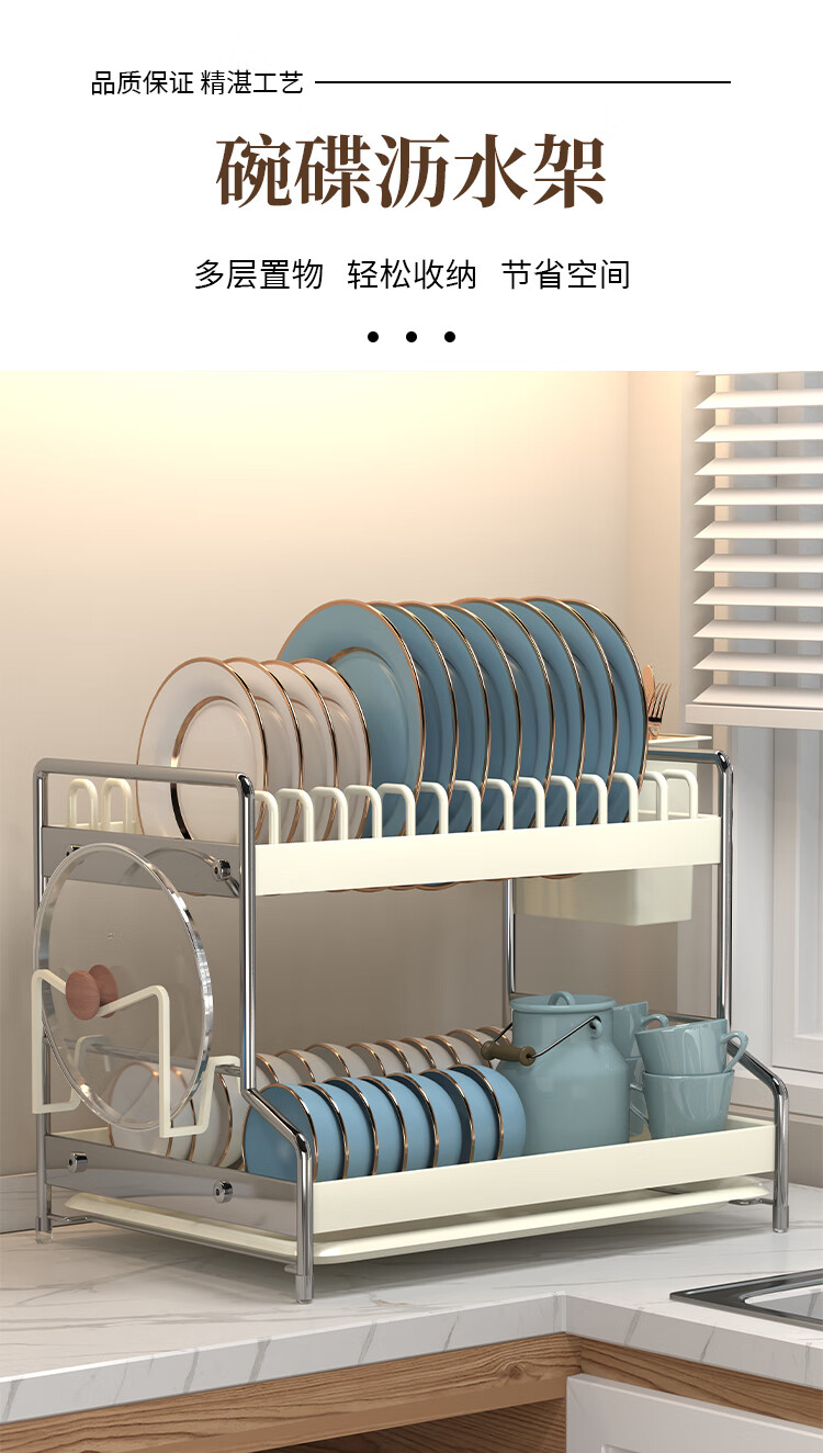 馨婺家碗盘置物架厨房台置式碗筷收纳架子放碗具沥水架台上晾碗碟架一体 两层-长30cm【砧板架+筷筒】可沥水