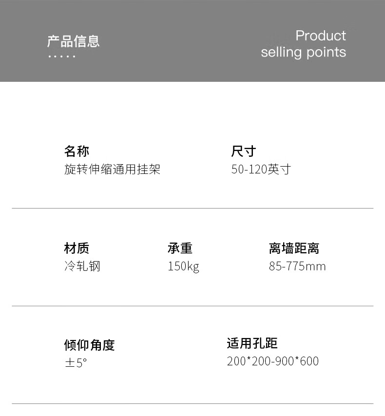ProPre 50-120英寸电视挂架电视壁挂架电视支架旋转伸缩架子适用于TCL华为智慧屏海信创维长虹等电视通用
