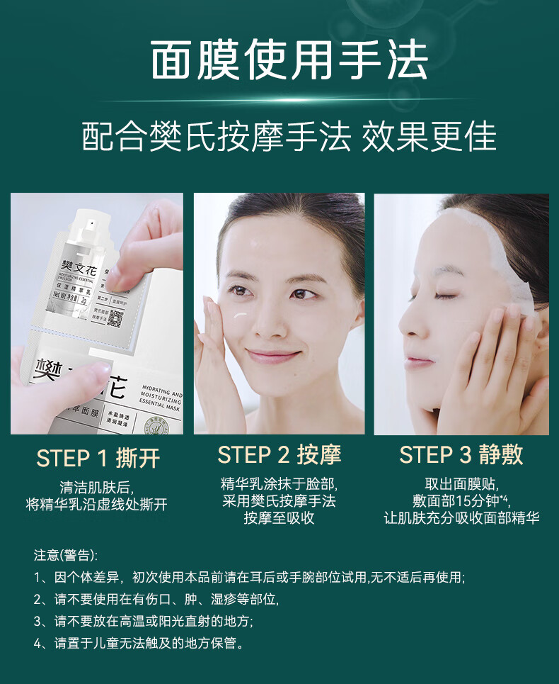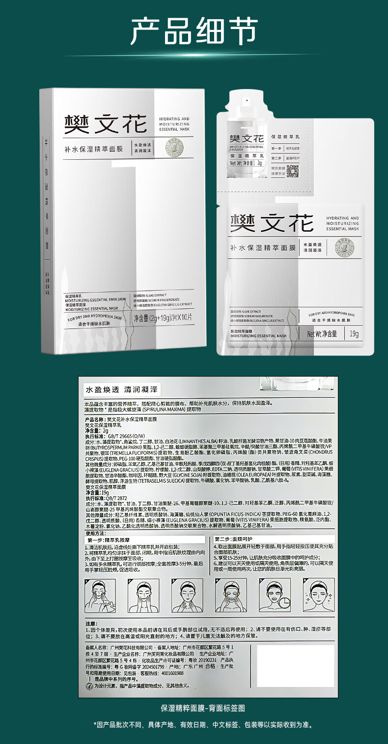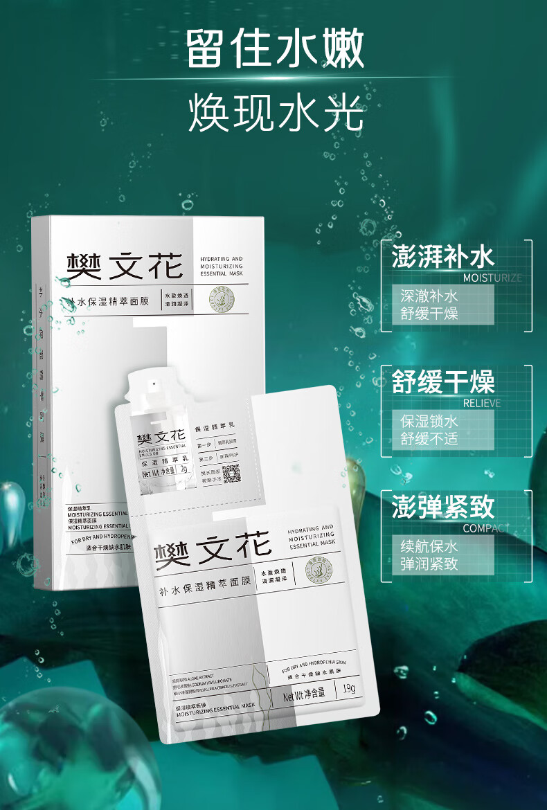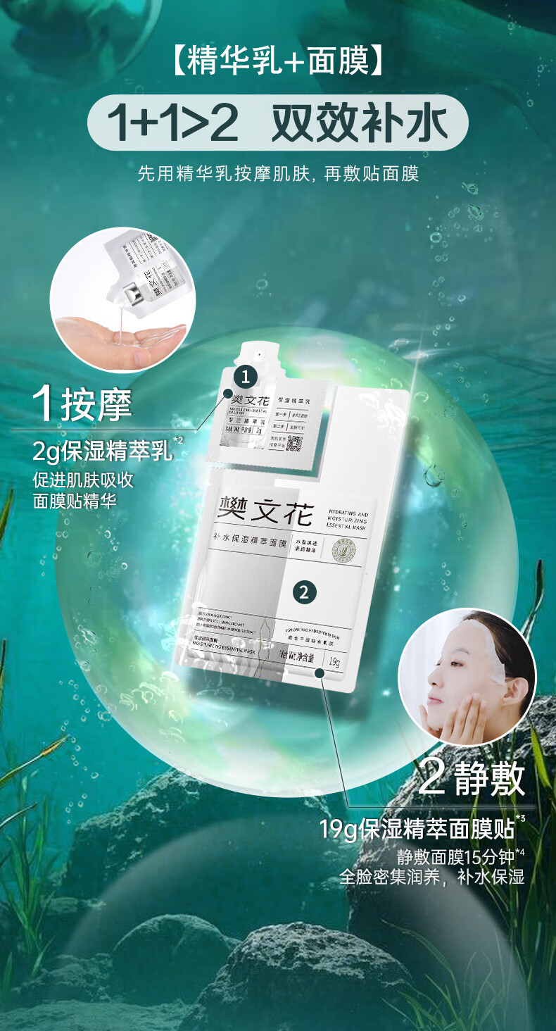 樊文花1号补水保湿精萃面膜舒缓紧致肌肤贴片式保湿面膜护肤新年礼物 10片装