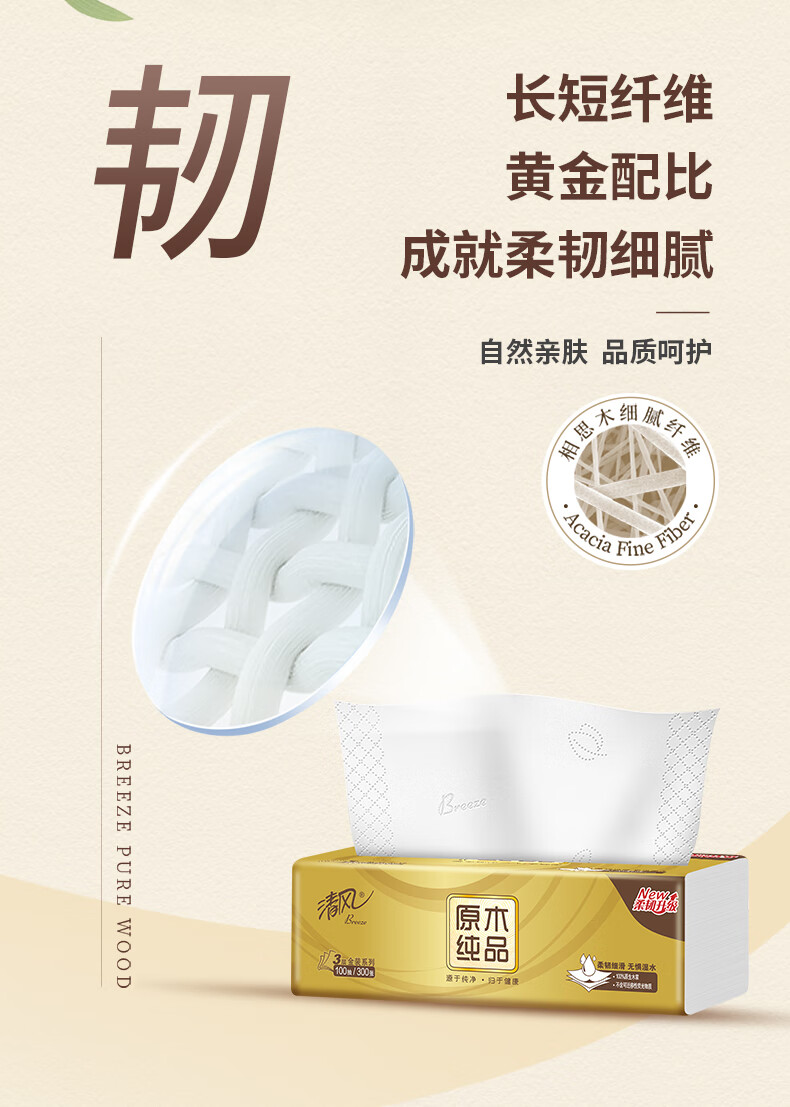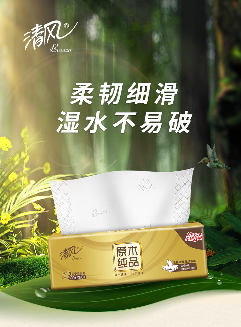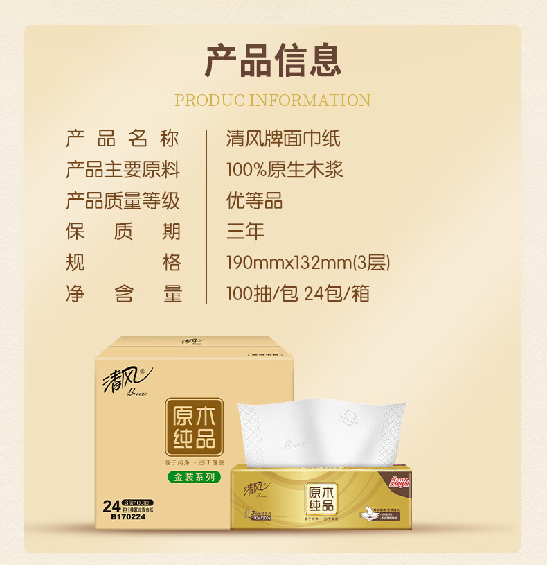 清风(APP)抽纸 金装3层100抽*24包S码 整箱纸巾 面巾纸 擦手家用软抽卫生纸