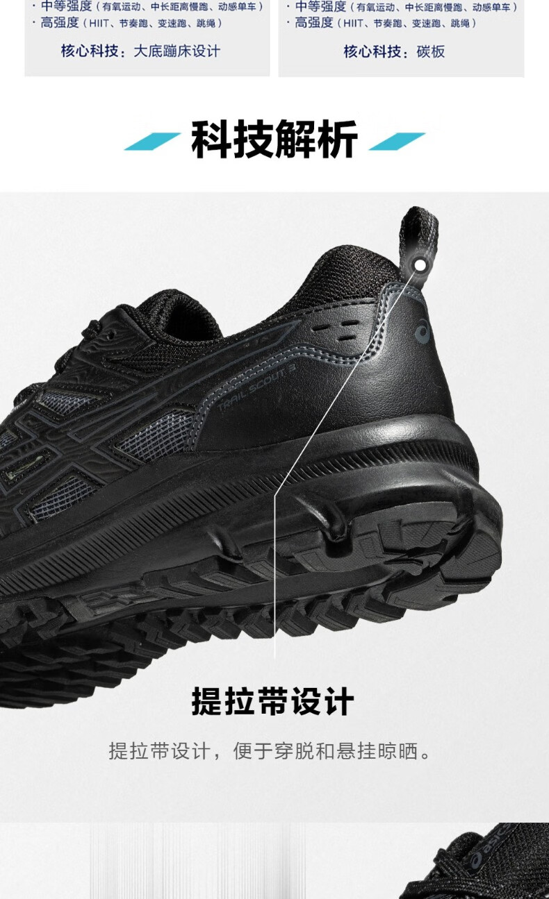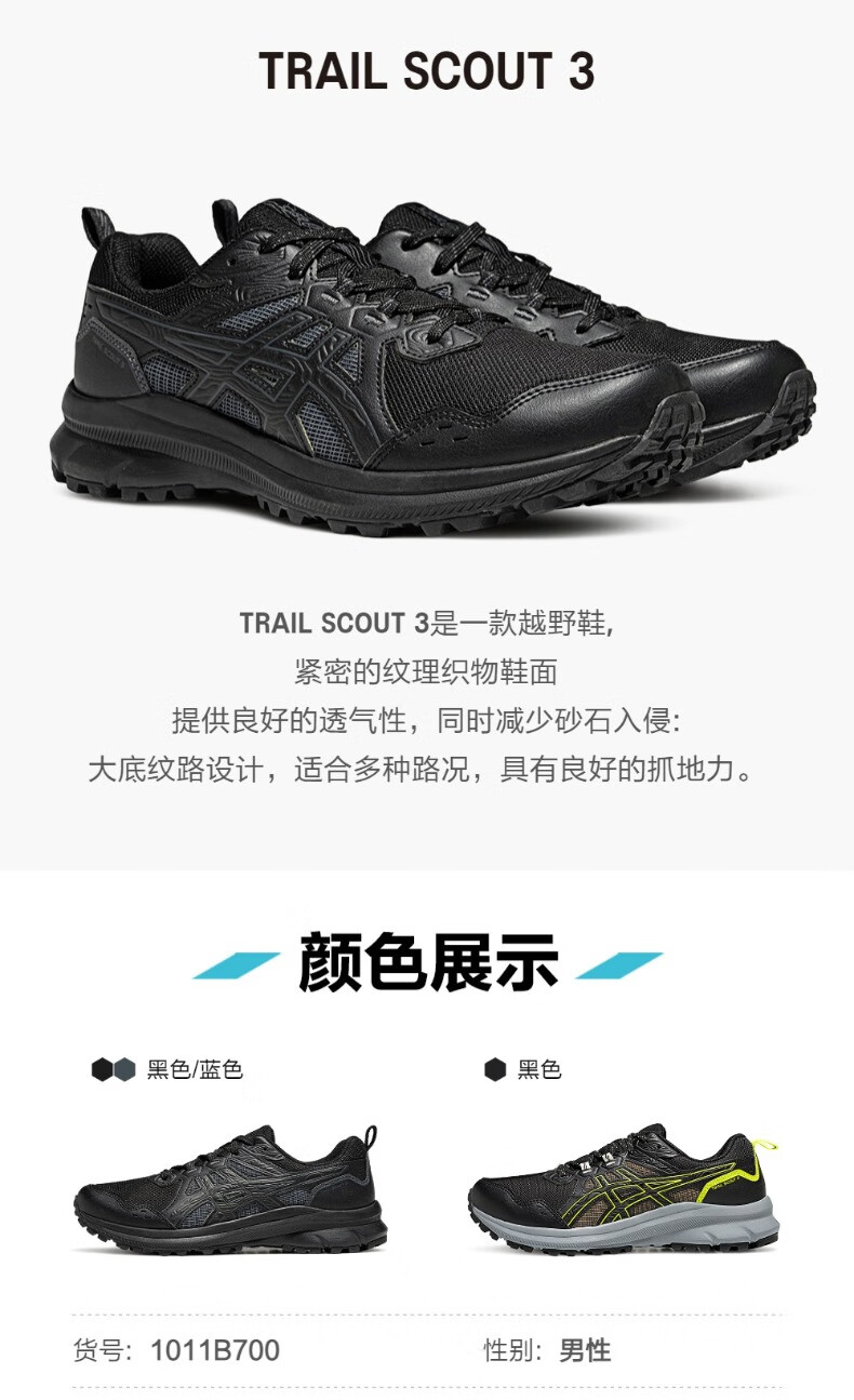 亚瑟士ASICS男鞋越野跑步鞋舒适运动鞋耐磨抓地跑鞋 TRAIL SCOUT 3 黑色/蓝色 39