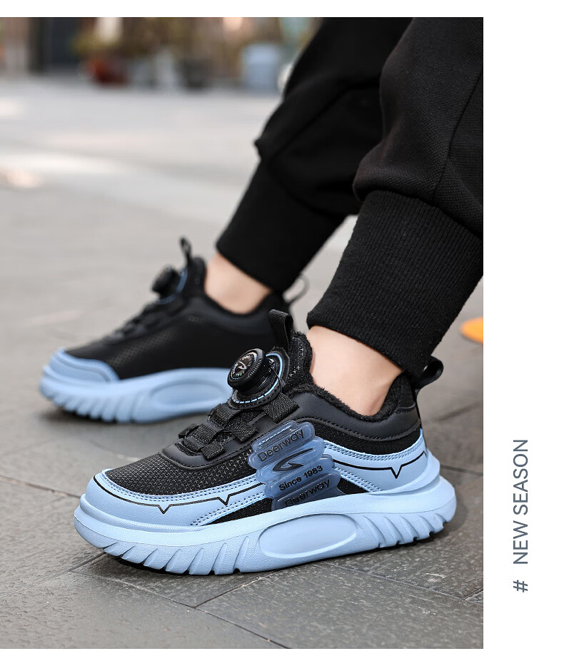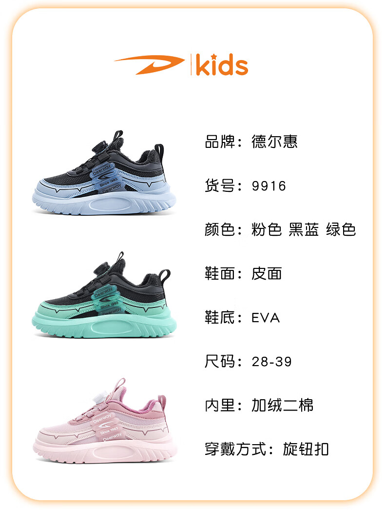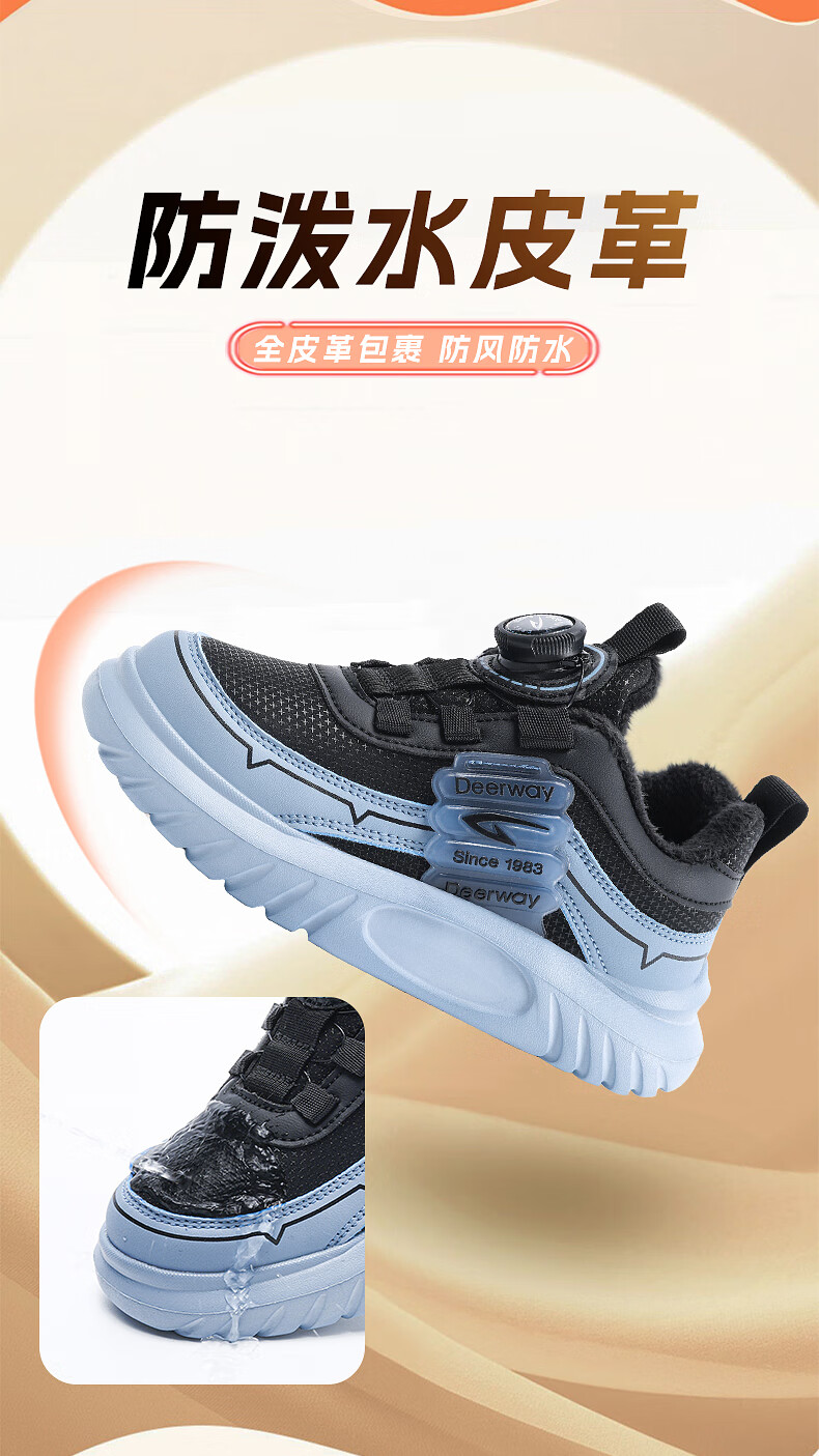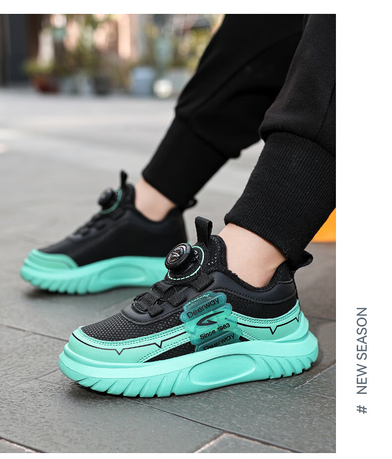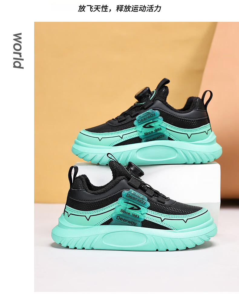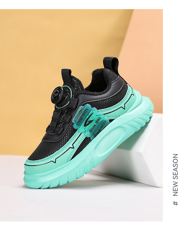 德尔惠儿童运动鞋男中大童2025年秋冬款女童跑步鞋子革面保暖板鞋二棉 D9916绿色【革面不加绒】 33 内长21.2/脚20.2