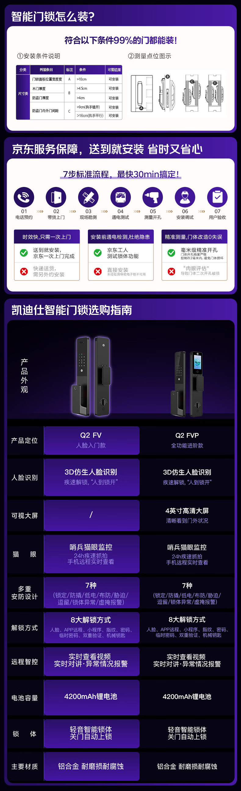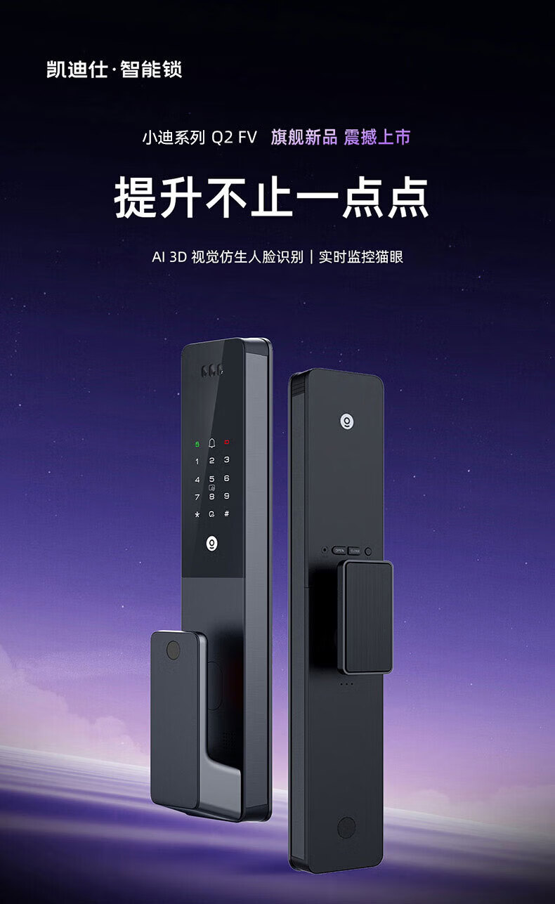 凯迪仕(KAADAS)智能门锁 人脸识别猫眼监控摄像指纹 Q2 FV