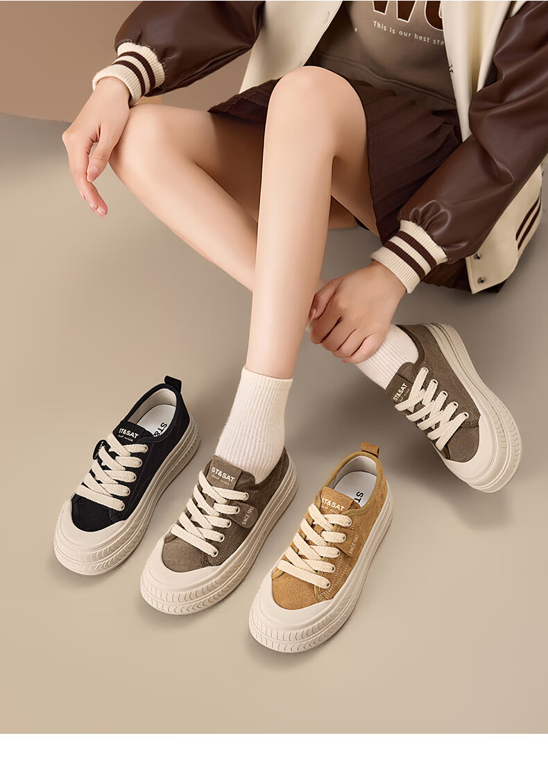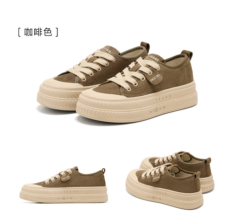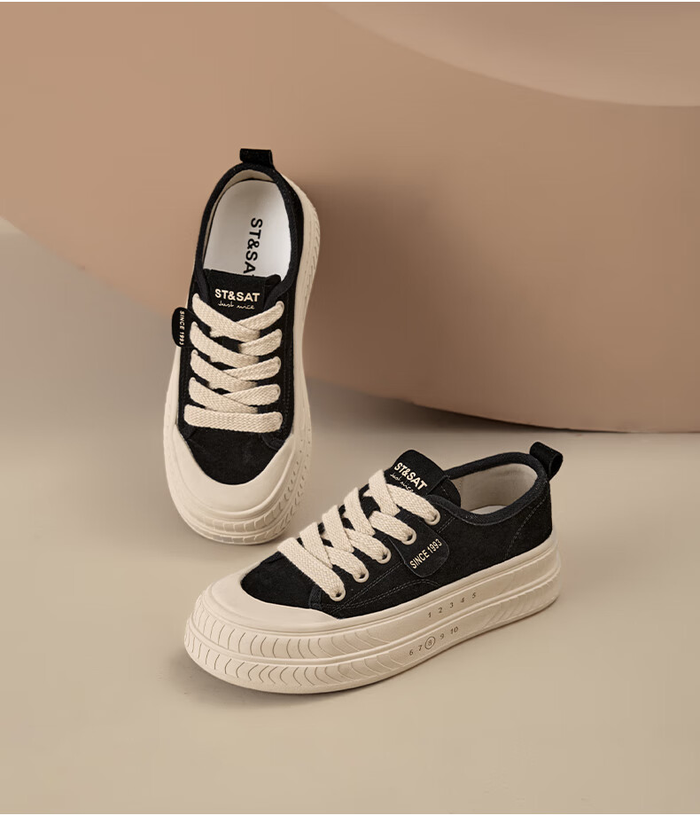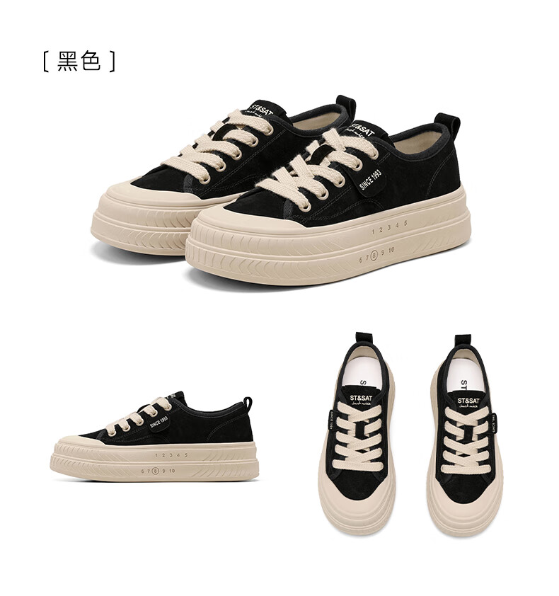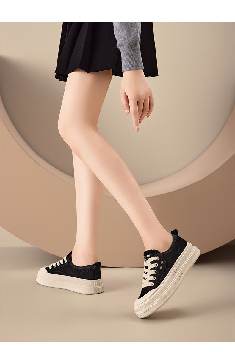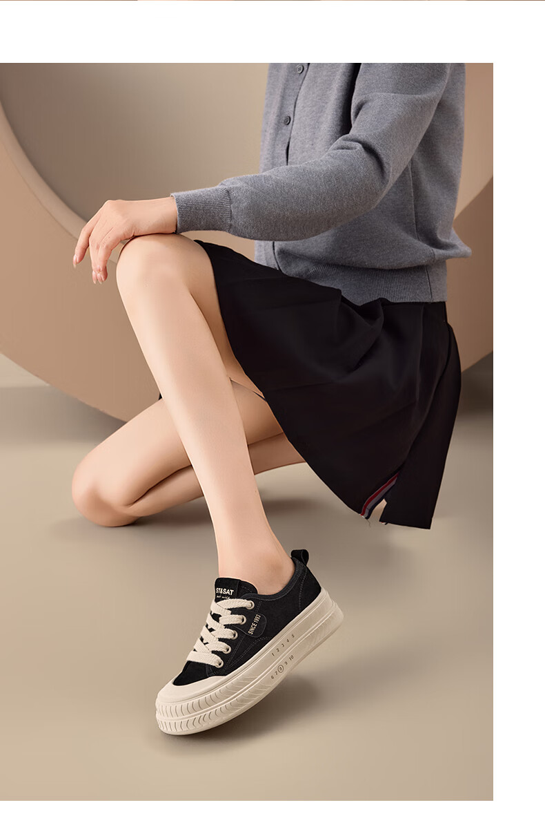 星期六厚底板鞋女2025秋冬新款百搭休闲复古帆布鞋软底不累脚女鞋 黑色 35