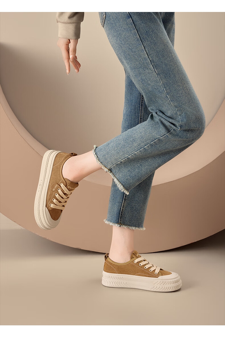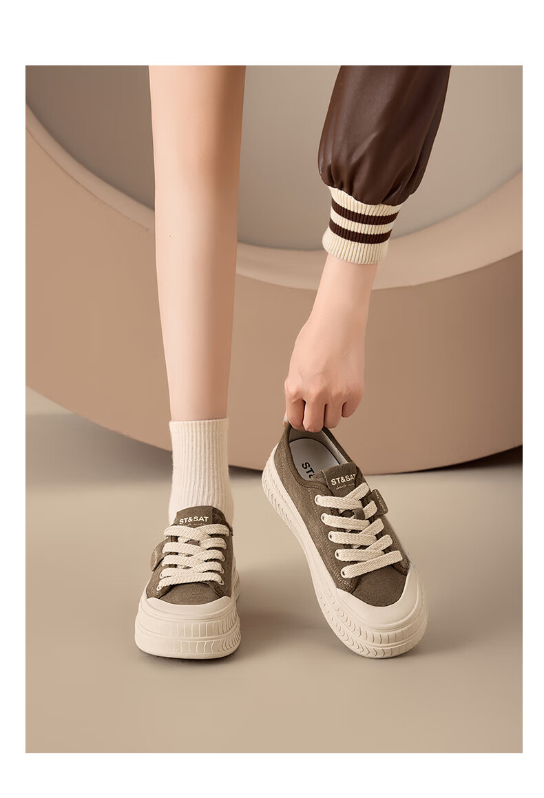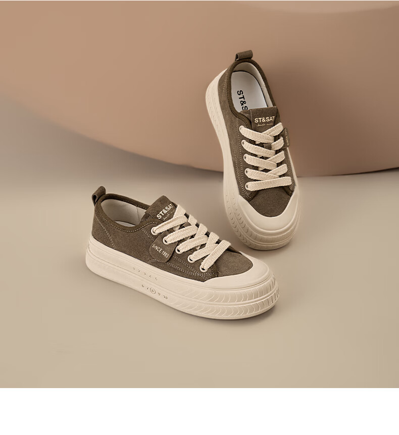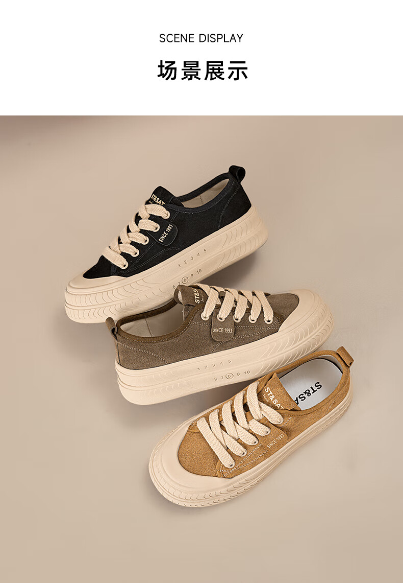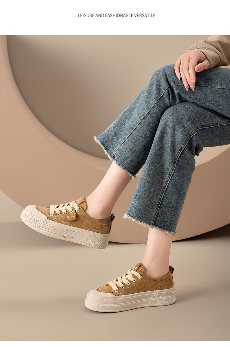 星期六厚底板鞋女2025秋冬新款百搭休闲复古帆布鞋软底不累脚女鞋 黑色 35