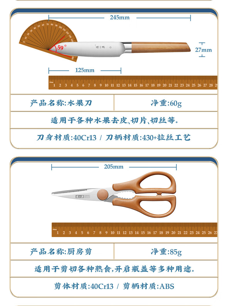张小泉和煦四件套菜刀组合套装 家用菜刀切片刀小厨刀水果刀剪刀