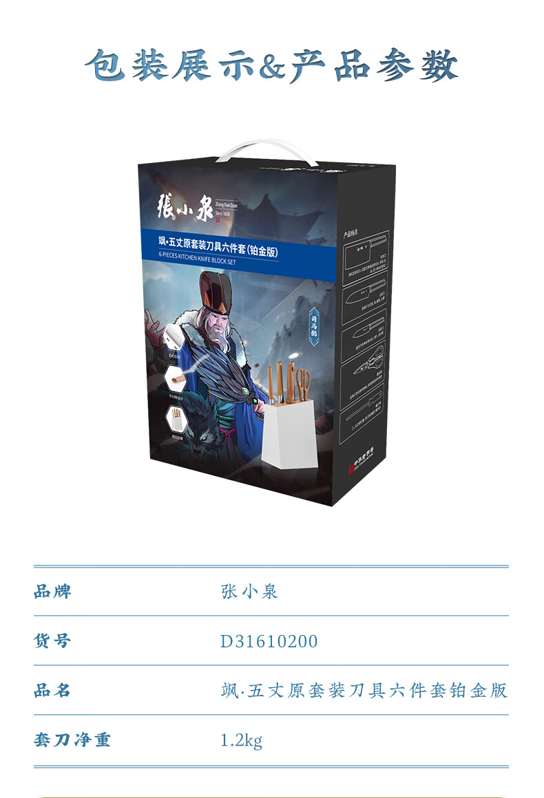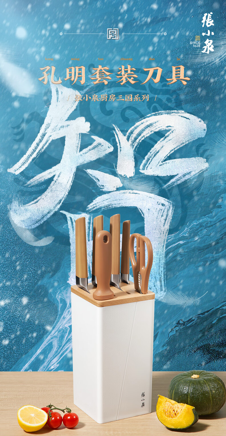 张小泉 刀具套装 智系列不锈钢家用套刀切片刀厨房刀菜刀套装 五丈原(铂金版)- 6件套