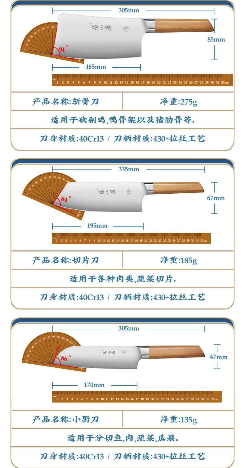 张小泉 刀具 单锋系列家用不锈钢菜刀 切菜刀 片肉刀 厨用刀具 斩骨刀