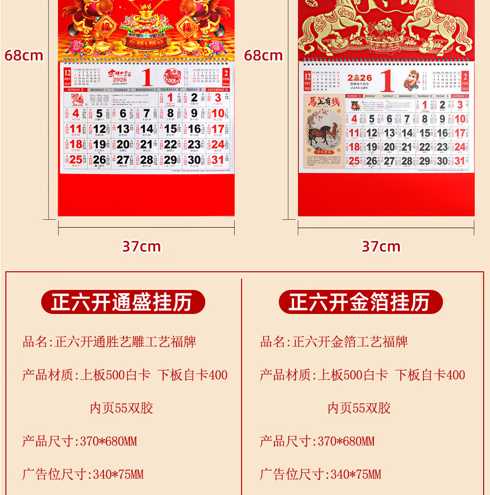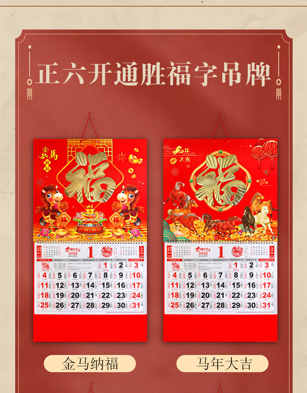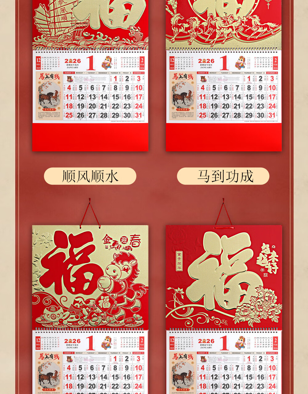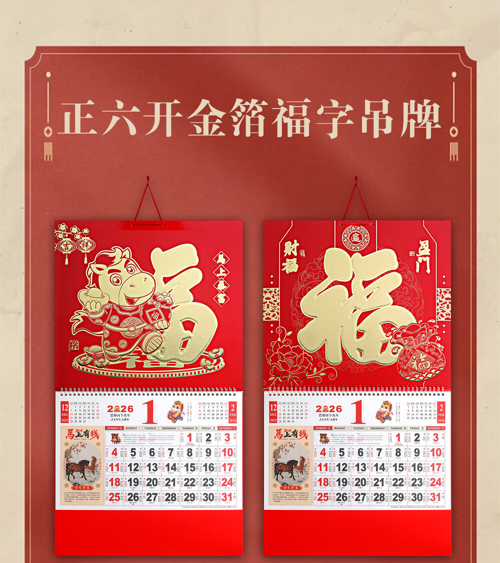 少年伴挂历 2026年马年新年礼物年货礼品家用挂墙式黄历正六开吊历手撕日历礼品 马到成功7805