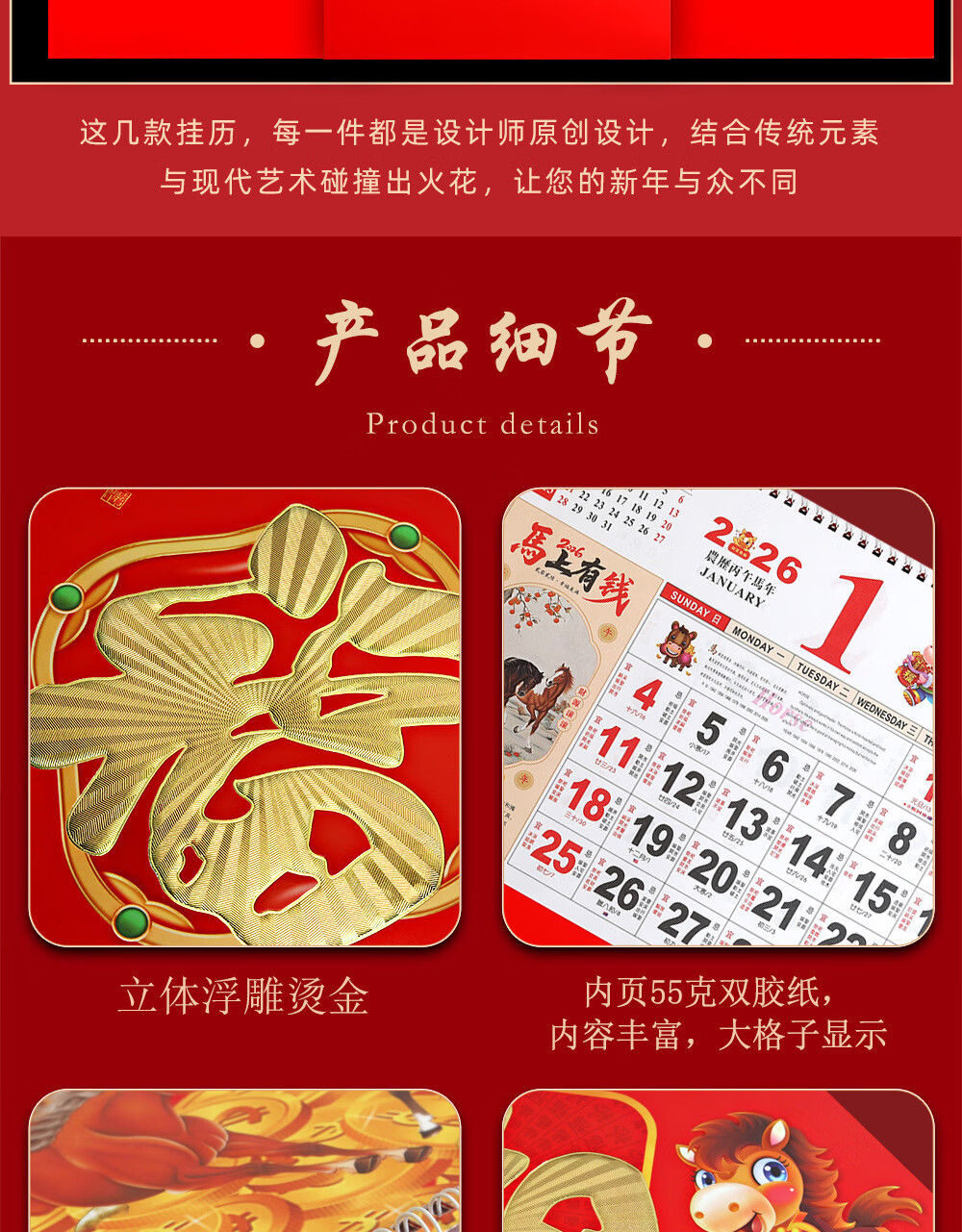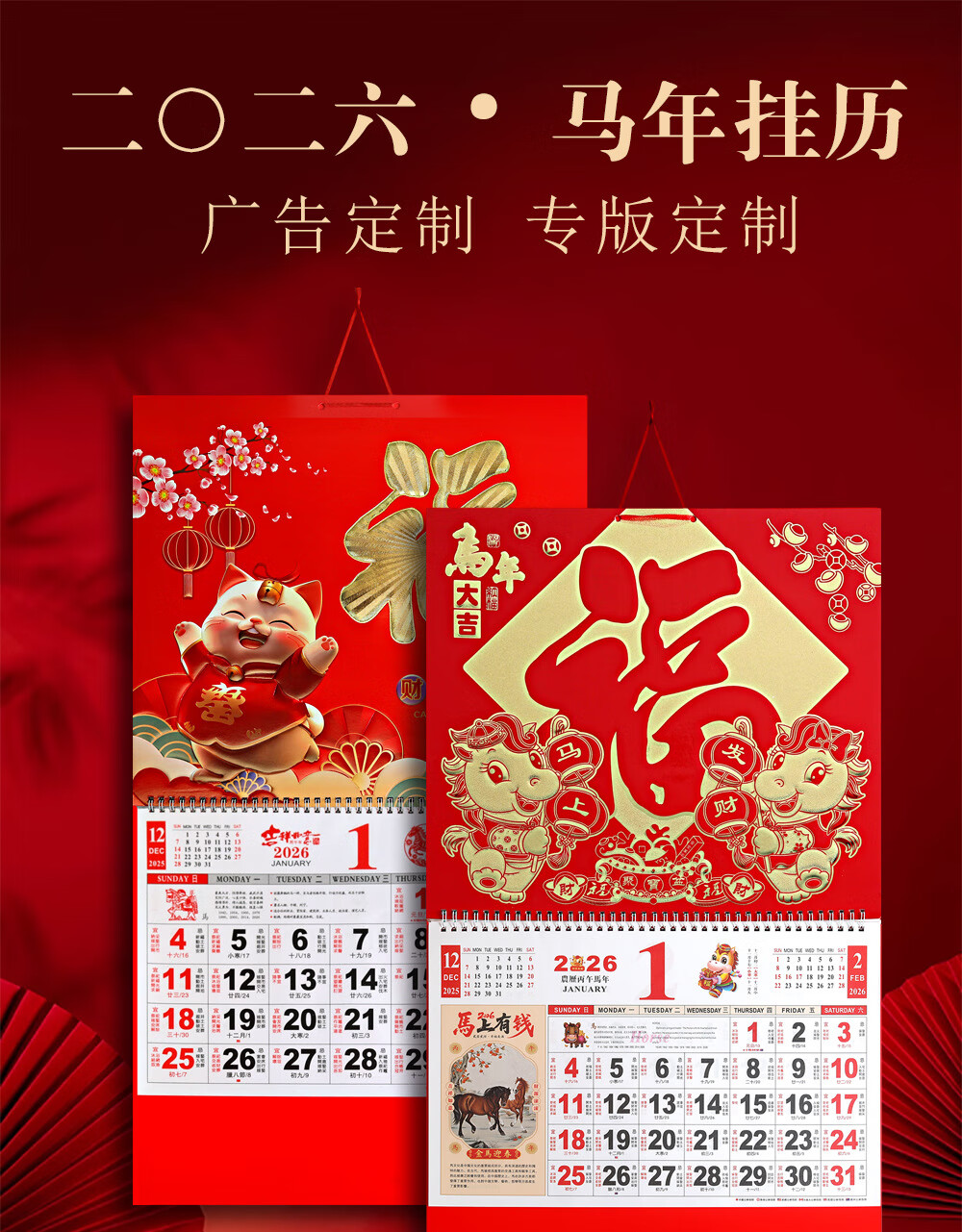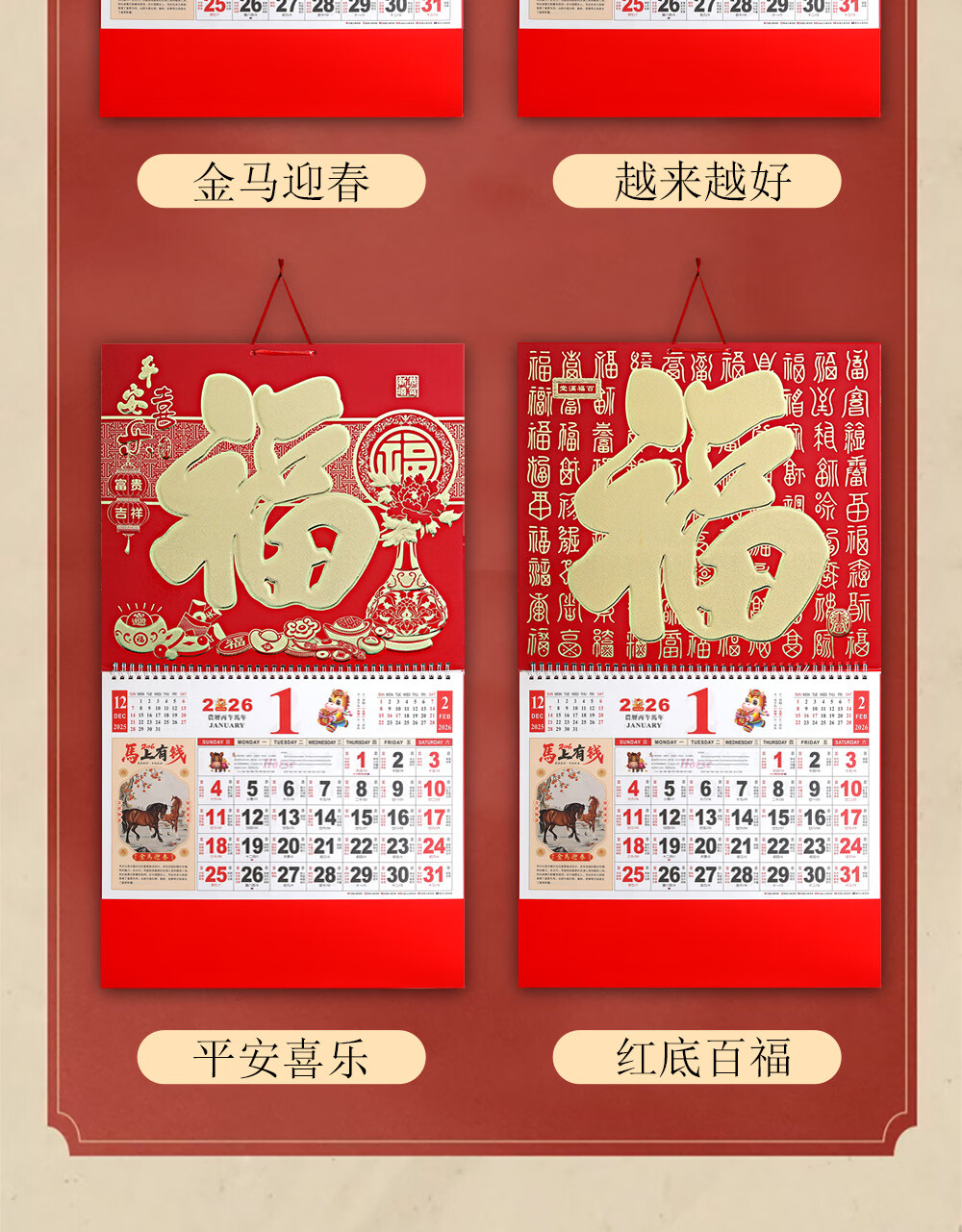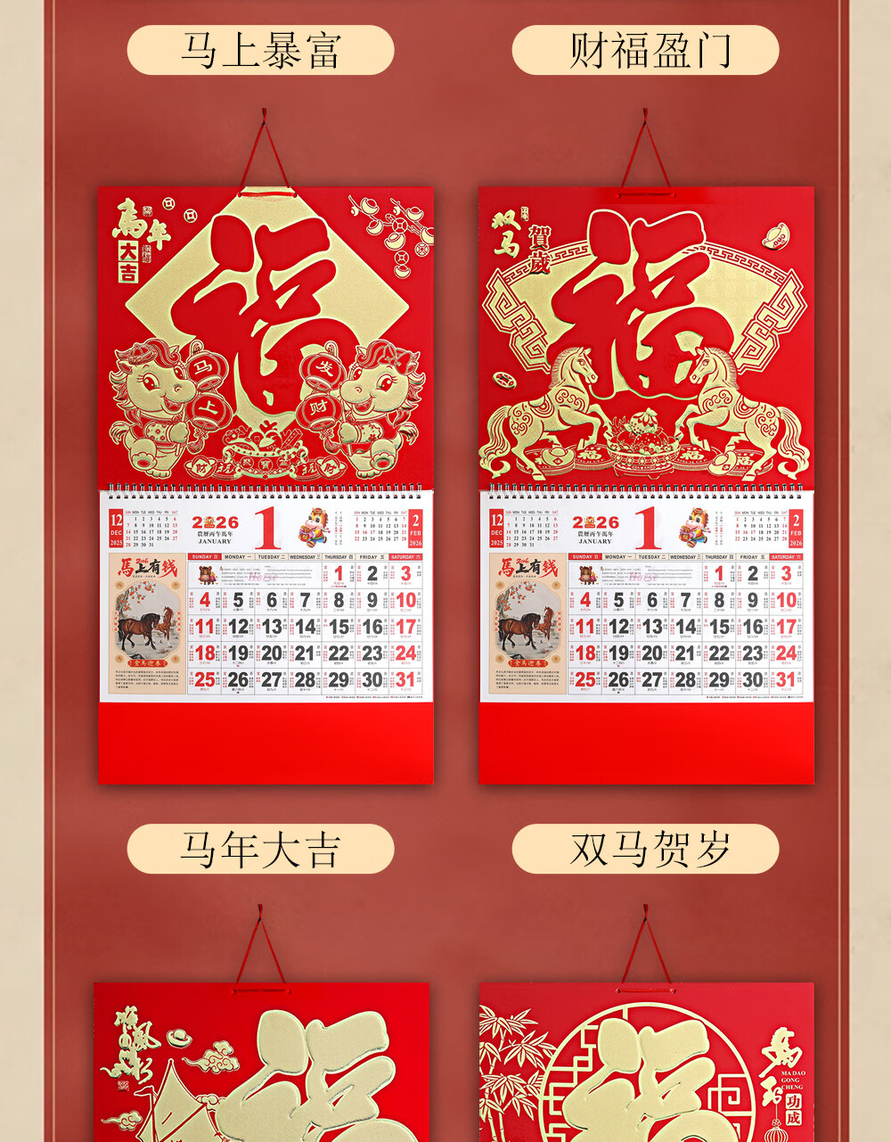 少年伴挂历 2026年马年新年礼物年货礼品家用挂墙式黄历正六开吊历手撕日历礼品 马到成功7805