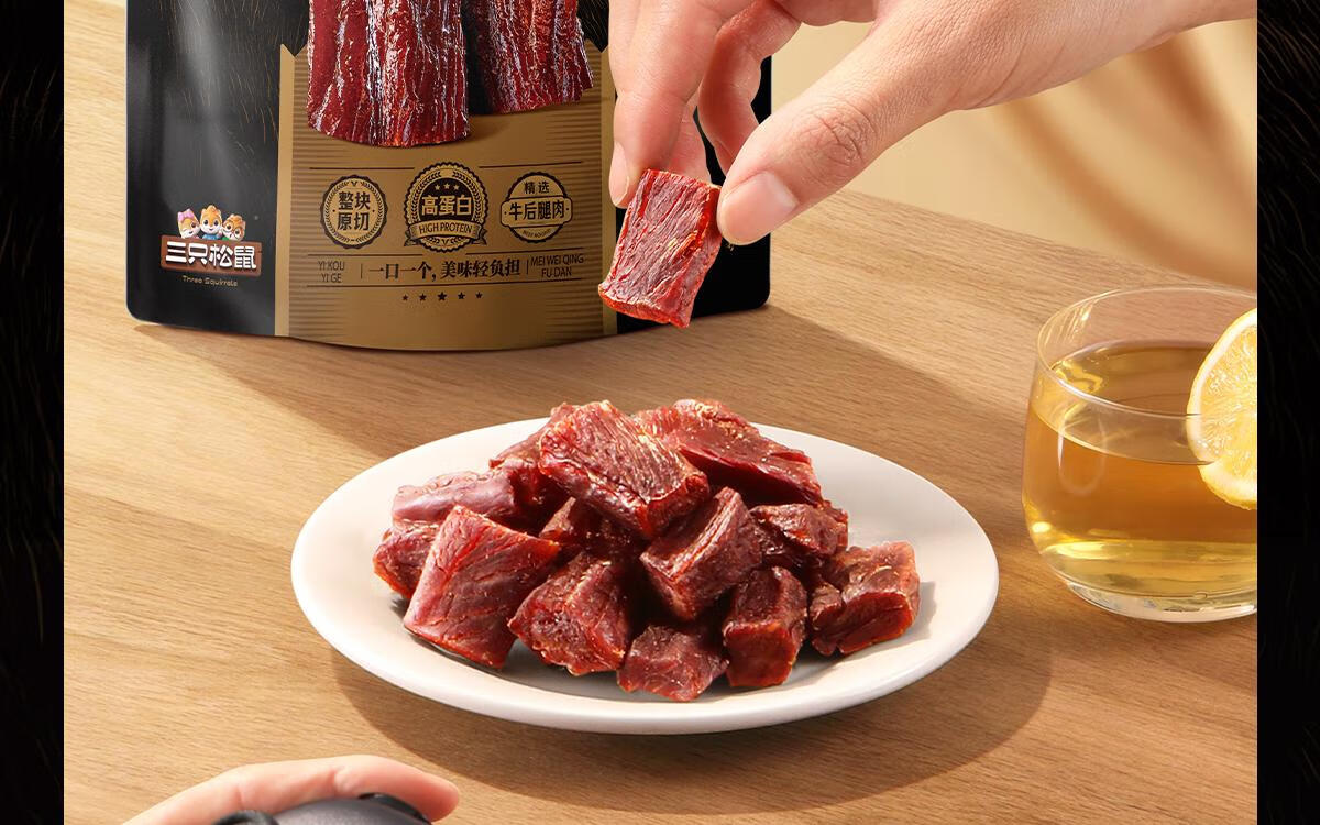 三只松鼠拇指风干牛肉原味150g袋装 牛肉干牛肉粒牛肉高蛋白解馋休闲零食