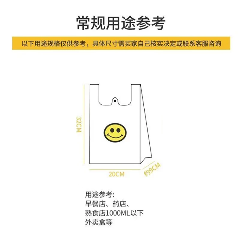 笑脸塑料袋笑脸袋一次性袋子手提购物袋透明外卖打包袋方便袋 20*32笑脸塑料袋【活动50只】