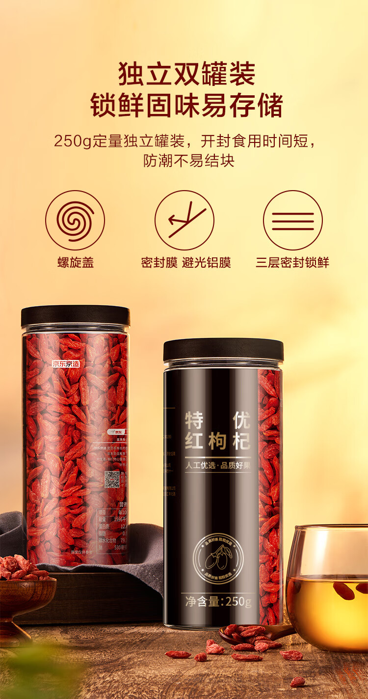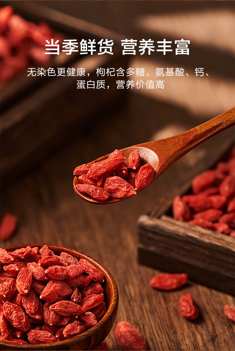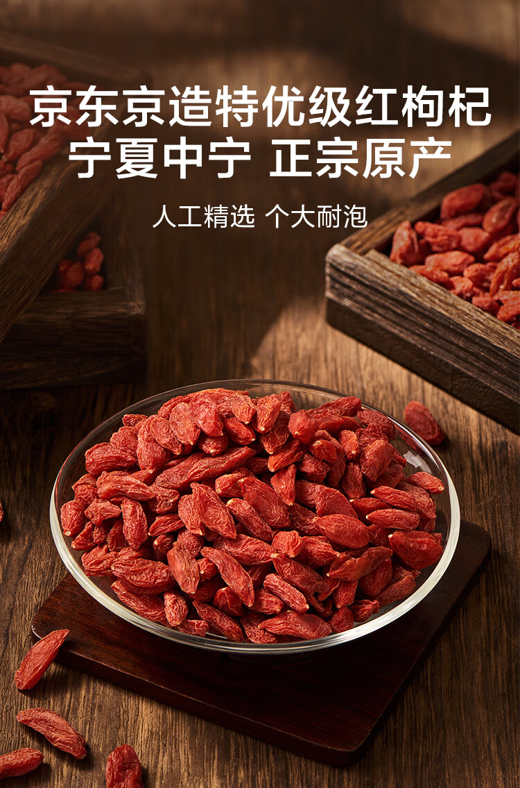 京东京造 特优级红枸杞子500g 新货宁夏中宁头茬免洗枸杞茶拒绝硫熏