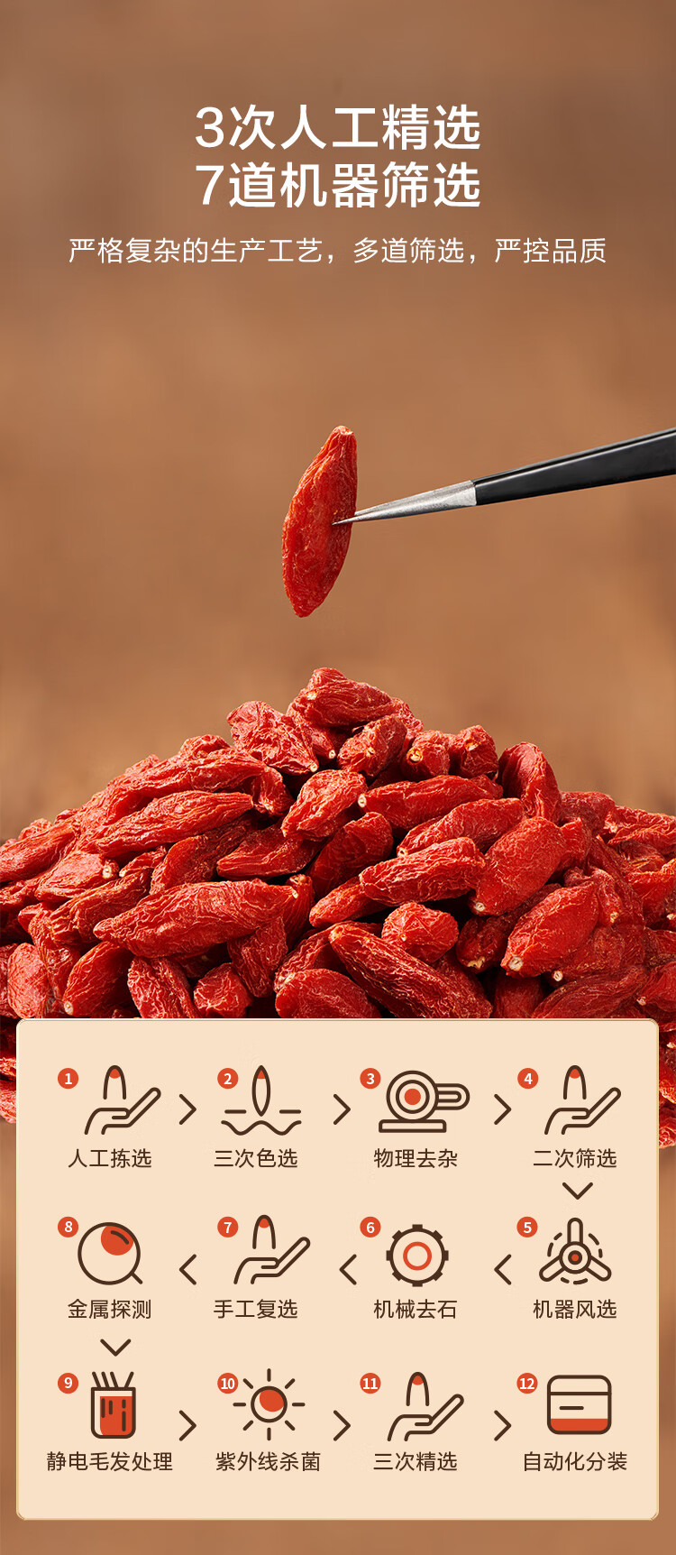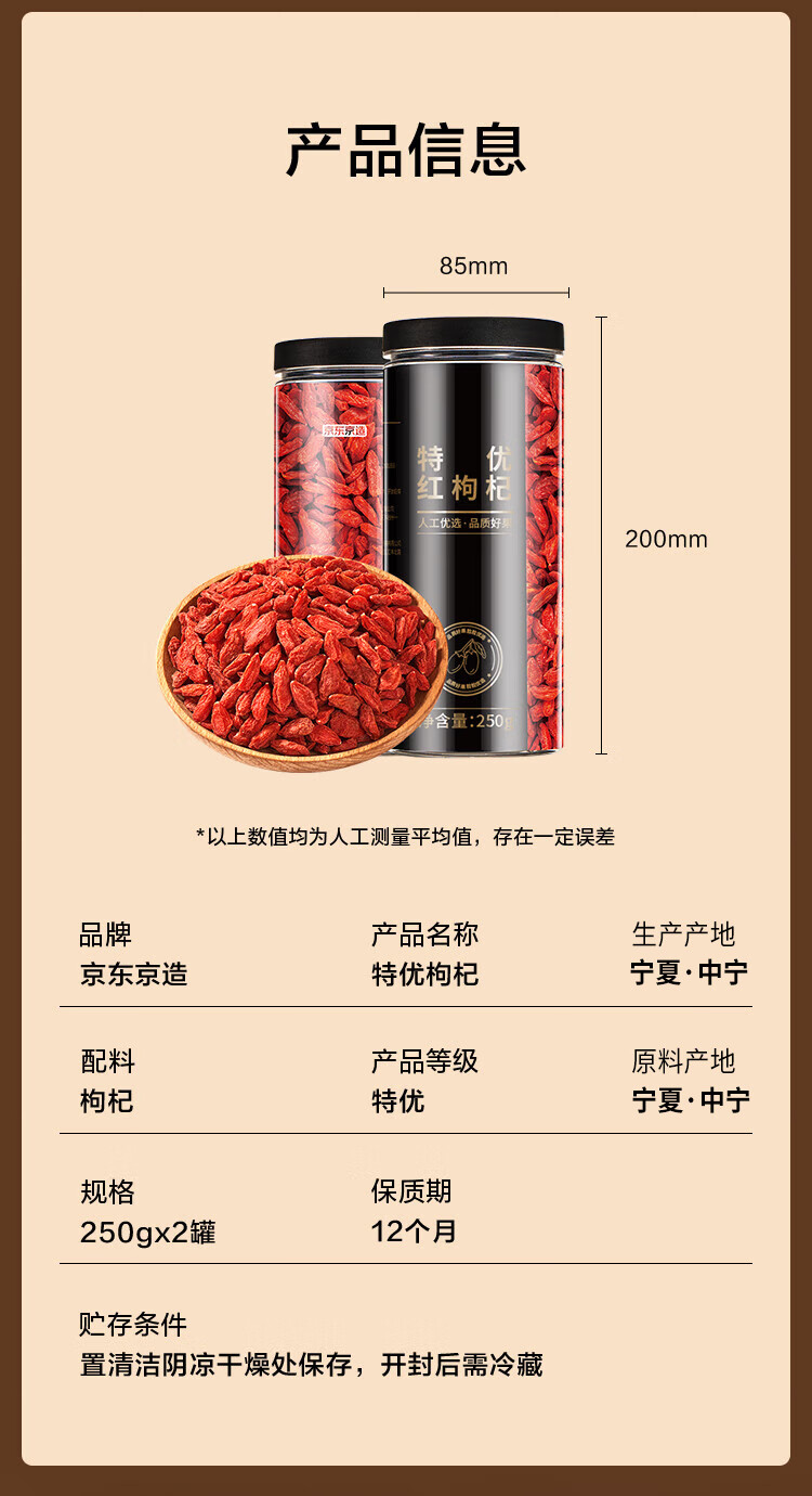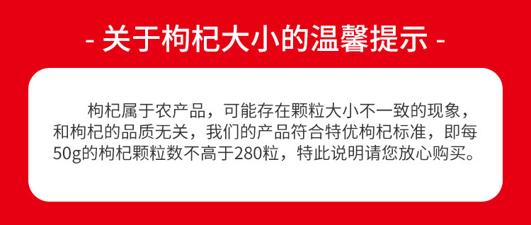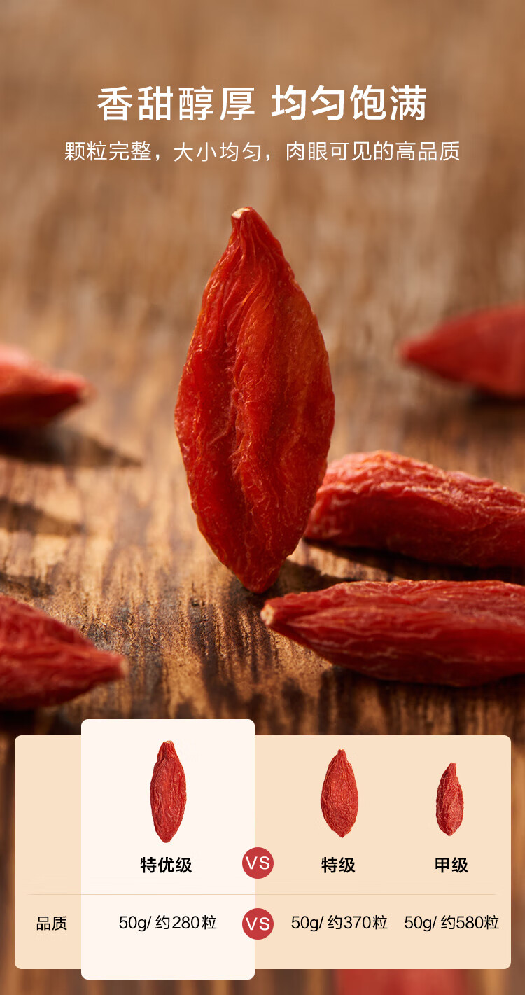 京东京造 特优级红枸杞子500g 新货宁夏中宁头茬免洗枸杞茶拒绝硫熏