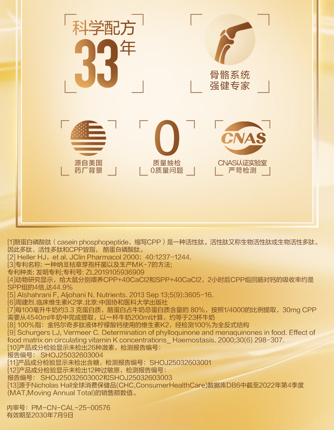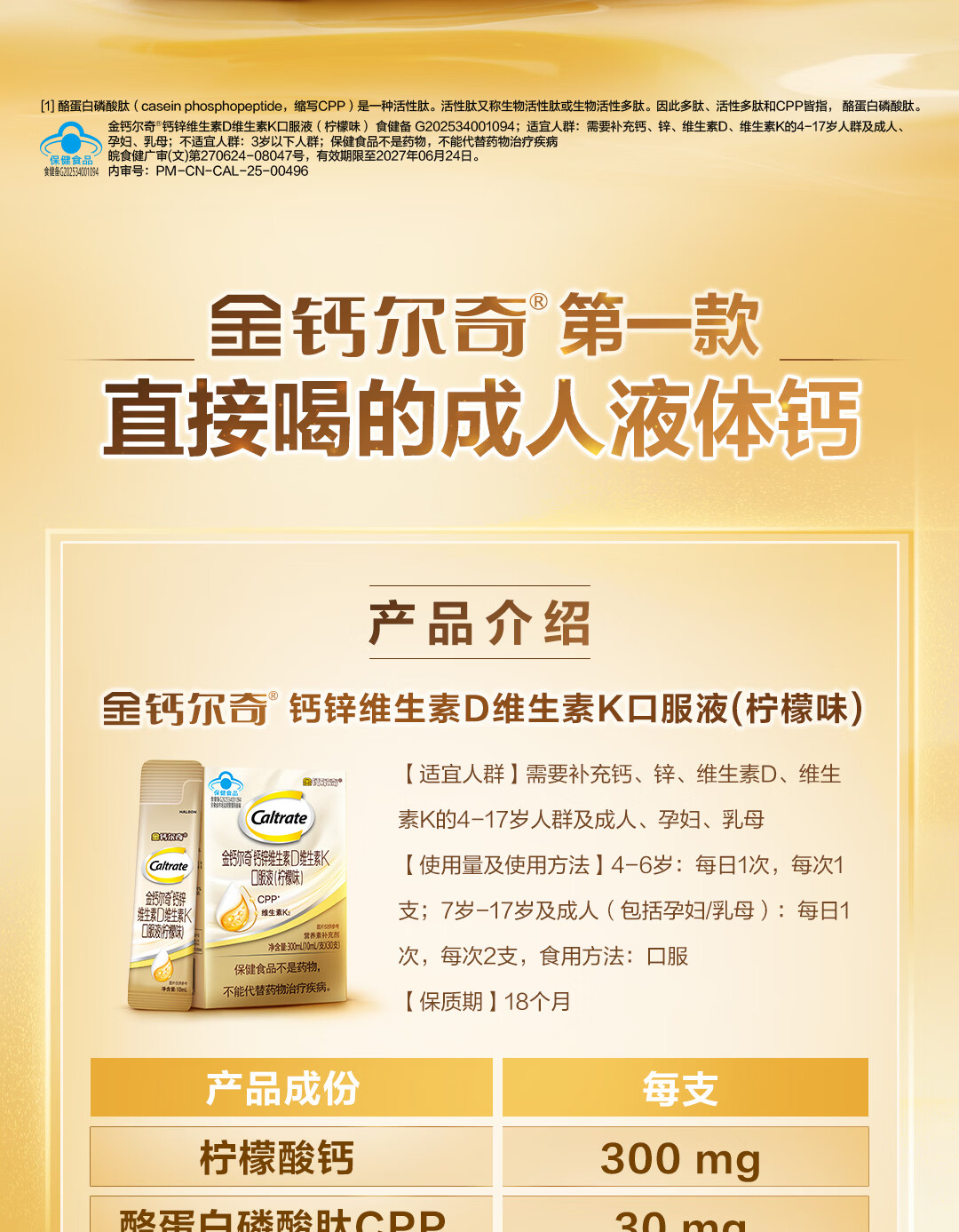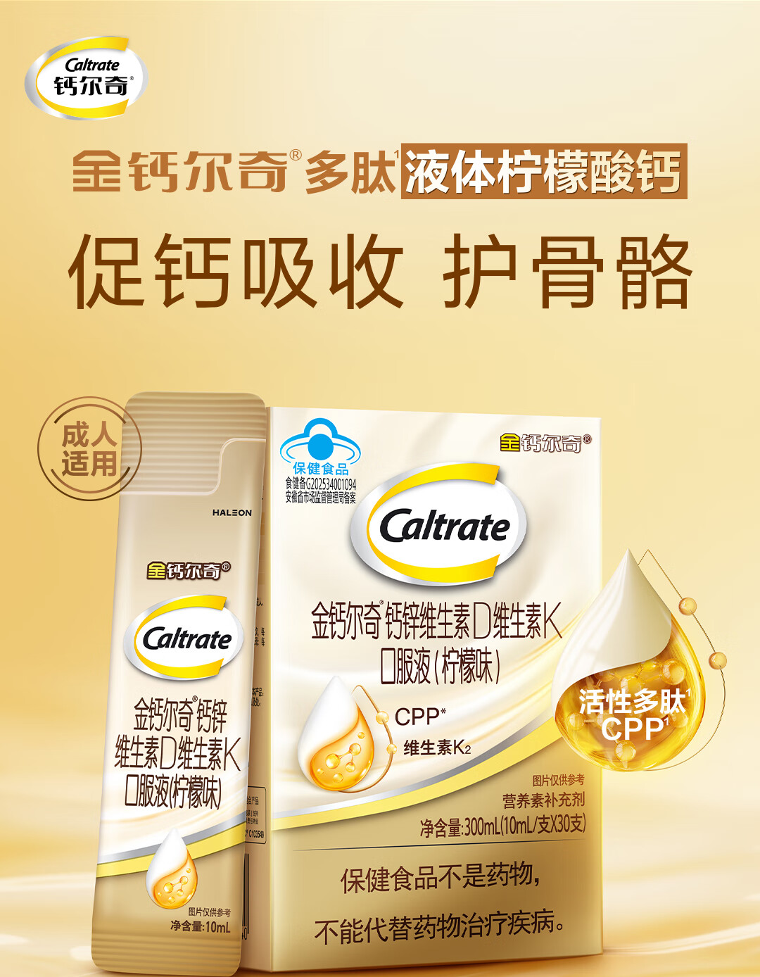 钙尔奇成人多肽液体钙90支 柠檬酸钙片中老年补钙维生素d3 金钙尔奇